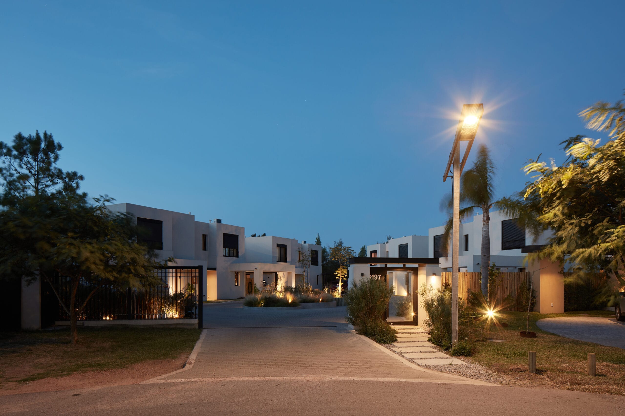 El proyecto se compone de ocho viviendas individuales, diseñadas de a pares, pero con suficiente separación entre ellas. El espacio central, un hermoso parque, es ideal para que los niños jueguen y disfruten en un ambiente seguro y tranquilo. Todas las unidades están diseñadas con tres dormitorios y tres baños, uno de ellos en suite.
