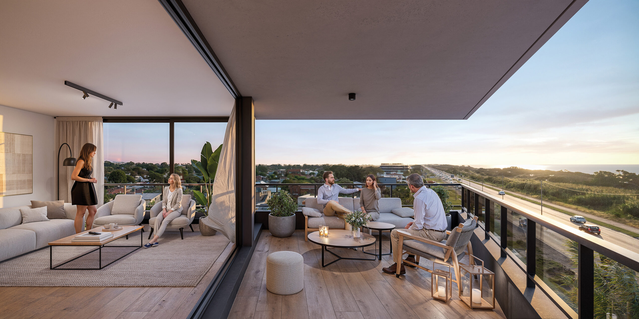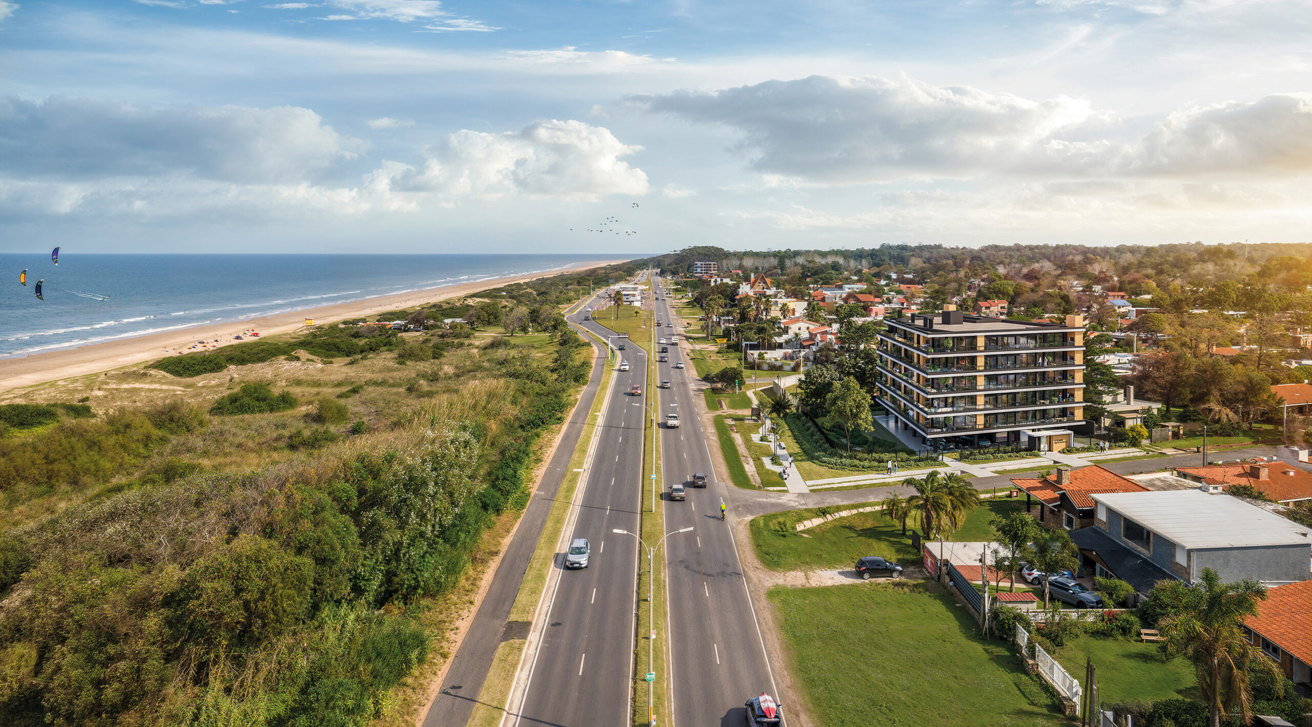 Ubicado en Rambla Costanera y De La Aurora, GROU ORILLAS respira al compás del mar. Su arquitectura se abre al paisaje sin ostentación, invitando a vivir la calma del Este sin renunciar a la proximidad de la ciudad. Los espacios amplios y funcionales se orientan hacia la luz, buscando capturar ese instante fugaz en que el cielo y el agua parecen confundirse.