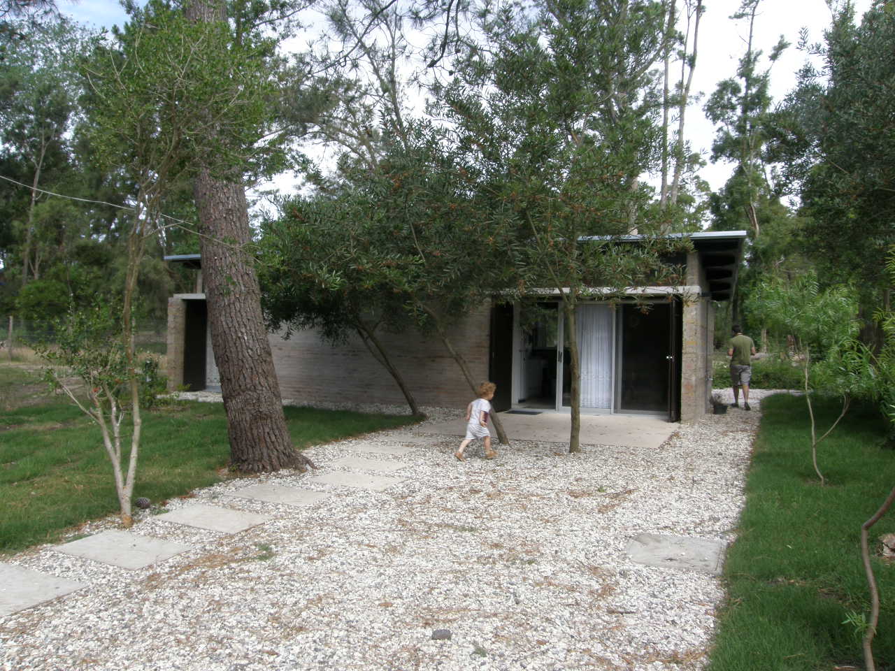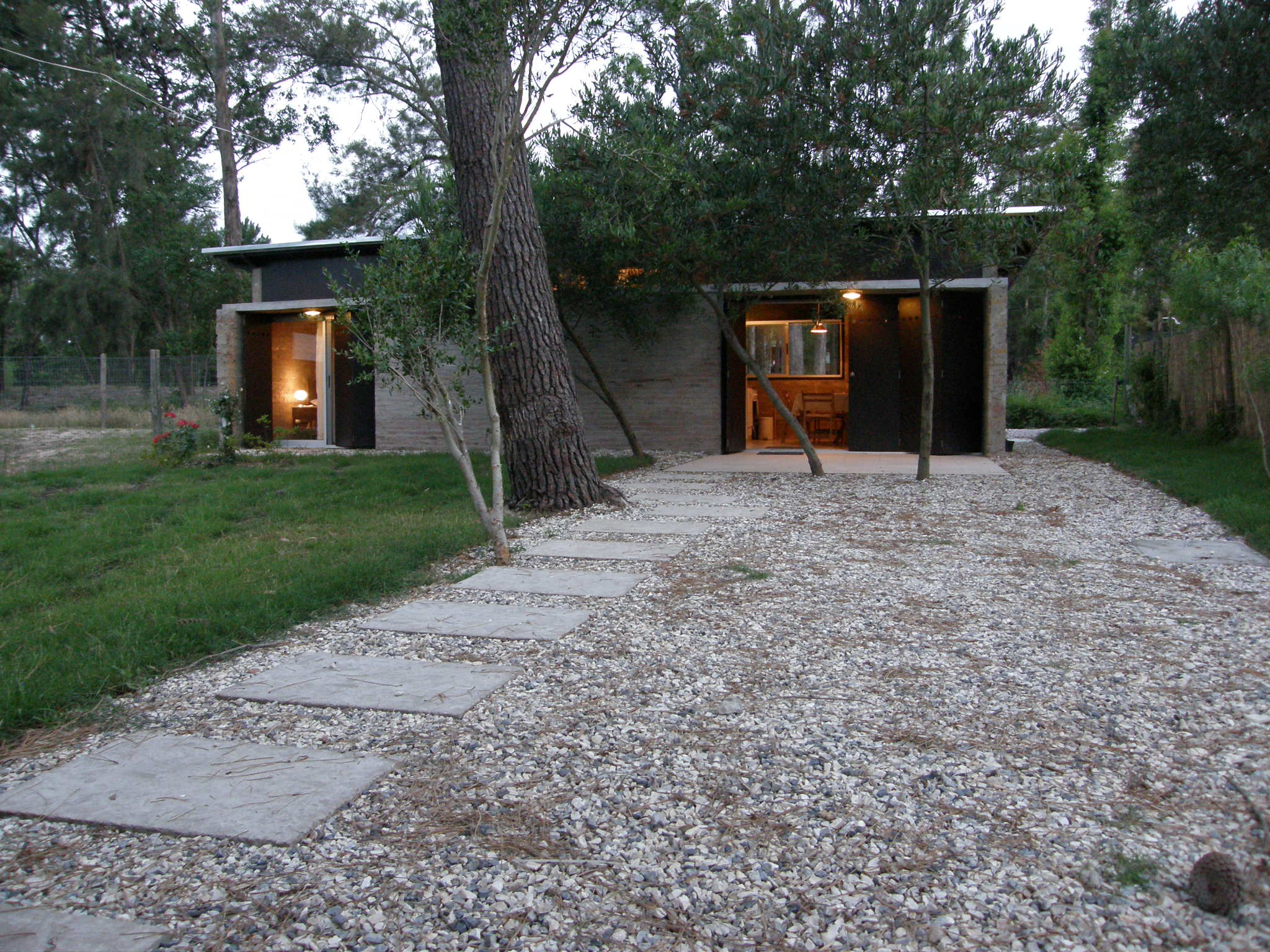 En este proyecto incidió como dato importante la conservación de los pinos existentes como dogma, en el entendido de que son la parte esencial del lugar. Su ubicación, sumada a la orientación del sol y algunas decisiones de vistas, daban pocas opciones de implantación. La decisión final de ubicar la construcción al fondo del terreno parte también de reconocer la cultura establecida de la tabula rasa en este tipo de obras. Desde allí se podía garantizar al menos una vista a escala del bosque.