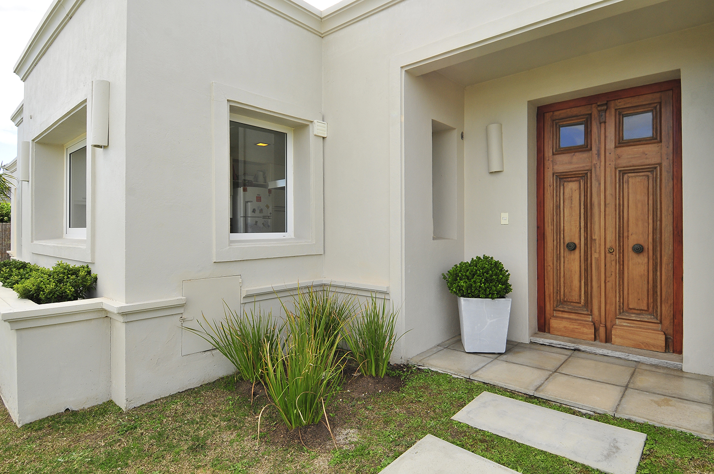 Esta vivienda unifamiliar ubicada en el barrio privado Carmel, pertenece al estilo más característico del estudio, de líneas simples con toques clásicos, de paredes revocadas exteriores con molduras. Desarrollada en un solo nivel, se implanta en un terreno grande, angosto de fachada y profundo, se proyecta en forma de “L”. En el sector de fachada se resuelven las áreas sociales que se vinculan al patio posterior a través de una amplia galería, recordando una antigua estancia, la cual permite un importante vínculo con el área del jardín mediante amplios ventanales. Los dormitorios se solucionan de manera más privada, en el volumen lateral, que avanza en el patio, con un pasillo interior con vistas hacia el mismo. Rematando el pasillo se encuentra el dormitorio principal en suite.