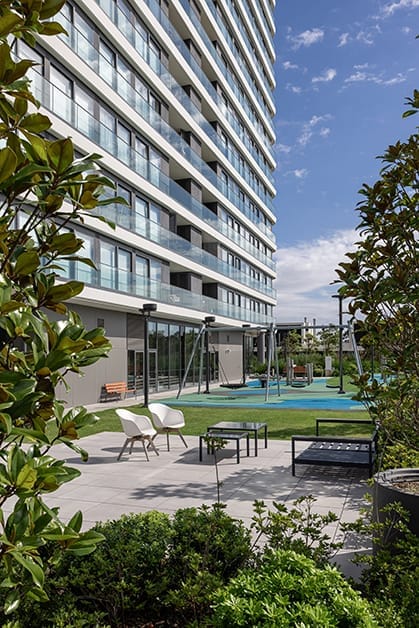 El proyecto, desarrollado por los Estudios Lecueder y Kimelman -dupla profesional más que probada- ha sido diseñado por los Estudios Kimelman Moraes y Gomez Platero, mientras que las obras de Urbanización estuvieron a cargo de CONCRETO y la construcción de la empresa NORTE.