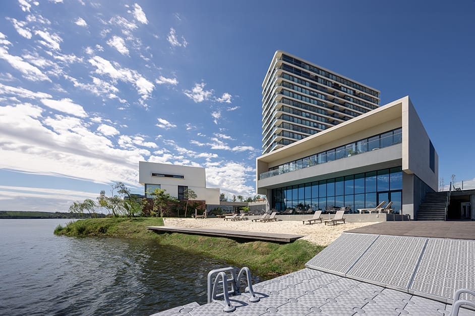 En el contexto de la nueva realidad que vivimos, el fenómeno de las nuevas urbanizaciones que prosperan en el cinturón este y noreste de Montevideo evolucionan a partir de la atención que sobre él enseñan nuevos sectores sociales que deciden alejarse de la ciudad. …En esa línea, el proyecto CARRASCO BOATING, desarrollo de los Estudios Luis E. Lecueder y Kimelman, con Proyecto de KIMELMAN.MORAES arquitectos y GÓMEZ PLATERO Arquitectura y Urbanismo, ubicado en los lagos de carrasco se apresta a estrenar su segunda etapa, que consolida la Tercera Generación de modelos urbanos, un barrio de torres. Se trata de un mega proyecto que fue generado a partir de la singular posibilidad de ocupar un conjunto de predios únicos, ubicados frente al Parque Roosvelt y sobre la única península que se interna en un espectacular lago de ochenta hectáreas de superficie, a metros de la Avenida de Las Américas, pero lejos de su barullo, escenario natural de increíble valor paisajístico donde las novedades se suceden: a la magia que la naturaleza ofrece en el lugar se suma una ubicación geográfica increíble.