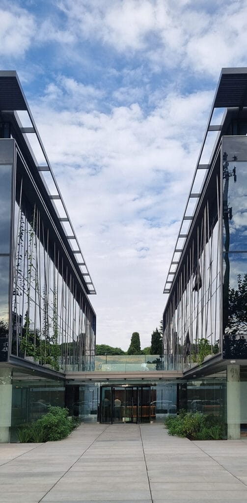 Carrasco Valley es un polo corporativo ubicado en Montevideo, Uruguay, en el barrio residencial de Carrasco. El proyecto comprende la remodelación de un edificio patrimonial, dos nuevos edificios de oficinas, locales comerciales y el diseño de espacios exteriores. El conjunto contará con la prestigiosa certificación LEED Gold, que garantiza la sostenibilidad del proyecto en términos de materiales utilizados, recursos constructivos, eficiencia energética, gestión del agua, calidad ambiental, innovación en el diseño y otras medidas para cuidar el medio ambiente. Se han seleccionado materiales de primera calidad y equipos de construcción que cumplen con los estándares más altos en términos de su naturaleza y procedencia. Las torres 1 y 2, con una superficie de 6,600 m² cada una, están alineadas con la casona existente. Estas torres constan de un acceso unificado, planta baja destinada a un paseo comercial y servicios, y tres niveles superiores para oficinas. Ambos edificios se construyeron con una estructura de hormigón armado con losas sin vigas y fachadas revestidas con muro cortina de cristal que incluyen protección solar. En la parte superior del tercer nivel se añadieron pérgolas y aleros metálicos para darle un acabado especial. El subsuelo funciona como una conexión entre los tres edificios del proyecto. En este nivel se ubica el estacionamiento, las áreas técnicas y los accesos a los núcleos de circulación vertical de cada construcción. La primera fase del desarrollo se enfocará en la construcción de los nuevos edificios, los subsuelos y los espacios exteriores. La segunda fase, la restauración y la adaptación de la casona histórica, que cuenta con protección patrimonial. El área de intervención también incluye una sección de ensanchamiento de la Avenida Rivera, donde se tiene prevista la creación de una plaza pública.