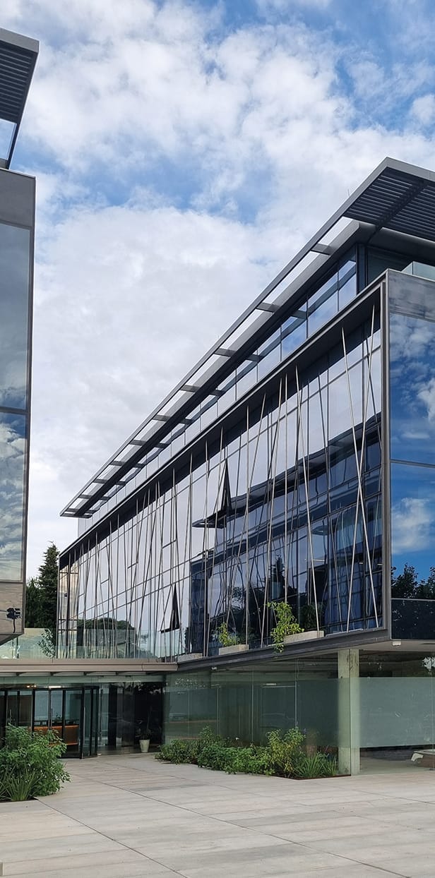 Carrasco Valley es un polo corporativo ubicado en Montevideo, Uruguay, en el barrio residencial de Carrasco. El proyecto comprende la remodelación de un edificio patrimonial, dos nuevos edificios de oficinas, locales comerciales y el diseño de espacios exteriores. El conjunto contará con la prestigiosa certificación LEED Gold, que garantiza la sostenibilidad del proyecto en términos de materiales utilizados, recursos constructivos, eficiencia energética, gestión del agua, calidad ambiental, innovación en el diseño y otras medidas para cuidar el medio ambiente. Se han seleccionado materiales de primera calidad y equipos de construcción que cumplen con los estándares más altos en términos de su naturaleza y procedencia. Las torres 1 y 2, con una superficie de 6,600 m² cada una, están alineadas con la casona existente. Estas torres constan de un acceso unificado, planta baja destinada a un paseo comercial y servicios, y tres niveles superiores para oficinas. Ambos edificios se construyeron con una estructura de hormigón armado con losas sin vigas y fachadas revestidas con muro cortina de cristal que incluyen protección solar. En la parte superior del tercer nivel se añadieron pérgolas y aleros metálicos para darle un acabado especial. El subsuelo funciona como una conexión entre los tres edificios del proyecto. En este nivel se ubica el estacionamiento, las áreas técnicas y los accesos a los núcleos de circulación vertical de cada construcción. La primera fase del desarrollo se enfocará en la construcción de los nuevos edificios, los subsuelos y los espacios exteriores. La segunda fase, la restauración y la adaptación de la casona histórica, que cuenta con protección patrimonial. El área de intervención también incluye una sección de ensanchamiento de la Avenida Rivera, donde se tiene prevista la creación de una plaza pública.