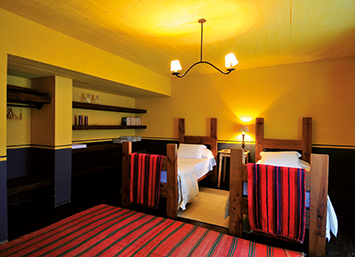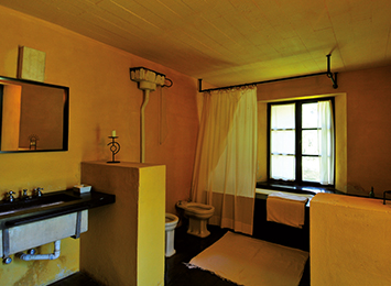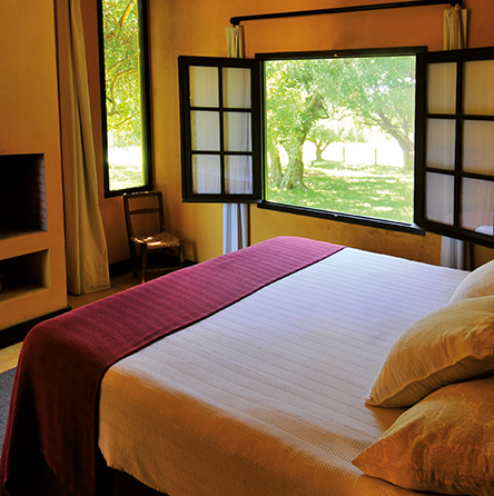 Una gran mesa de madera con capacidad para varios comensales, el juego que también incluye un gran trinchante y propone una visión distinta, poco habitual en estos tiempos, donde las viejas formas no se valoran como es debido. Luego se dispone la cocina abierta en una isla central en forma de cubo, con una gran campana que concentra casi todo lo necesario y se apoya con mesadas en las paredes laterales y de fondo, que le sirven de contención. En el ala opuesta de la casa se establecen los dormitorios. Subiendo por una escalera de madera encontramos un estudio, que sirve de antesala a lo que es el dormitorio principal con cama matrimonial, el vestidor abierto y baño en suite. Un detalle no menor, todas las habitaciones de la casa cuentan con estufa a leña. Si descendemos un nivel, llegamos a dos habitaciones casi simétricas con baño en suite y dos camas individuales cada una. En el exterior, la casa se complementa con una edificación contigua destinada a los huéspedes. Es más pequeña, a esta se agrega otra, donde viven sus caseros, que se encargan de mantenerla durante todo el año, y finalmente una plataforma con tres paredes vidriadas que contiene a la piscina, de 2,50 metros de ancho por 20 de largo, y es acompañada por reposeras de madera. Desde allí se percibe todo el entorno sereno, en un marco perfecto. El conjunto recrea, de alguna forma, el viejo espíritu de los originales cascos de estancia. Con sus edificios y la disposición de ellos se recrea una situación descentralizada, que funciona aportando espacios para la intimidad, la contemplación y también para la integración.