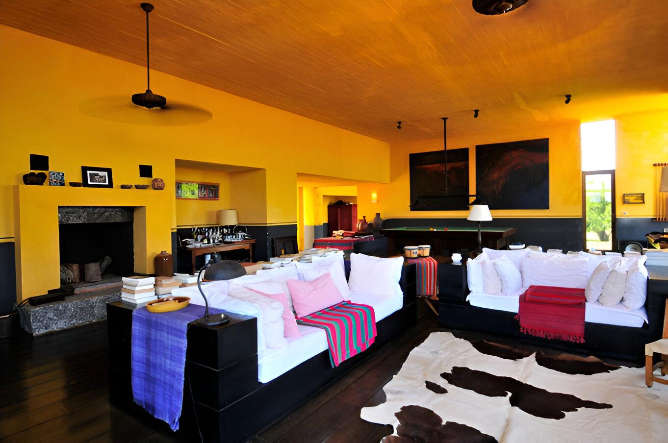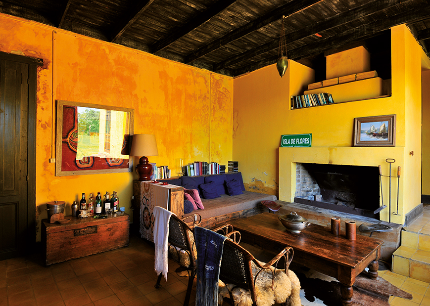 Camino a José Ignacio, nos desviamos por un camino de piedras que fueron respetadas en su natural orden, al final, en lo alto, emerge una gran casa amarilla, obra que el arquitecto Javier Gentile define como uno de sus trabajos más importantes. Es la casa que proyectó junto a sus habitantes, Claudia Boatti, ex directora de D&D, y Alfredo Berchelli, director de Editorial Atlántida. La interacción entre los tres fue natural y constante, tanto como para que cada muro cuente una historia y defina a sus propietarios. El lugar es místico. La paz y la armonía se sienten de una manera especial. Una brisa tranquila nos advierte que estamos en un lugar singular, quizá esta sea una de las razones por la que sus habitantes lo eligen para descansar. La casa es de líneas rectas y está situada en un lugar alto del terreno, con el fin de capturar las mejores vistas. El edificio no disimula la pátina que los años le han aportado y esta circunstancia, lejos de ser un defecto, enriquece una obra que entonces imaginamos fue concebida para envejecer noblemente. Este concepto particular es producto de la idea de que la eternidad es un ejercicio que la naturaleza practica día a día, lentamente, muchas veces sin que los humanos lo percibamos. El aporte de Claudia Boatti y Alfredo Berchelli, los habitantes del lugar, resultó decisivo para que este concepto prosperara, fuera posible.