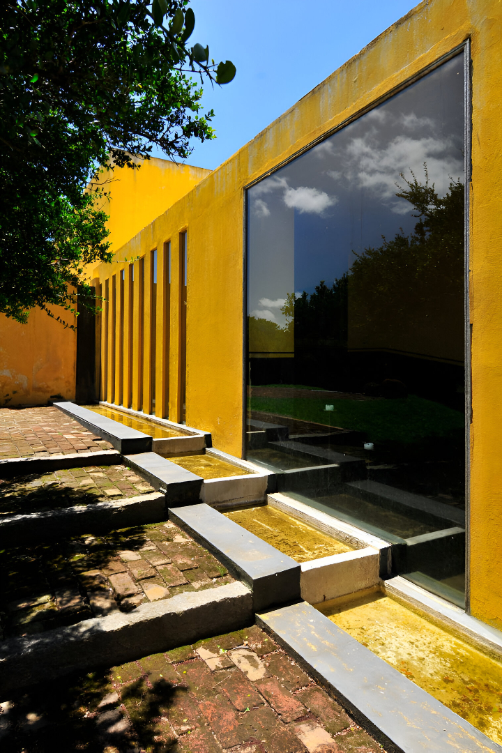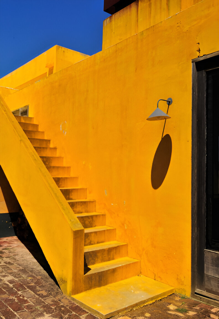 ocupa la Casa Amarilla de Javier Gentile, recrean versiones muy fieles del paraíso en la tierra. La ubicación del predio donde se levanta la Casa Amarilla tiene una vista privilegiada hacia el mar y particularmente hacia el faro. Los faros son símbolos que ubican, señalan, iluminan y, de alguna manera, orientan. Una de las inquietudes de Claudia y Alfredo al elegir este lugar fue, sin dudas, la posibilidad de acceder visualmente al faro. El trabajo del arquitecto Javier Gentile integró plenamente a los propietarios. Estos participaron de cada instancia del proyecto y ambos, profesional y habitantes, se tomaron el tiempo necesario para estudiar con cuidado tanto la implantación de la casa como su concepción arquitectónica y luego su equipamiento. En este último tema, Claudia Boatti, directora por aquel entonces de la prestigiosa publicación D&D desplegó su buen gusto y  sus ideas particulares a propósito del espacio y la forma en que se lo debe vivir. El espacio atrapado por el arquitecto Gentile tiene poesía. Es mágico. Genera atmósferas que traen tensión, drama, sorpresa y encantamiento. Y nada es casualidad, la vida misma de los habitantes es así, en consecuencia, la envolvente espacial desplegada por el arquitecto Gentile logró reflejarlo, contenerlo. Trasmitirlo. El ingreso a la casa se demora, que tampoco hay apuro, luego los desniveles imponen sorpresa ante cada ambiente al que se arriba. Los corredores de circulación son calles y, en algunos casos, avenidas que desembocan en grandes halles que son en realidad plazoletas. Cada muro exhibe con orgullo la pátina del tiempo que va transformando colores y aportando carácter, enseña vida vivida y tiempo transcurrido. Y esa era la idea original, concebir una casa que envejeciera noblemente y con orgullo. Los ambientes vinculados entre sí a partir de una estética particular que da cuenta tanto de la firma del arquitecto Gentile como, fundamentalmente, del gusto de Claudia y Alfredo, son el resultado de diez años de trabajo. Sí, aun cuando parezca difícil de creer, esta obra demando tiempo y mucha dedicación. Gentile nos cuenta que la casa es el resultado de una intensa interacción con los habitantes. Claudia y Alfredo aportaban en cada detalle del proyecto y desde el comienzo participaron de todo el proceso de concepción y construcción de su casa de veraneo. El arquitecto, al narrarnos el proceso, define a esta obra como un ejercicio de arquitectura vivida, que fue evolucionando a medida que el proceso de construcción se llevaba a cabo. A partir de la idea original, la obra y el tiempo que se le dedicó hizo posible que tanto Claudia como Alfredo propusieran modificaciones sobre la marcha.