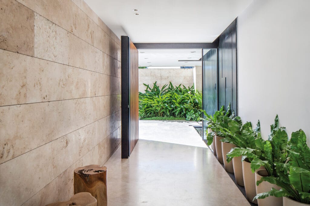 Al ingresar a la casa lo primero que notamos son sus amplias dimensiones, que se acentúan en los materiales inteligentemente elegidos. Los amplios espacios buscan la luz que se genera a partir de la contra fachada. El paseo por los interiores está marcado por el misterio y la sorpresa que generan sus recorridos. A medida que nos adentramos, la casa comienza a abrirse como una flor y la luz es uno de los ejes en los que gira la vivienda. Estos son algunos de los conceptos que definen la idea que Remy tiene a propósito del hecho arquitectónico.