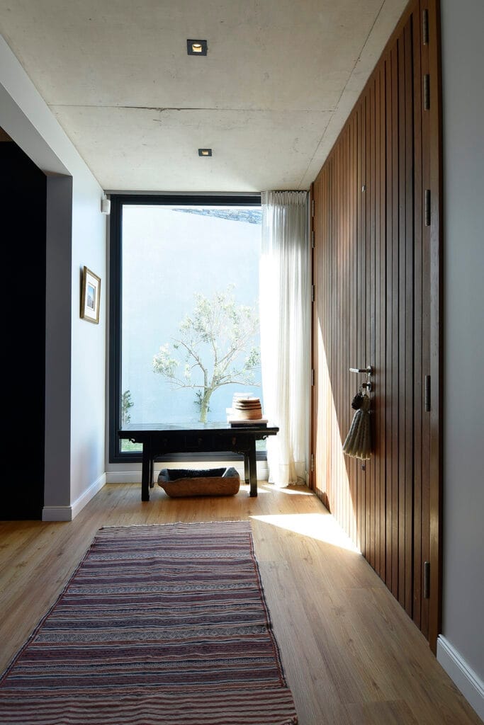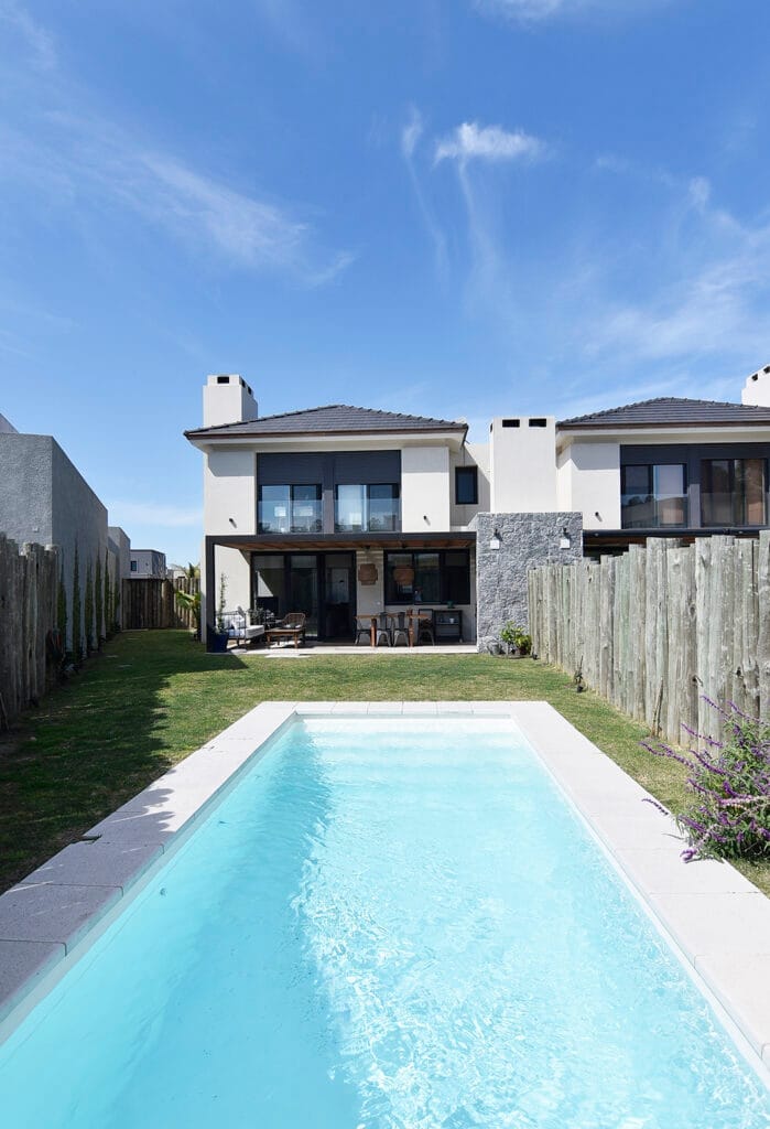 Al momento de resolver la implantación se trabajó a nivel de proyecto con la premisa de asegurar la intimidad y privacidad de cada unidad, para lo cual se estudió con mucho cuidado la conexión estructural. Cada una de las casas tiene su ingreso independiente en lados opuestos de la estructura central compartida, garantizando una convivencia pacífica y privada para los habitantes. El elemento arquitectónico clave que define la estética de este proyecto es el adosamiento del tejado, que remite a las construcciones tradicionales y, al mismo tiempo, instala un toque de modernidad y vanguardia en la disposición de la estructura.