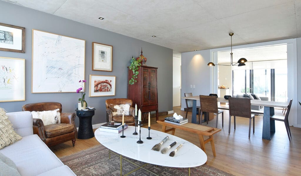 Las casas se despliegan en dos plantas perfectamente definidas y organizadas, lo que otorga un ambiente contemporáneo y eficiente. El uso de colores neutros, como el gris humo en las paredes interiores, establece un versátil que permite a los habitantes personalizar su espacio de acuerdo a sus gustos. Las texturas nobles se hacen presentes en todo el diseño, con suelos de madera que aportan calidez y elegancia a cada rincón de la casa.