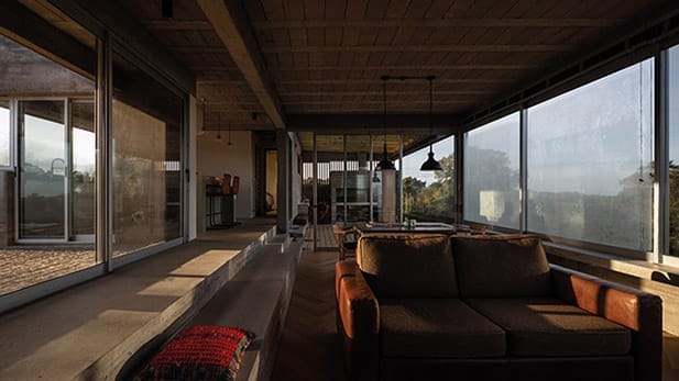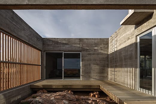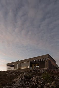 En el corazón de las sierras, donde se extienden los horizontes rurales y las pendientes topográficas dominan el paisaje, se encuentra Edén, un proyecto. Esta casa busca integrarse armoniosamente con su entorno natural. La casa se levanta sobre una formación rocosa, fusionándose con el terreno como si fuera un elemento más del paisaje mineral que lo rodea. El diseño se basa en tres principios fundamentales: la creación de una arquitectura sólida, en forma de podio mineral, que se adapta a la compleja topografía del lugar; la incorporación de espacios semi-exteriores que actúan como refugios, ofreciendo al usuario la oportunidad de conectarse con el entorno y enfrentar las variaciones climáticas; y la construcción de un objeto que se integre de manera orgánica con las formaciones rocosas existentes, utilizando el hormigón visto como una textura artificial que dialoga con la naturaleza circundante.