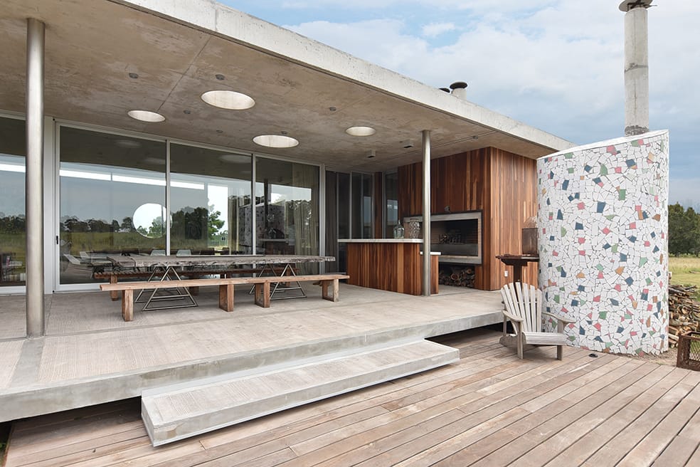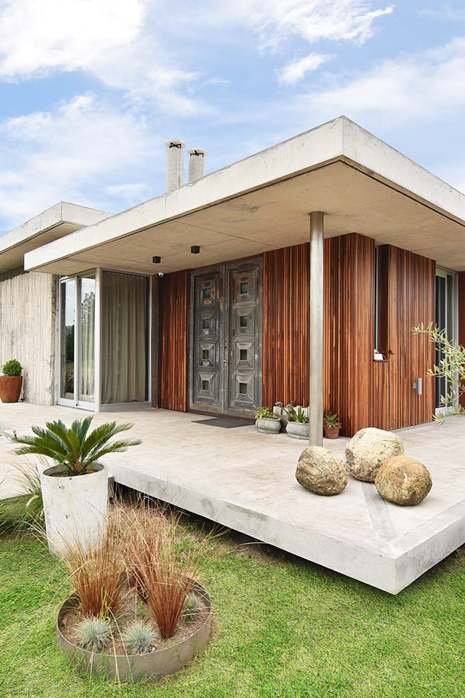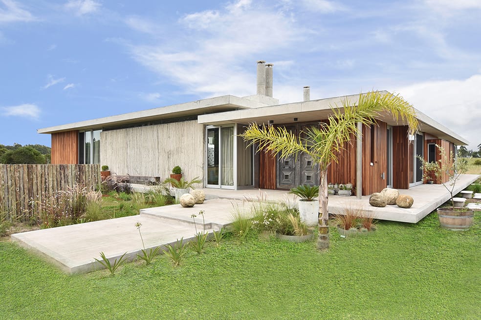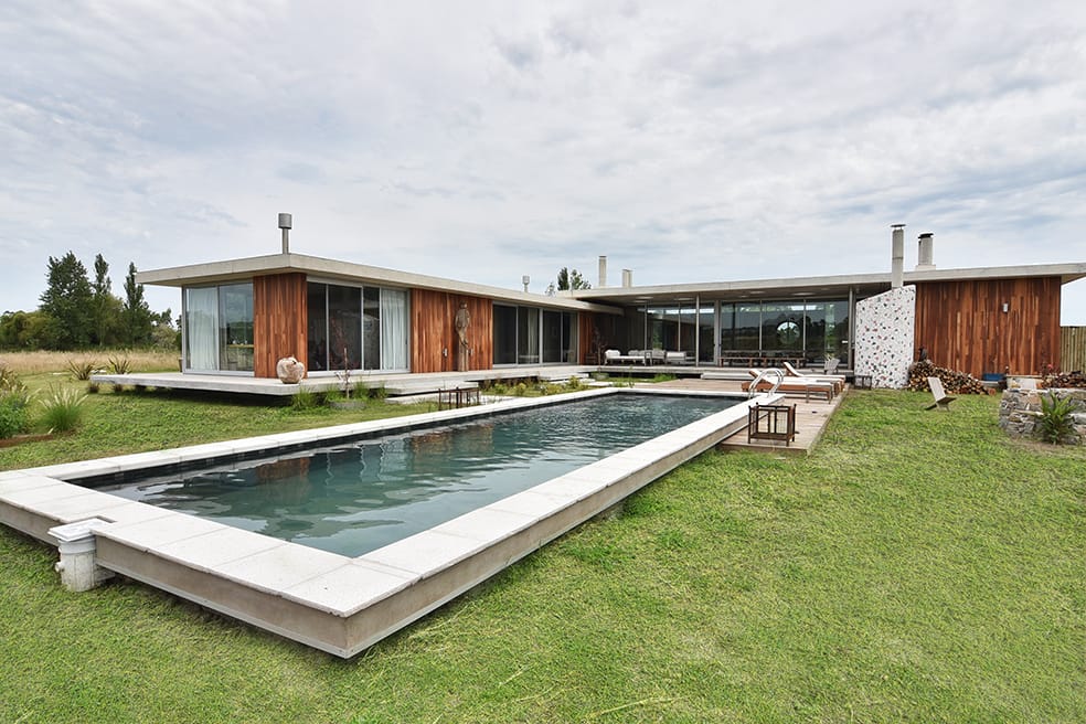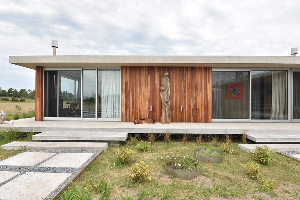La casa proyectada por el Arquitecto Javier Gentile ocupa una fracción de campo en la zona rural de La Barra de Maldonado. Desarrollada en una planta y en ángulo recto, forma una ele, distribuye los aproximadamente 400 metros cuadrados que atrapa generando ámbitos diferenciados que operan notablemente, un ala para el sector social y otra para el área íntima. Se trata de un ejercicio donde la modernidad enseña sorprendente vitalidad y donde el juego de los detalles, constante en la obra de Gentile, propone sorpresas metro a metro.