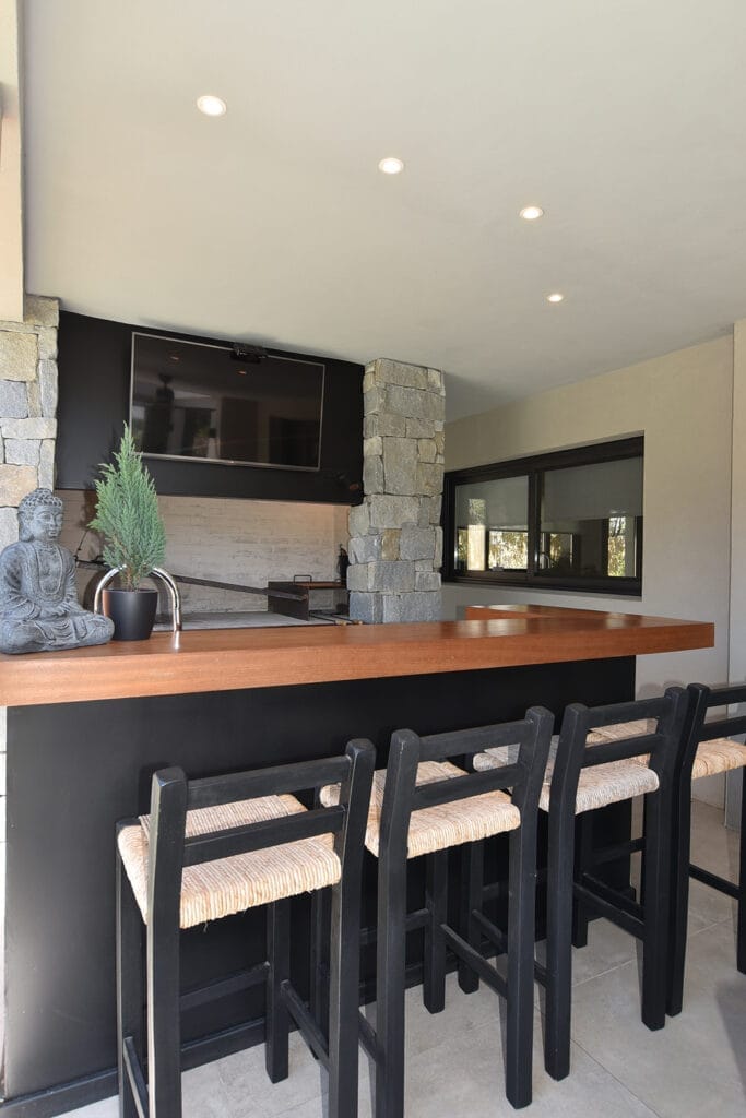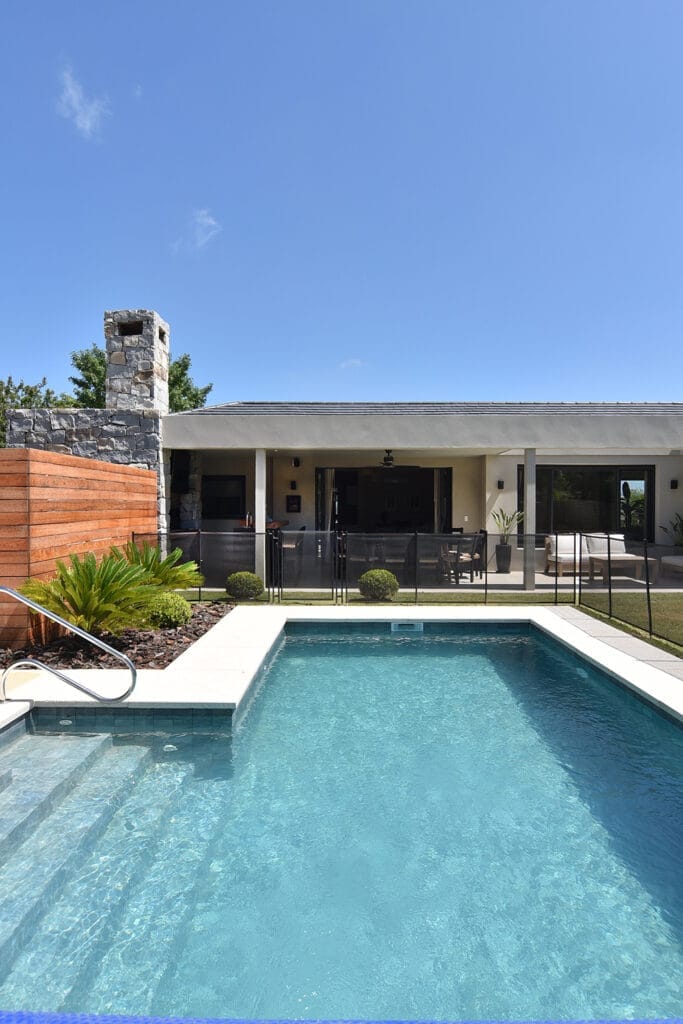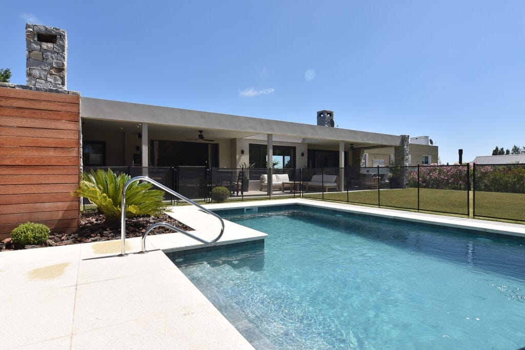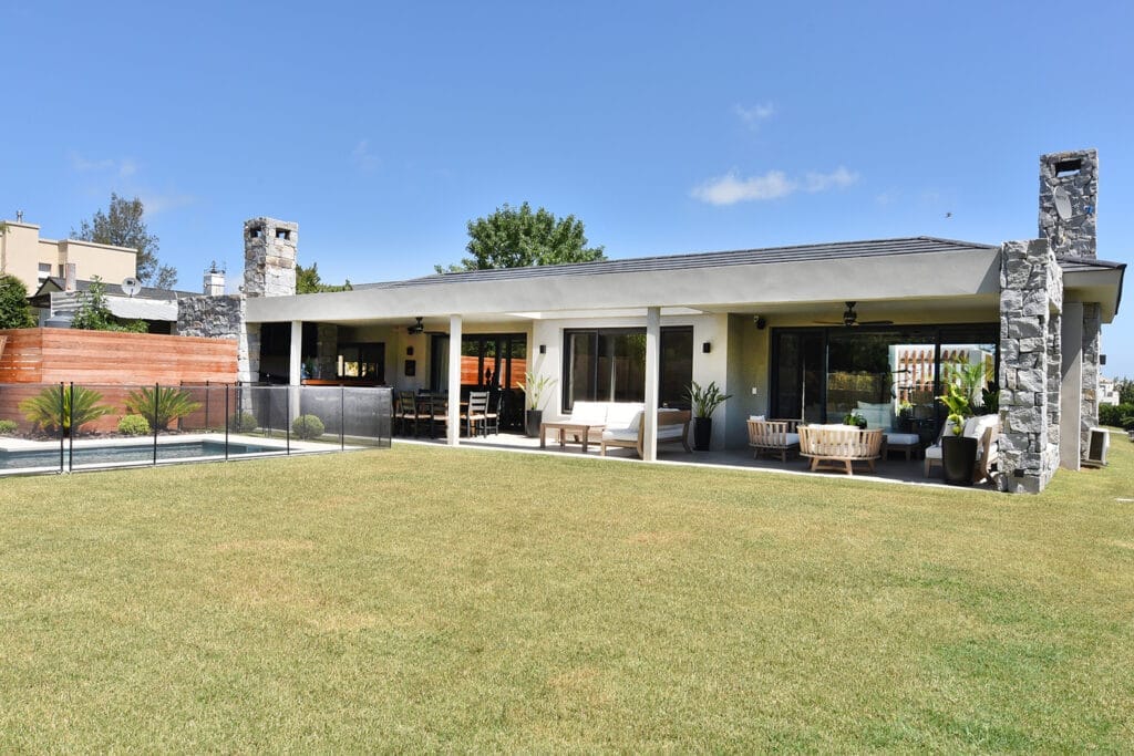 La casa, ubicada en Barrio Lomas de Carrasco, fue proyectada con la premisa de obtener el mejor partido del terreno que ocupa. Se presenta en su fachada de forma muy sobria y reservada, y la planta lleva su desenlace hacia el fondo del terreno aprovechando así la espacialidad y la conexión con el exterior mediante espacios que se integran de forma circunspecta. La casa se estructura en dos volúmenes continuos, el primero en forma cabal contenido en un techo a cuatro aguas en tonalidades neutras, estructura de hormigón con grandes aberturas casi simétricas en el ejercicio distributivo de la fachada que se sostienen por medio de planos que sobresalen del dibujo. Aquí se encuentran los ambientes privados de la residencia. Por detrás de este volumen intercede otro de forma rectangular que atraviesa el terreno y define la planta única de la casa con la particularidad que en la confluencia de los volúmenes se generan interesantes espacios que integran al exterior. El acceso principal de la casa se genera por medio una pérgola que antecede el ingreso a los espacios de uso común y social generando una interesante distribución donde prima la privacidad para los habitantes. Una gran piscina se aprovecha del jardín posterior con un gran solárium.