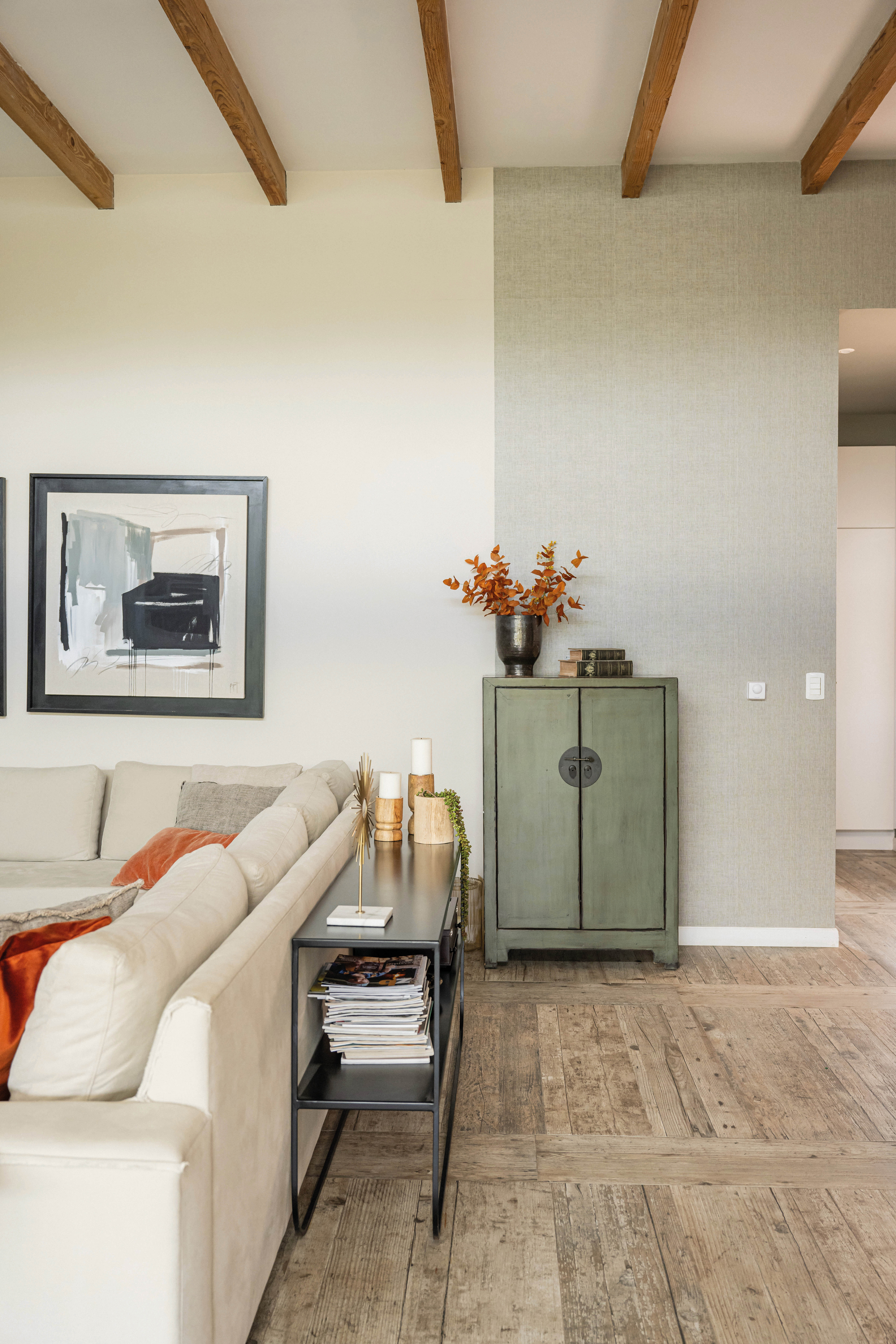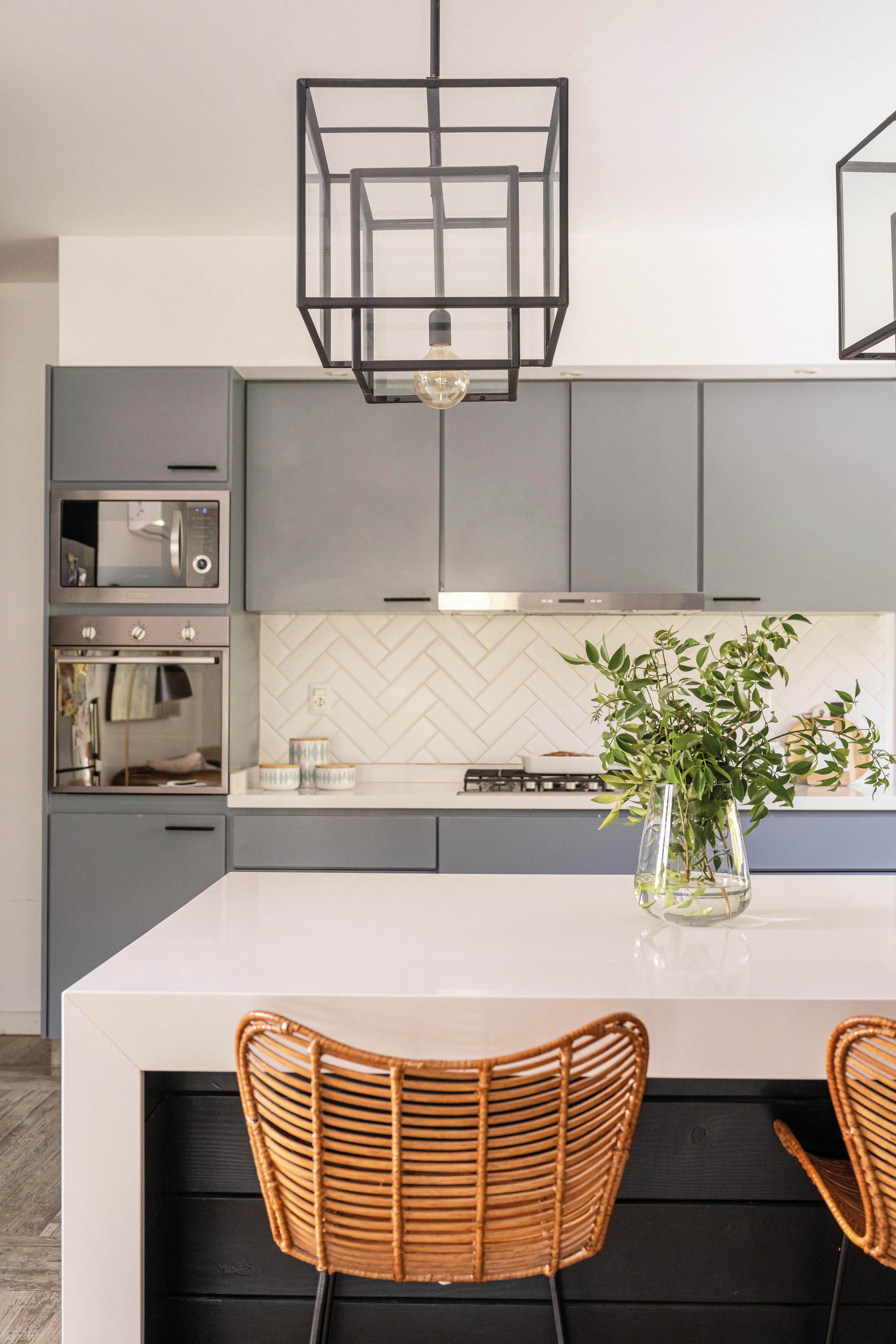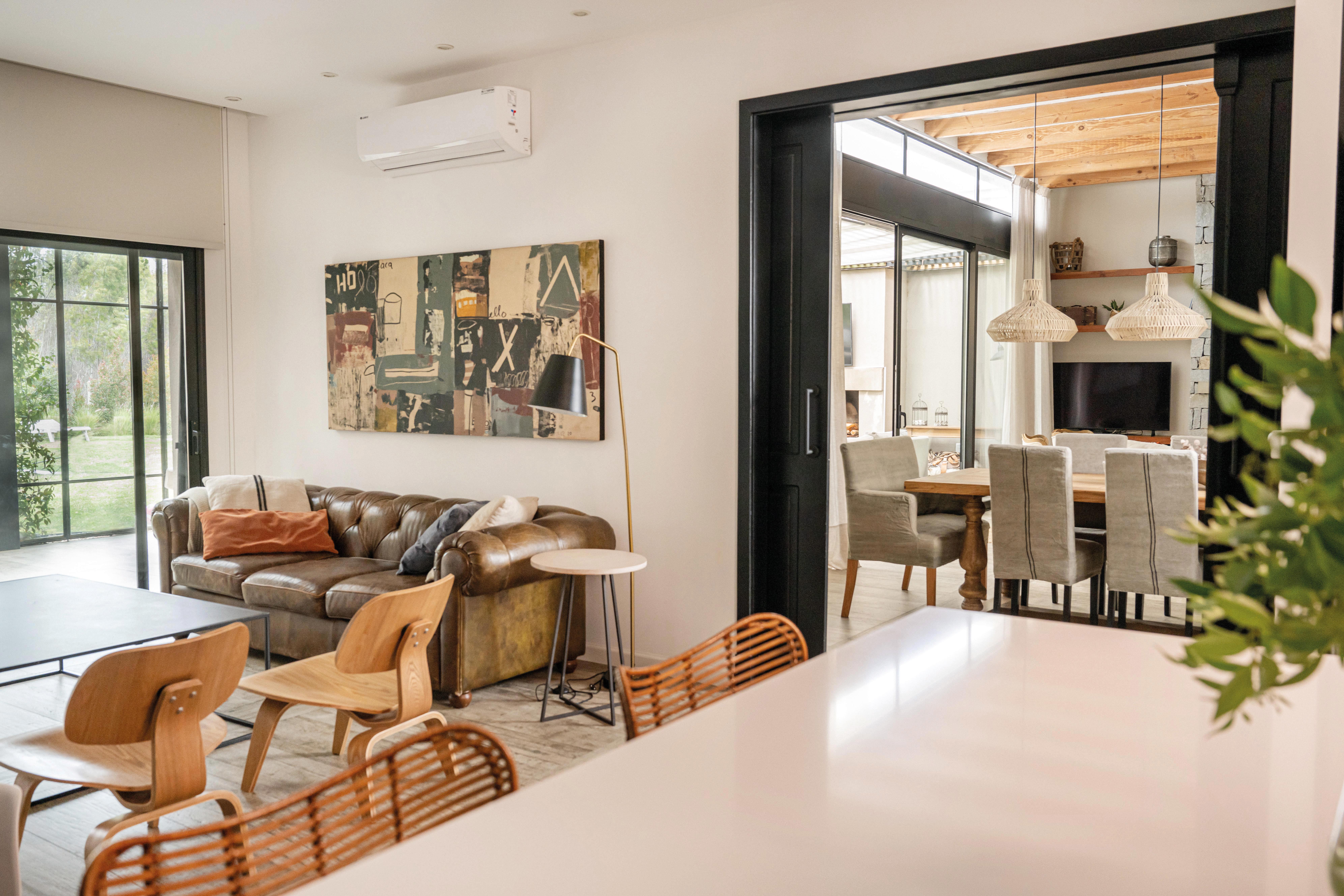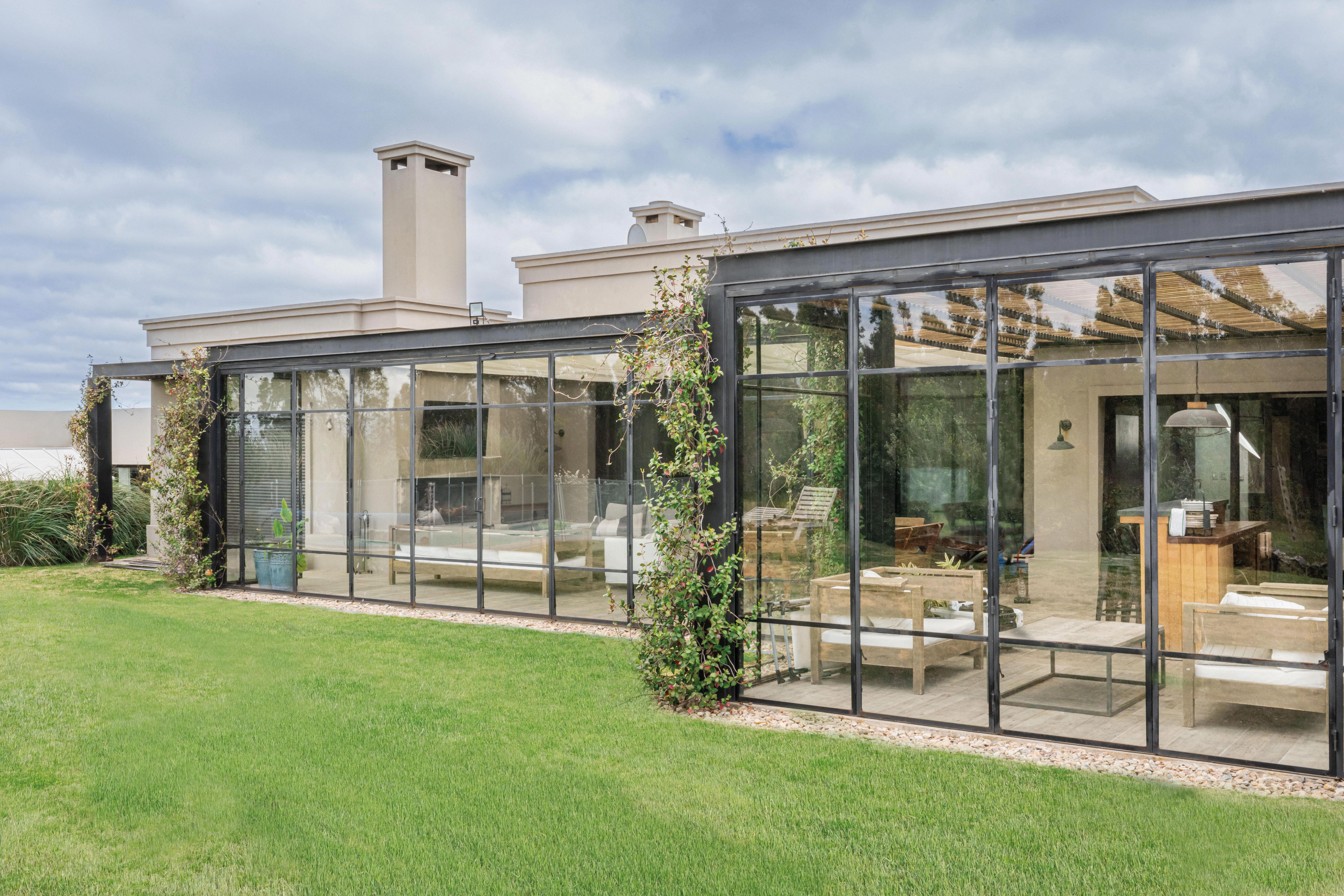 El acceso principal, estratégicamente ubicado, divide la vivienda en dos alas: una destinada a los espacios sociales y otra a los privados. El salón principal, que integra el estar y el comedor, se abre hacia el jardín interior a través de grandes ventanales corredizos, creando una conexión visual y espacial que invita a la relajación y el disfrute. La cocina, diseñada como un espacio funcional y acogedor, se convierte en el epicentro de la vida familiar. La elección de materiales nobles y la integración de electrodomésticos de última generación hacen de este ambiente un lugar práctico y estéticamente agradable. El jardín interior, protegido por una estructura de hierro que evoca una pérgola o un patio inglés, se convierte en un espacio versátil que puede disfrutarse durante todo el año. La barbacoa, integrada al jardín, permite organizar reuniones al aire libre y disfrutar de momentos de convivencia.