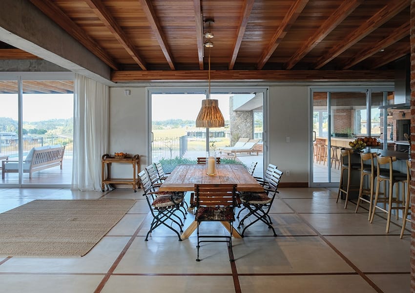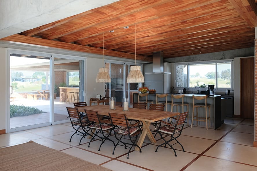 El diseño central de la casa gira alrededor de un amplio patio tipo claustro que define las galerías de circulación interior. Este diseño ofrece una distribución eficiente y una clara división de los espacios. La casa se organiza en cuatro sectores principales, Sector de Dormitorios: Incluye tres dormitorios en suite, un dormitorio para niños y una mastersuite con un patio íntimo.