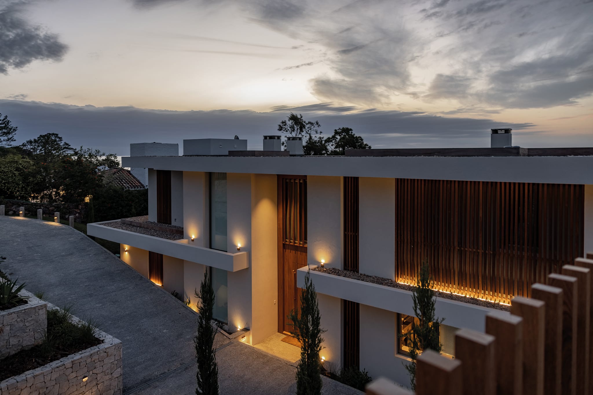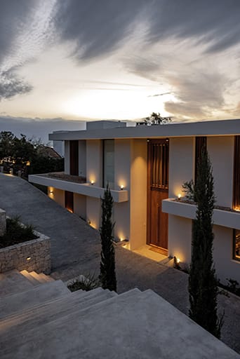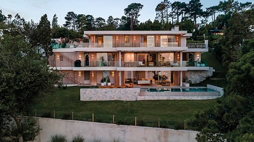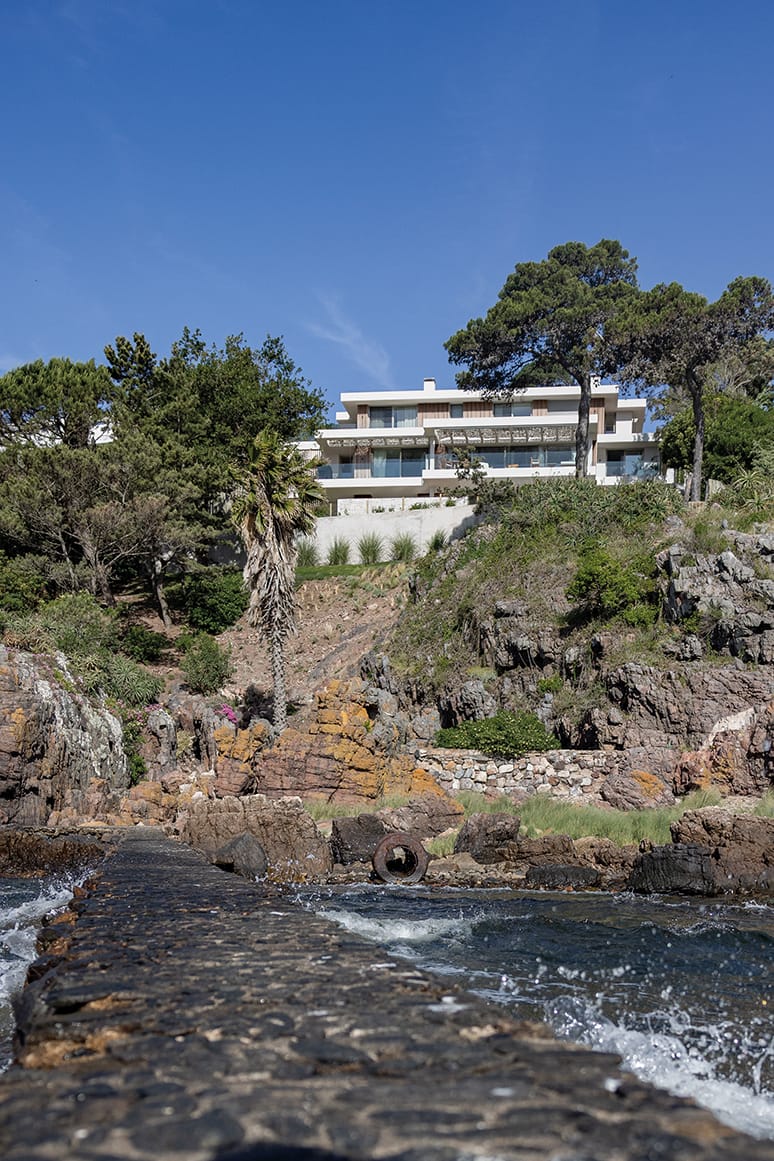 Este proyecto conjuga tres factores protagónicos en su configuración, topografía extrema, mar infinito y una sinergia especial entre arquitectos y clientes. Ubicada en la ladera Oeste de la Punta Ballena, con una vista inigualable sobre la bahía de Portezuelo esta casa desarrolla terrazas en complicidad con la pendiente del predio. Con una fachada de acceso algo introvertida hacia el Este en contraste con la amplitud y extroversión del vinculo hacia los mejores atardeceres de nuestra costa, la fachada Oeste se presenta con tres niveles en bandejas de usos bien definidos. .reas privadas en el nivel superior, .reas sociales en el nivel intermedio y en contacto con el suelo barbacoa, gym, solarium y piscina. Cada rincón de este proyecto brinda una experiencia .nica y calificada, donde se vivencia paz a cada instante, evidenciando en los detalles y en la atmósfera de los espacios, el cariño y dedicación de los clientes aportaron a todo el proceso.