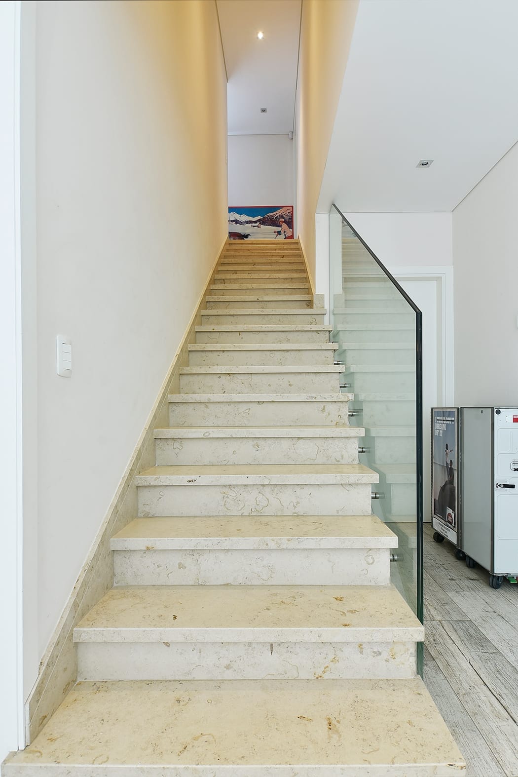 El uso de la piedra caliza y hormigón a la vista no solo aporta una apariencia de impacto, sino que también garantiza durabilidad  y  eficiencia energética. La elección de esta piedra natural no solo obedece a un partido basado en la estética sino que también atiende la funcionalidad pretendida en el diseño general, ya que contribuye a mantener la temperatura interior y brinda una protección sólida contra los elementos externos.