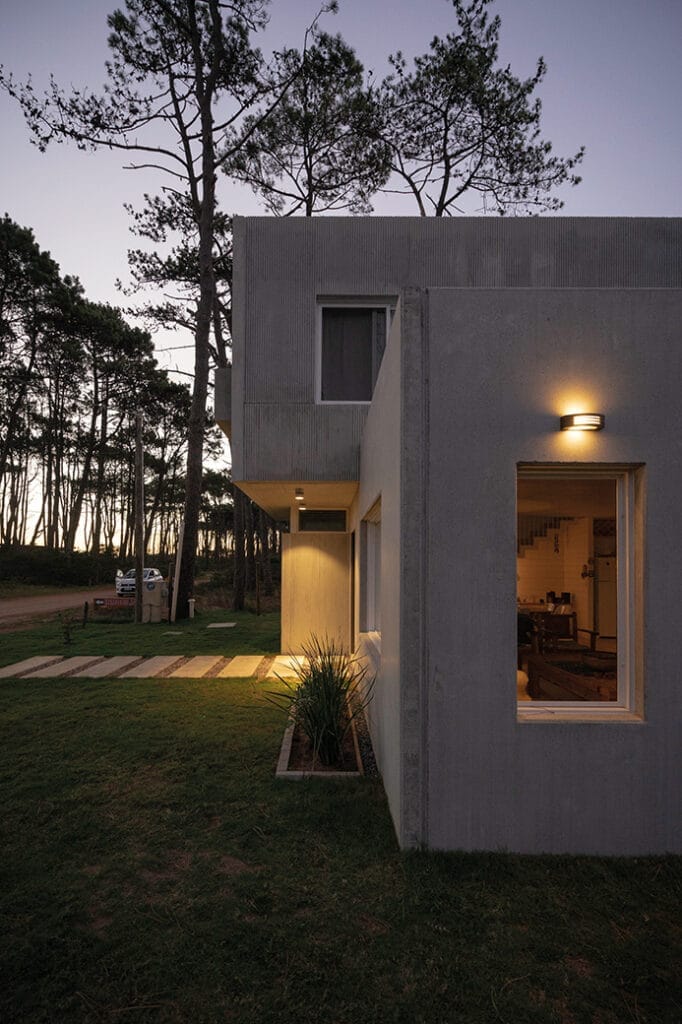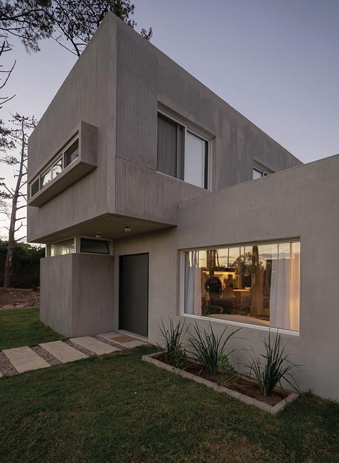 Casa Ocean se implanta en un terreno de suave pendiente, próximo a la costa del balneario. Se proyecta en dos niveles, en los que la planta baja, de carácter público, se cierra al acceso en forma de L para abrirse hacia el norte en busca de las vistas de la costa. La planta alta es un volumen rectangular simple que, apoyado sobre la L de planta baja y en sentido norte-sur, permite generar dos grandes espacios exteriores techados, uno para el acceso y otro para el parrillero. La utilización del sistema constructivo cross wall permitió potenciar este juego volumétrico a través de la utilización de distintas texturas.