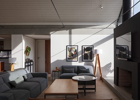 La simplicidad formal del diseño, lejanamente emparentada con el espíritu nórdico, genera un interesante juego de formas geométricas que señalan especialmente el triángulo que genera la cubierta a dos aguas que genera el eje en cruz de la estructura. La economía de materiales enriquece la propuesta asignando un valor conceptual muy definido a la casa. La casa se levanta en uno de los predios de la urbanización Viñedos de La Tahona y entonces la fachada niega al exterior que se reserva para un jardín encantador para el cual la fachada cerrada de la casa es un telón singular. Los espacios interiores, abiertos hacia el jardín posterior, resultan especialmente atractivos en el juego de alturas y ángulos que genera la cubierta.