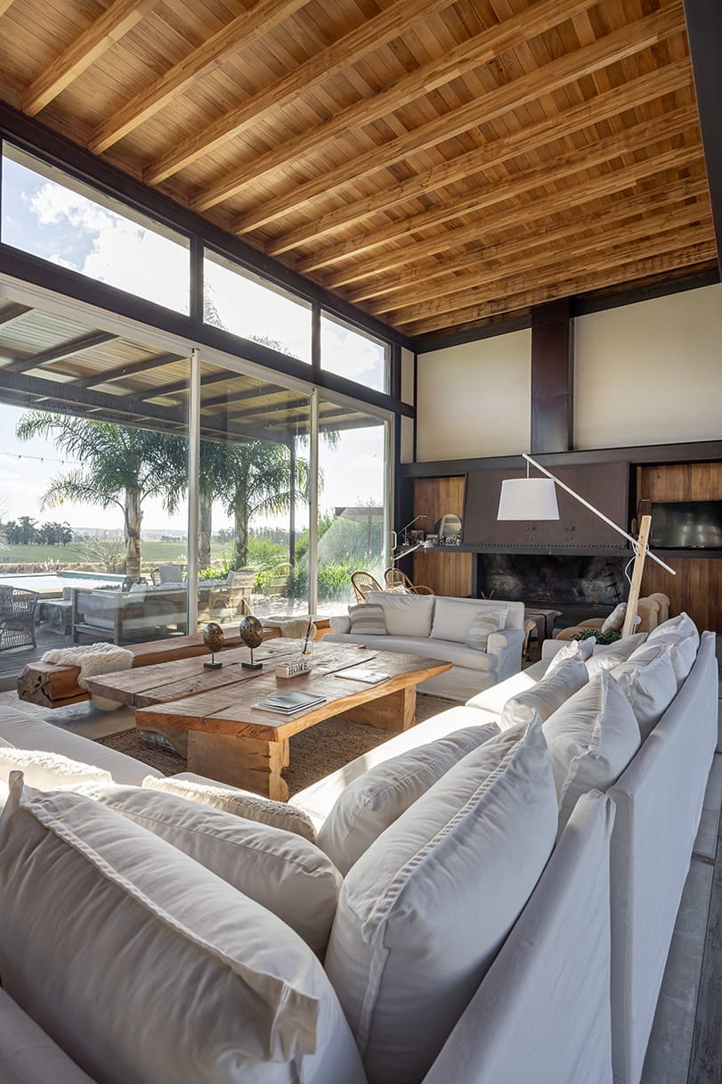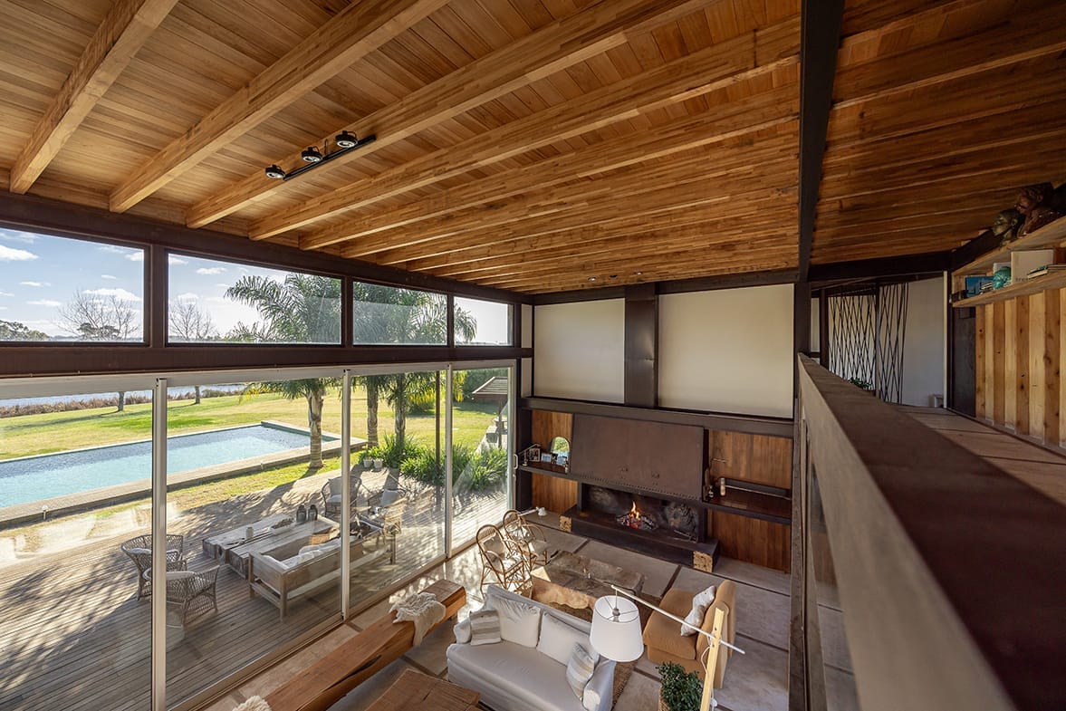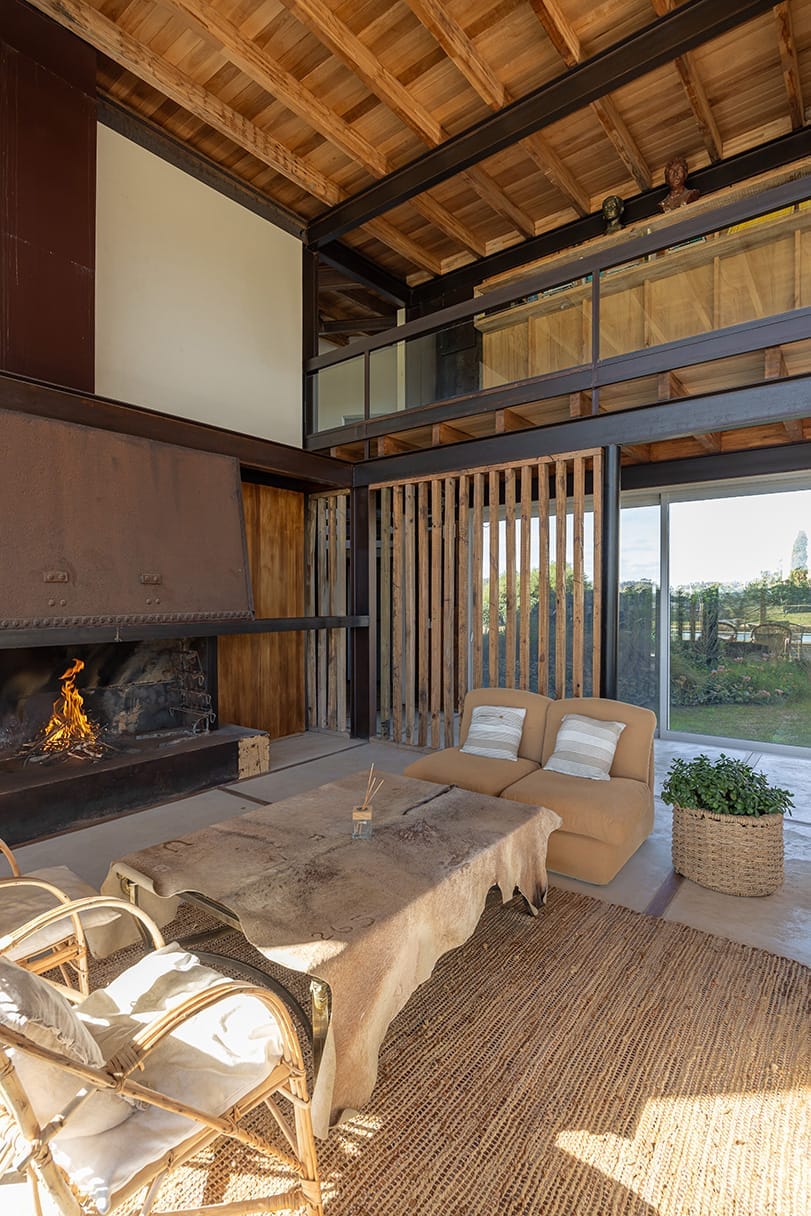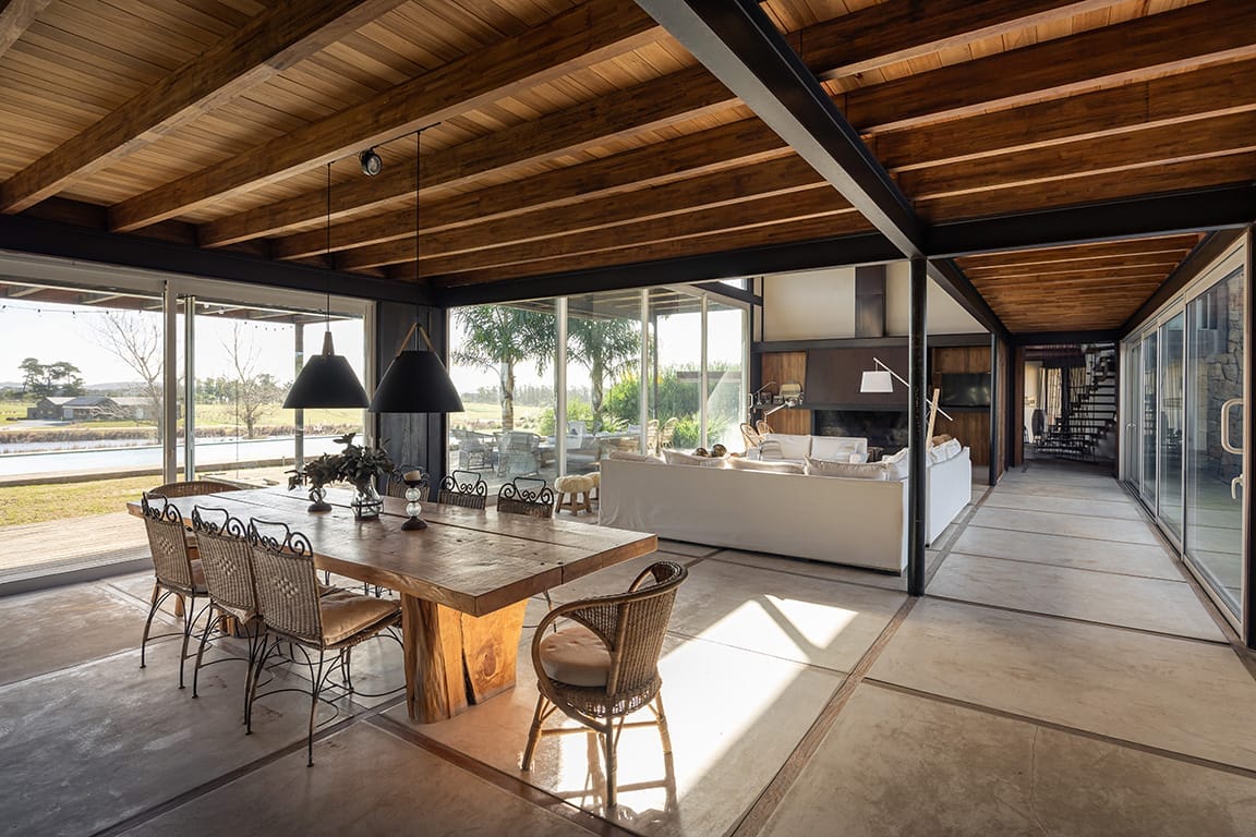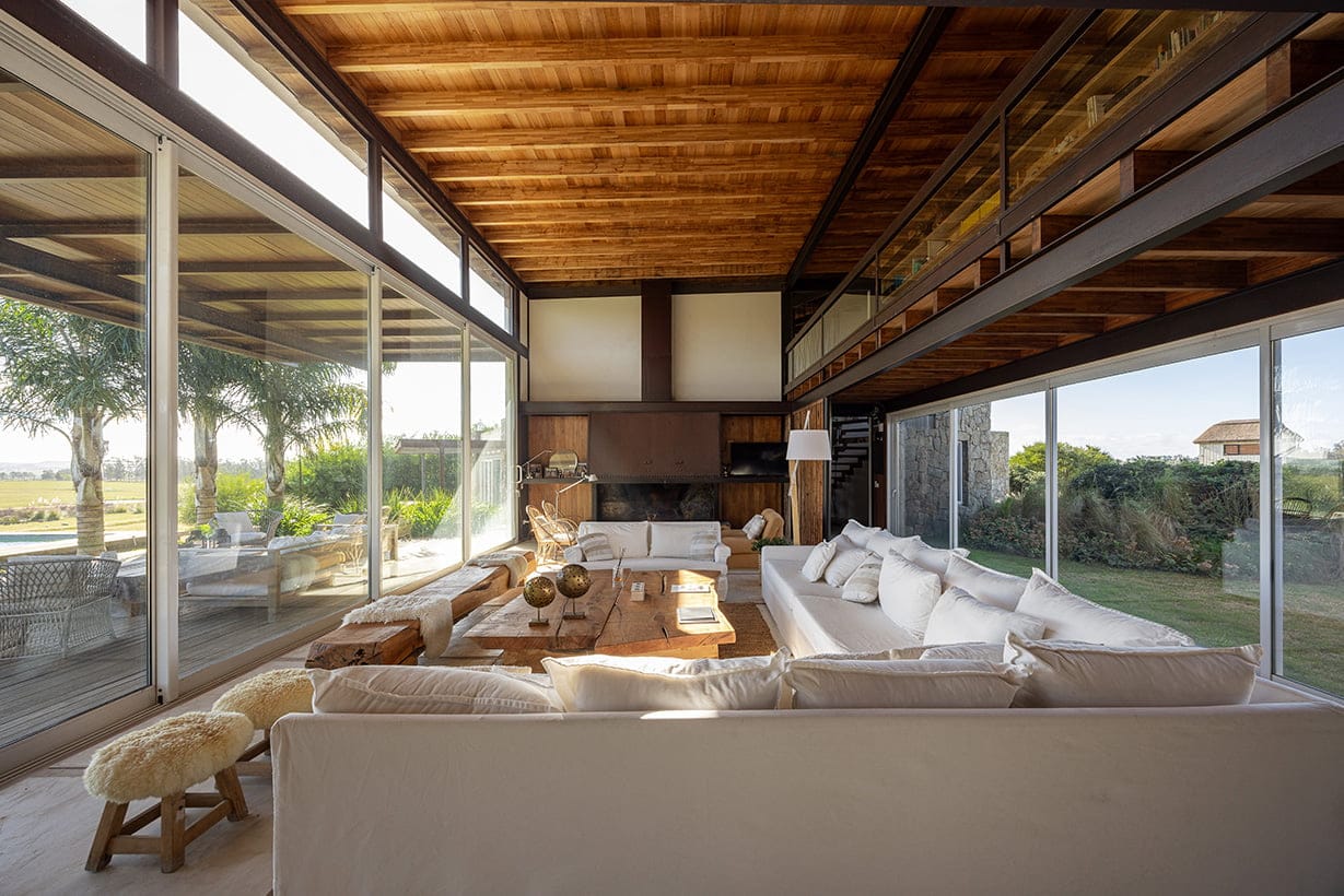 Al ingresar, la casa revela una serie de espacios únicos en cada metro cuadrado. El amplio living, comedor y cocina están conceptualizados como una planta libre, con un diseño de doble altura que crea un vacío espectacular hacia el segundo nivel. Los grandes ventanales corredizos vinculan de manera directa el interior con el exterior, inundando todos los espacios con luz natural a lo largo del día y permitiendo una conexión continua con la naturaleza circundante.