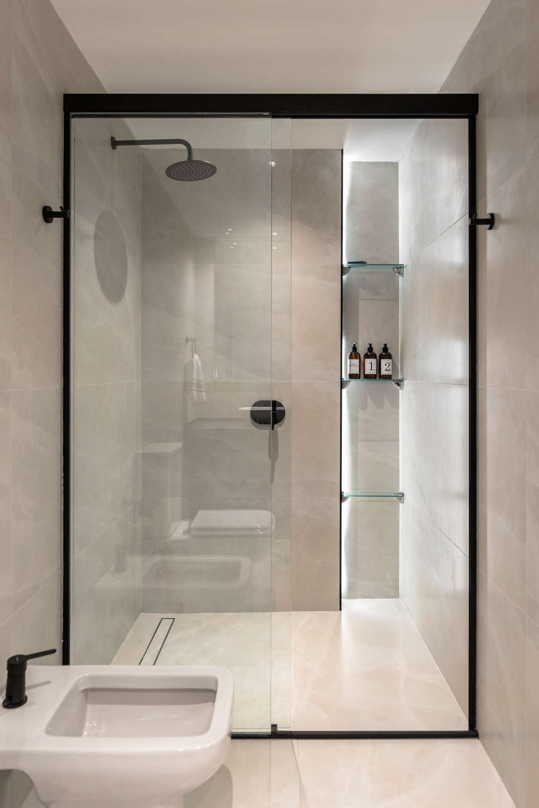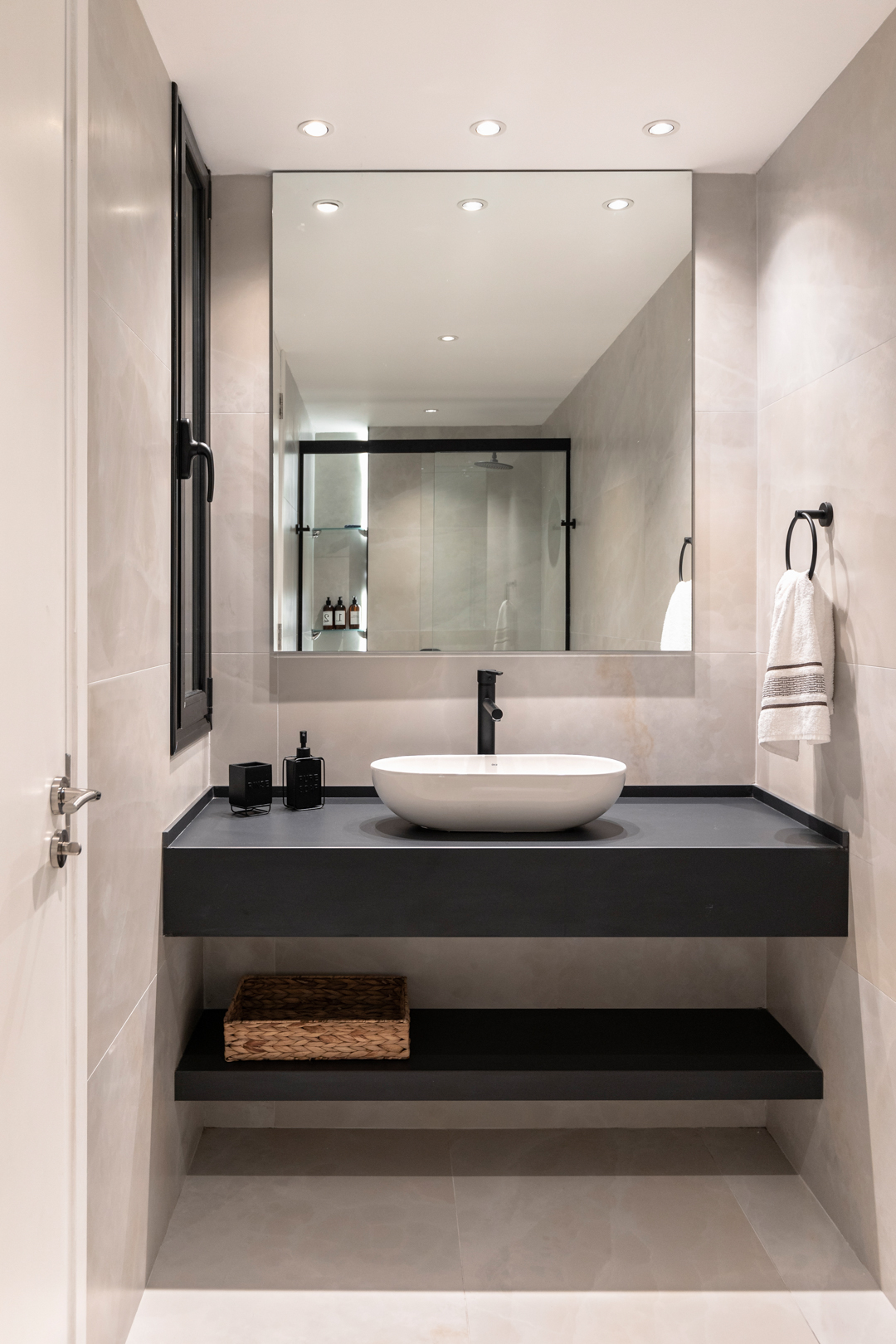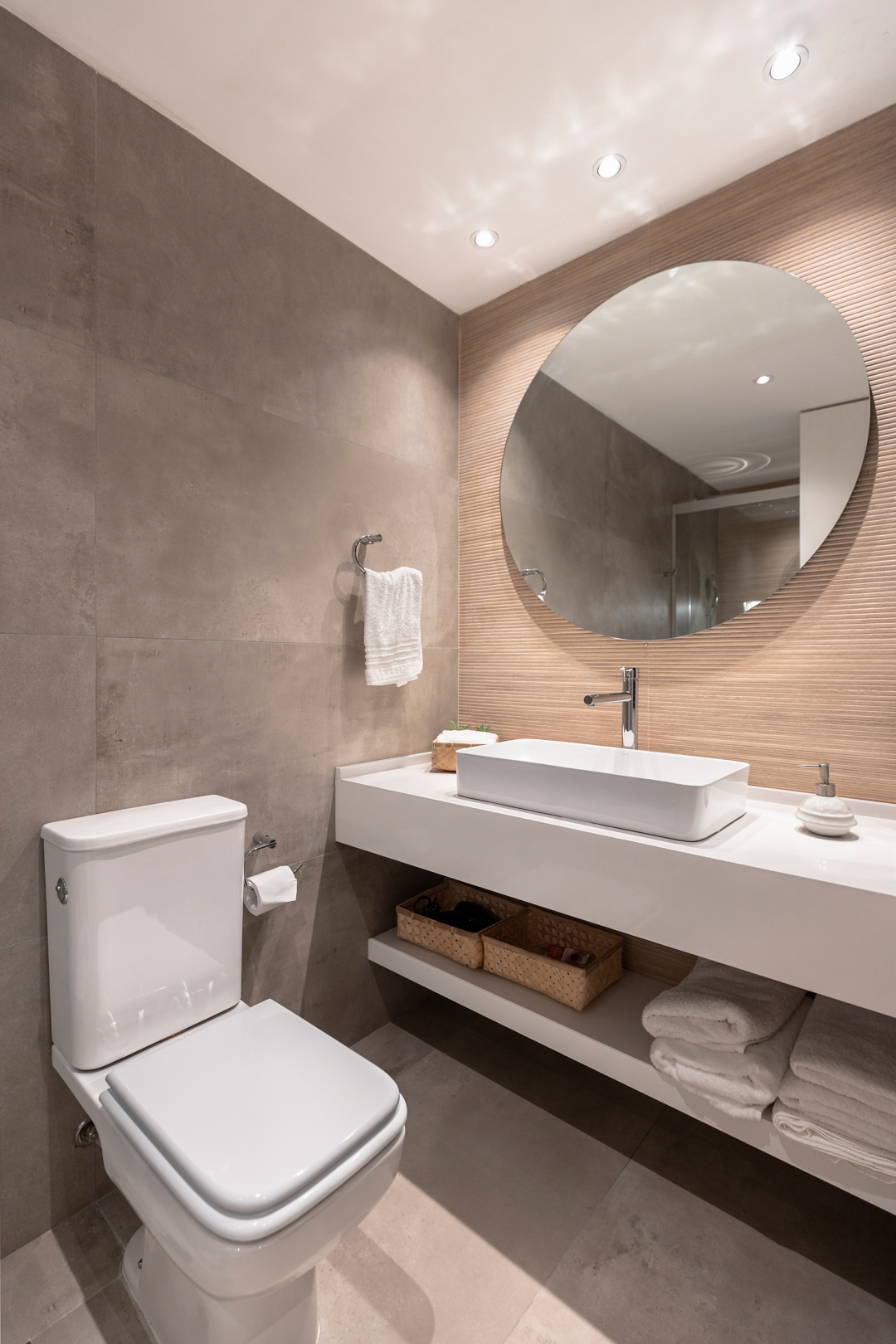Respecto a la materialidad se optó por utilización de tonos neutros y beige combinados con paños verticales de madera para dar mayor calidez. A su vez, se buscó generar contrastes entre claros y oscuros, tanto en fachada como en el interior, para dar ciertos destaques y así lograr un mayor impacto visual.