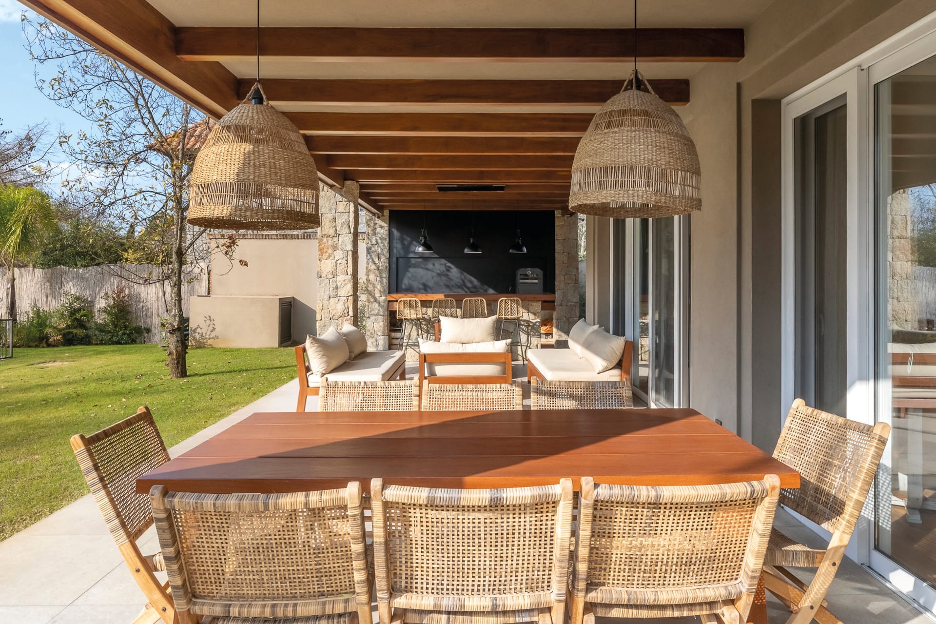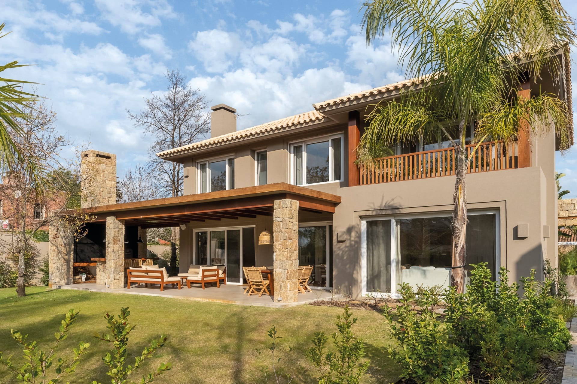 Piedra, madera y texturas naturales definen la esencia de este proyecto. Esta casa ubicada sobre la Av. Costanera en Jardines de Carrasco,