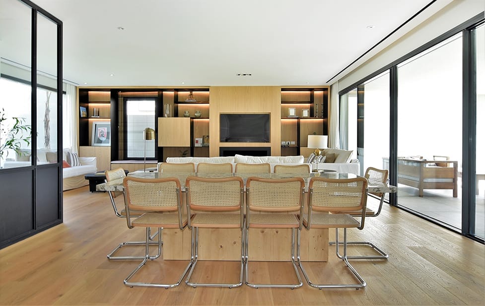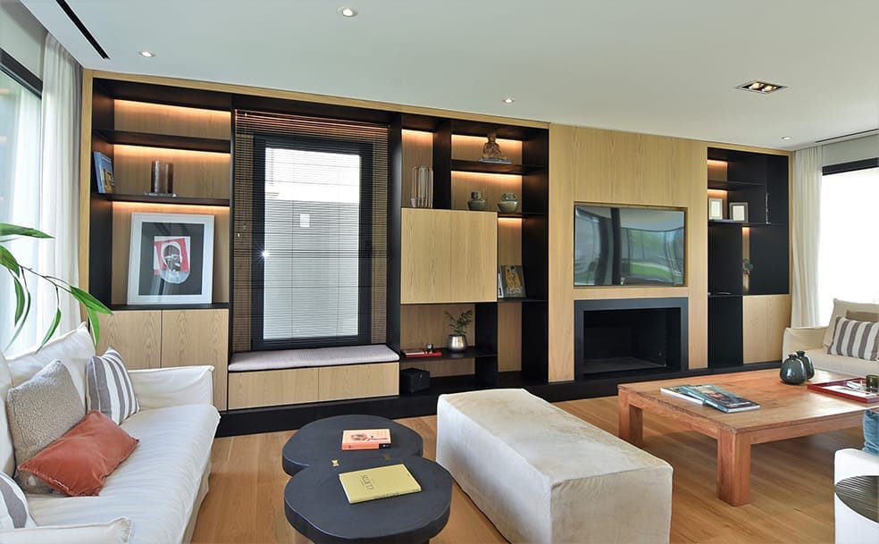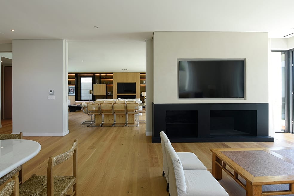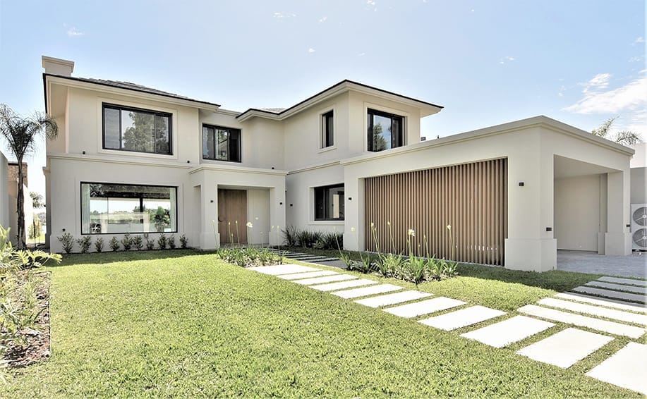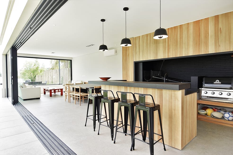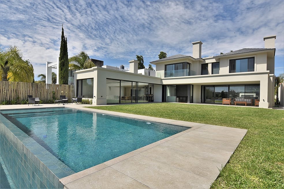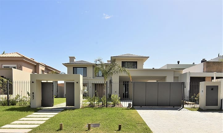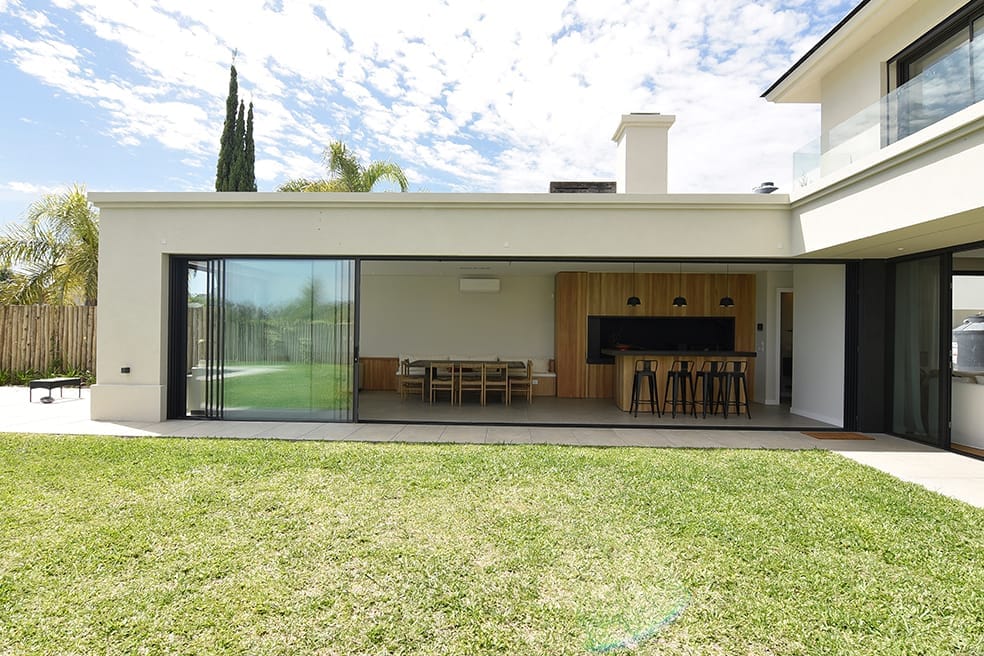 La casa fue concebida en su diseño con el lenguaje plástico que define la producción del estudio en esta etapa. La limpieza de la estructura y el juego geométrico con el que se resuelve la fachada se replica en la fachada posterior sosteniendo un ritmo y composición naturalmente.