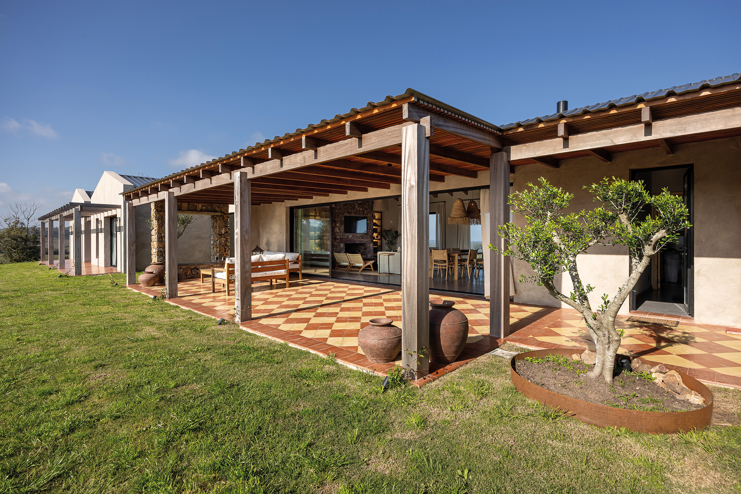 El diseño sigue una línea tradicional, inspirada en las construcciones clásicas de la zona. La casa, desarrollada en una sola planta y en forma de «L», genera un patio central que actúa como el núcleo articulador de todos los espacios. Este recurso no solo responde a criterios de funcionalidad, sino que también crea un espacio de encuentro, protegido del viento y abierto hacia las mejores vistas. La disposición en «L» maximiza la conexión visual y física entre los ambientes interiores y el jardín central, generando una continuidad que diluye los límites entre el interior y el exterior.
