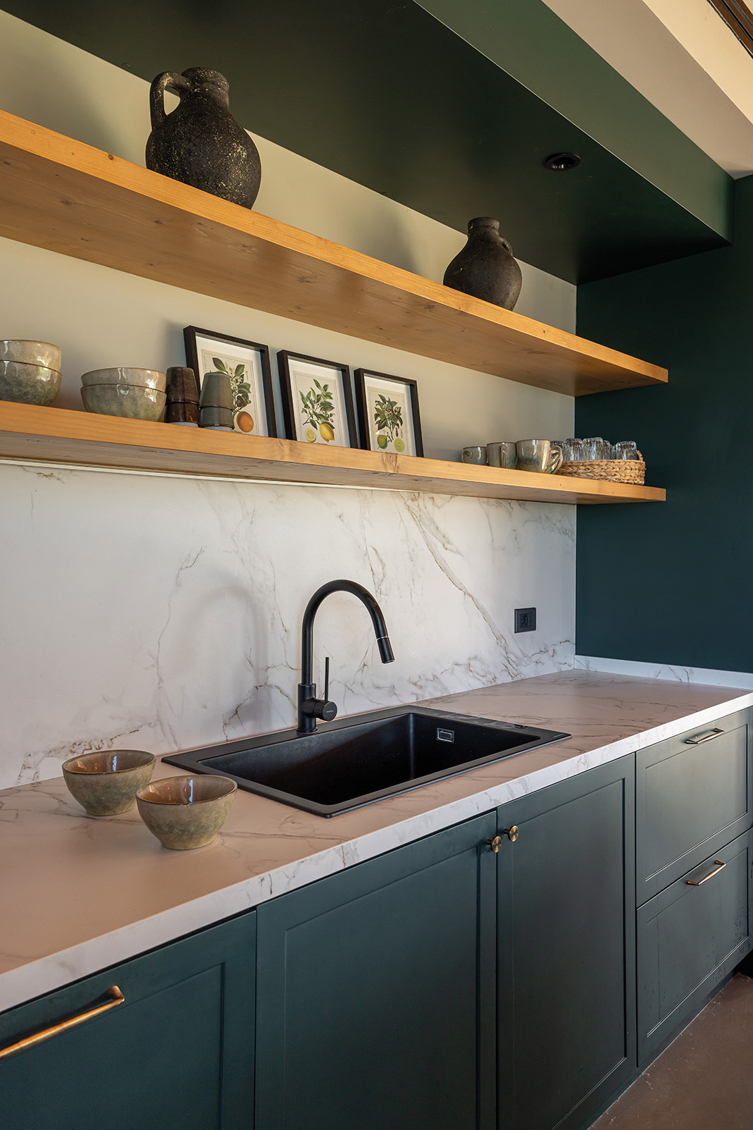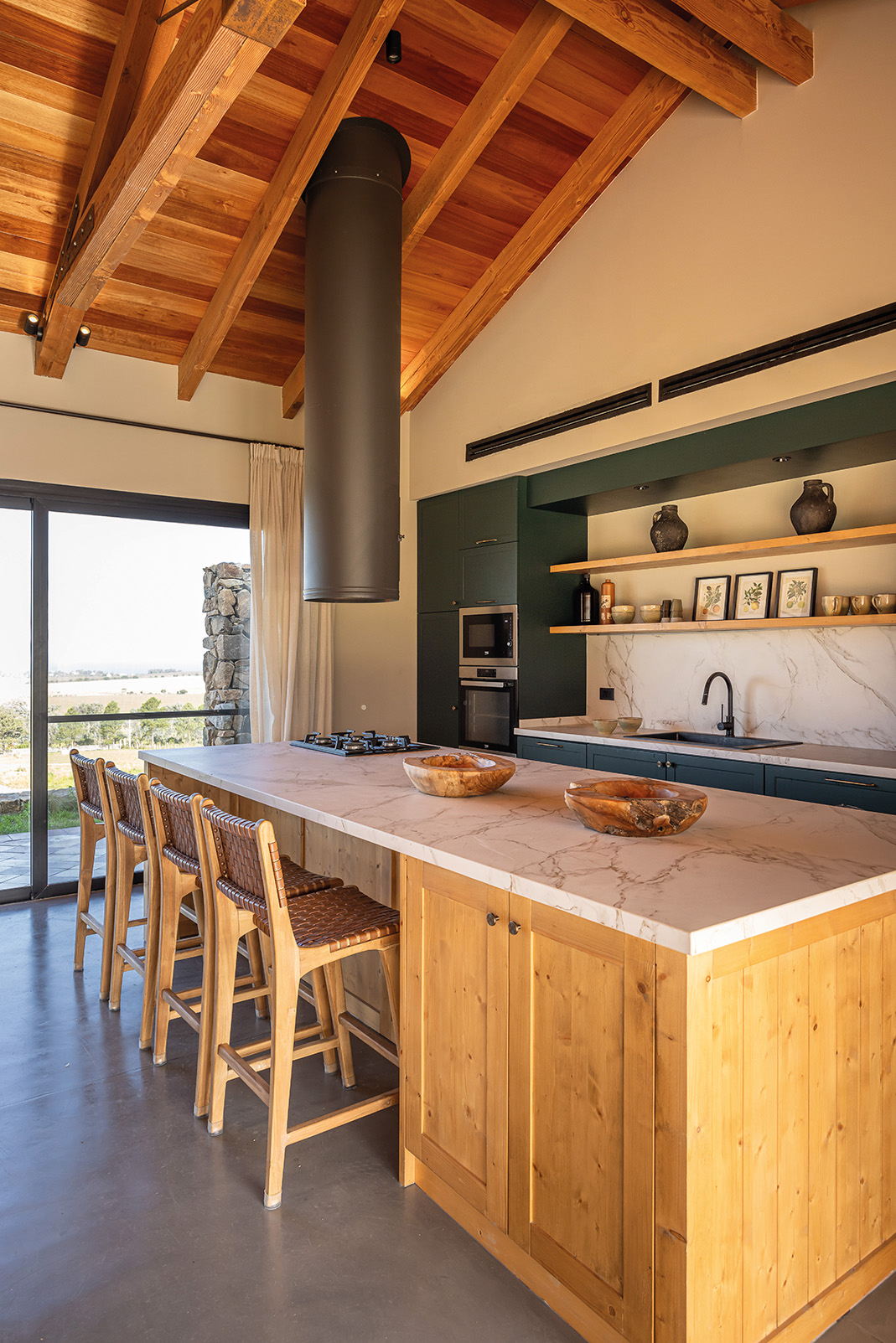 La simplicidad y funcionalidad del diseño se reflejan en la distribución eficiente de los espacios, priorizando la comodidad sin sacrificar el estilo. El diseño interior es una extensión del concepto arquitectónico, con una estética que combina lo rústico con lo contemporáneo. Materiales nobles como la madera y el hierro se utilizan para generar una atmósfera cálida y acogedora, mientras que el mobiliario de líneas simples y modernas aporta un toque actual, logrando un equilibrio entre tradición y modernidad. La integración de lo antiguo y lo nuevo refleja una arquitectura de campo actualizada, donde la funcionalidad y el confort conviven con respeto y en sinergia.