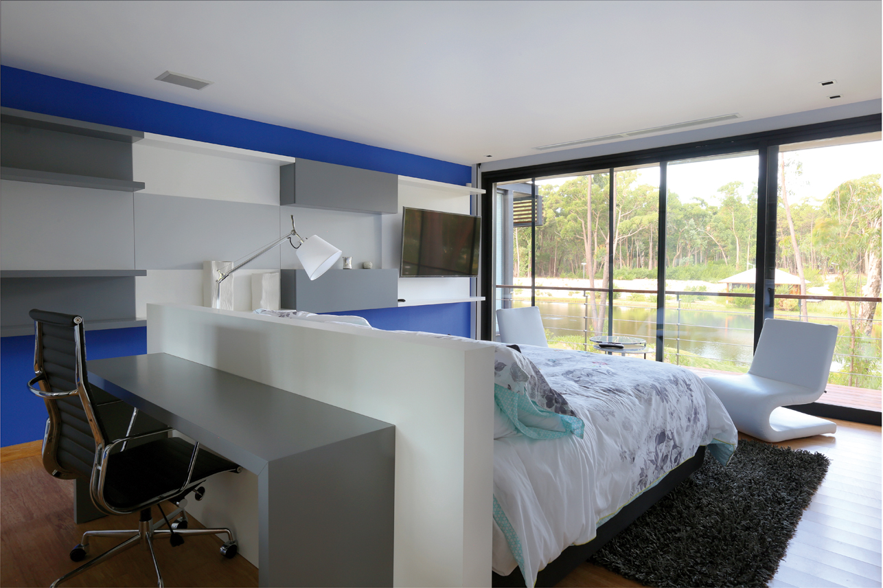 Ese modo de subdividir el emprendimiento en pabellones rectangulares que encuentran el vínculo para formar un todo, los desniveles creados por la construcción elevada, la armonía general del conjunto y la estética de cada unidad individual exhiben una arquitectura con fuertes referencias asiáticas; adaptada al contexto del bosque, claro. La imagen final del complejo resulta original, serena, y despliega el equilibrio perfecto entre diseño y naturaleza.