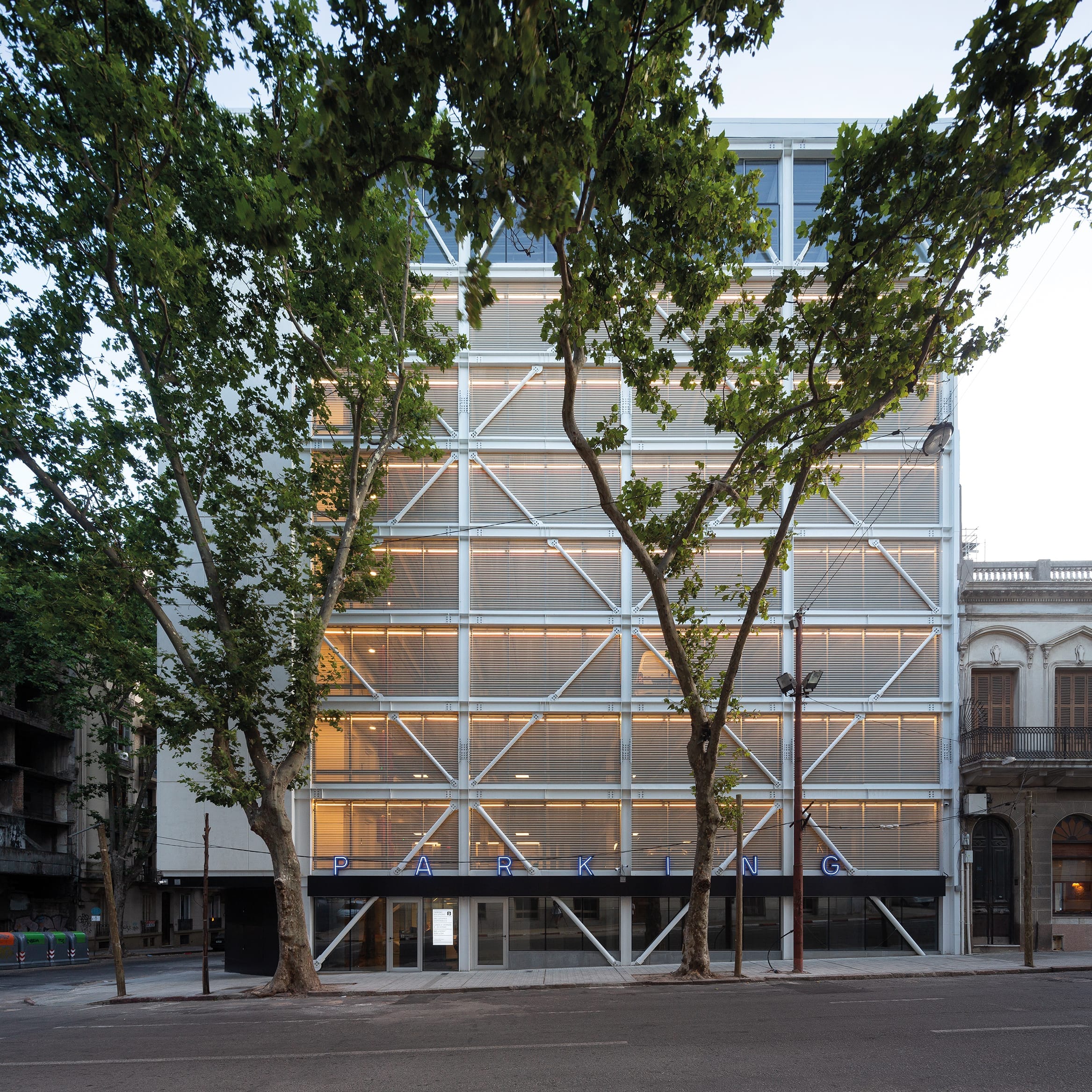 Pertenece al entorno urbano de la plaza independencia, uno de los espacios más emblemáticos de la ciudad de Montevideo, forma parte del sistema de las principales sedes gubernamentales, y del centro financiero, cultural e histórico de la ciudad, escenario de tensa disputa urbana por los espacios destinados al automóvil. Así, durante el día el edificio responderá a la alta demanda comercial e institucional a través de un local de servicios en planta baja y de sus siete plantas destinadas al parking temporario de vehículos. Mientras que a la noche, el local del último nivel y la azotea habilitarán actividades diversas, de ocio y gastronómicas típicas de la escena nocturna del sector.