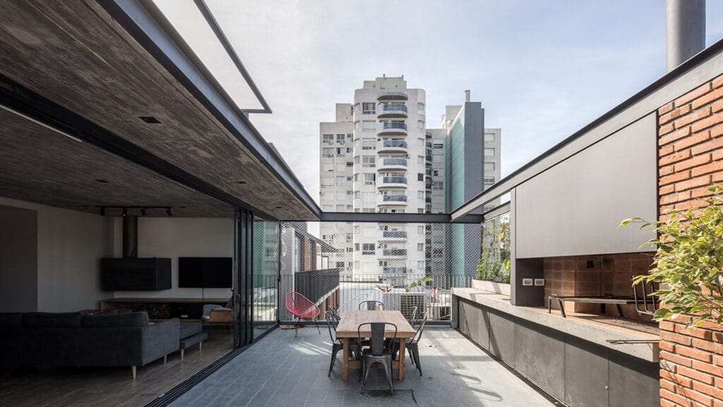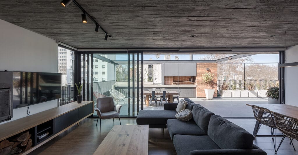 Las unidades de planta baja están diseñadas para brindar una experiencia residencial única. Cuentan con entradas independientes que aseguran la privacidad y la exclusividad de cada unidad. Además, en los niveles superiores, se encuentran ambientes en dúplex de doble altura y un gran loft en la última planta, que ofrece una sensación de amplitud y sofisticación. El diseño interior ha sido cuidadosamente concebido para proporcionar comodidad y funcionalidad en cada espacio, creando un ambiente acogedor y elegante. La elección de los arquitectos de posicionar espacios en doble altura en las unidades, tiene la finalidad de lograr que la luz natural inunde los ambientes, generando una espacialidad sobresaliente, como así lograr una vinculación mas intima entre las unidades del complejo.