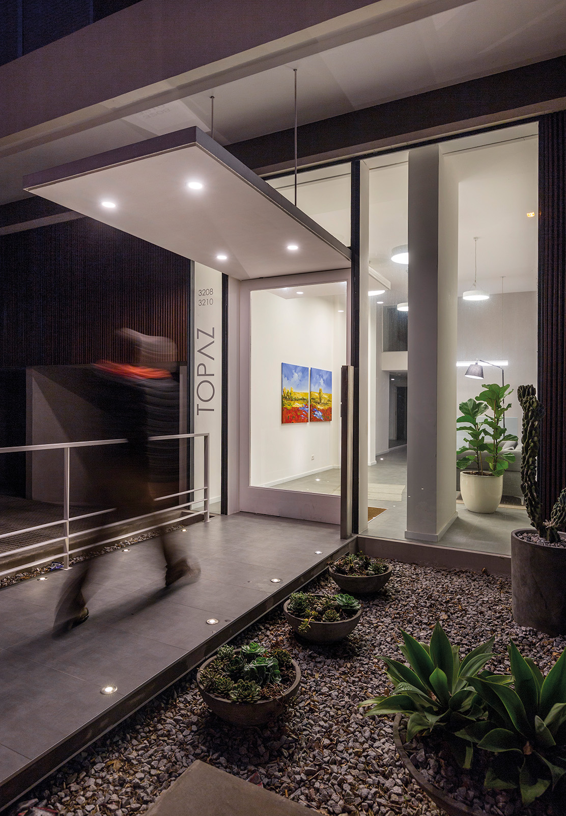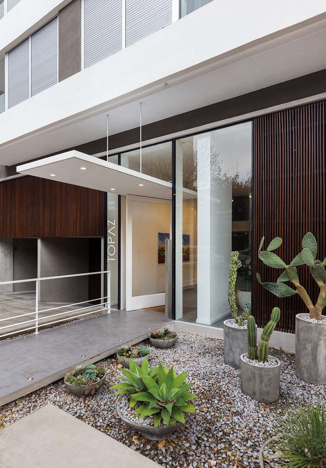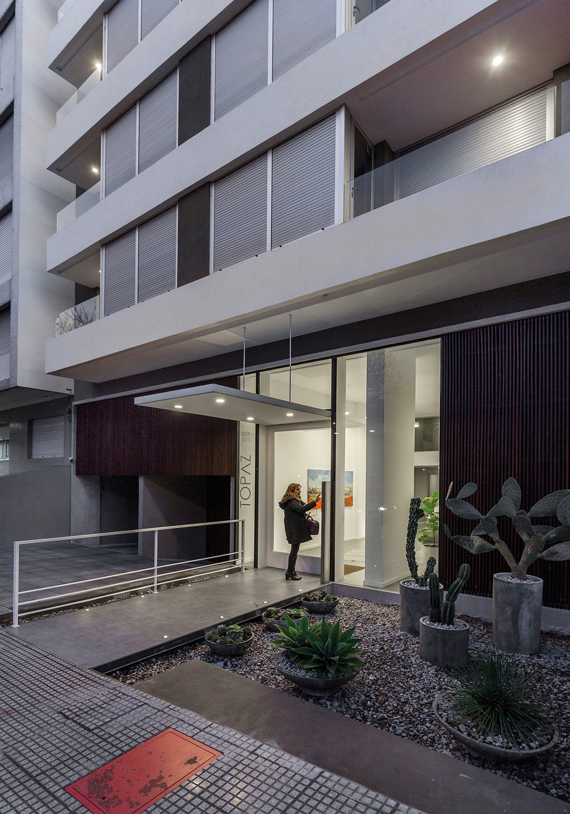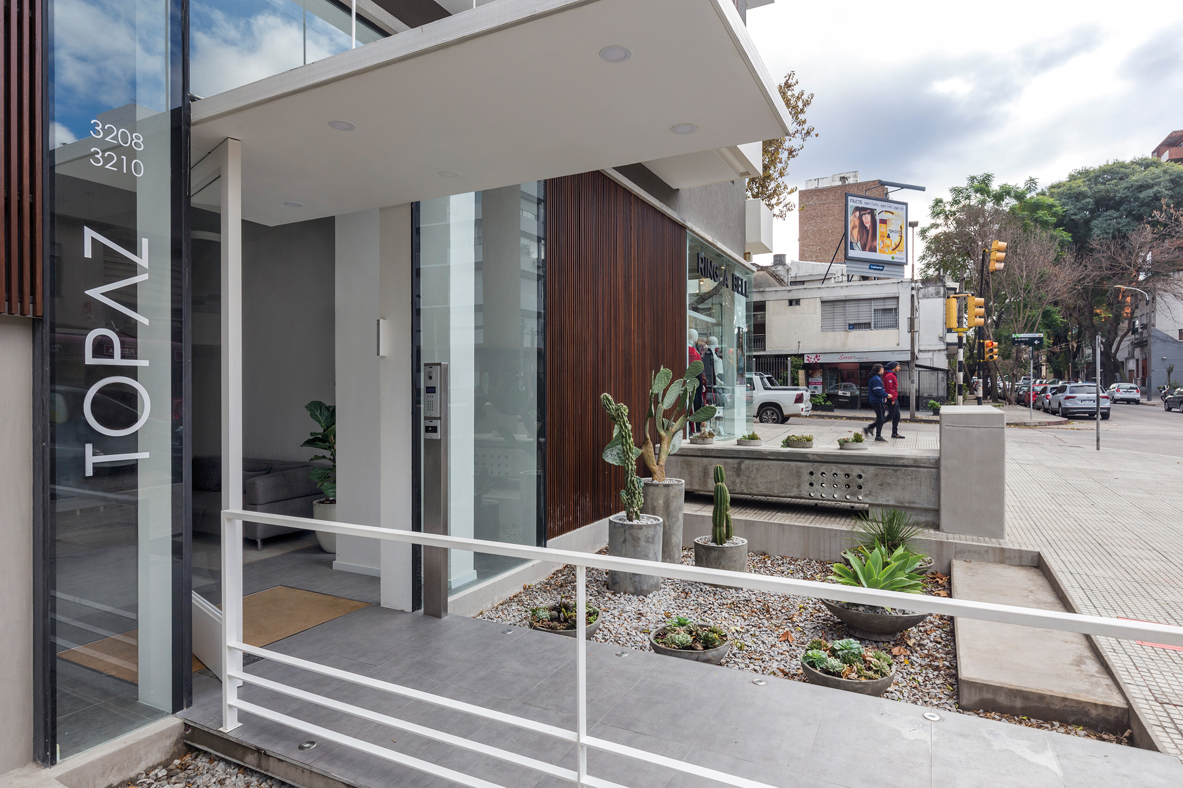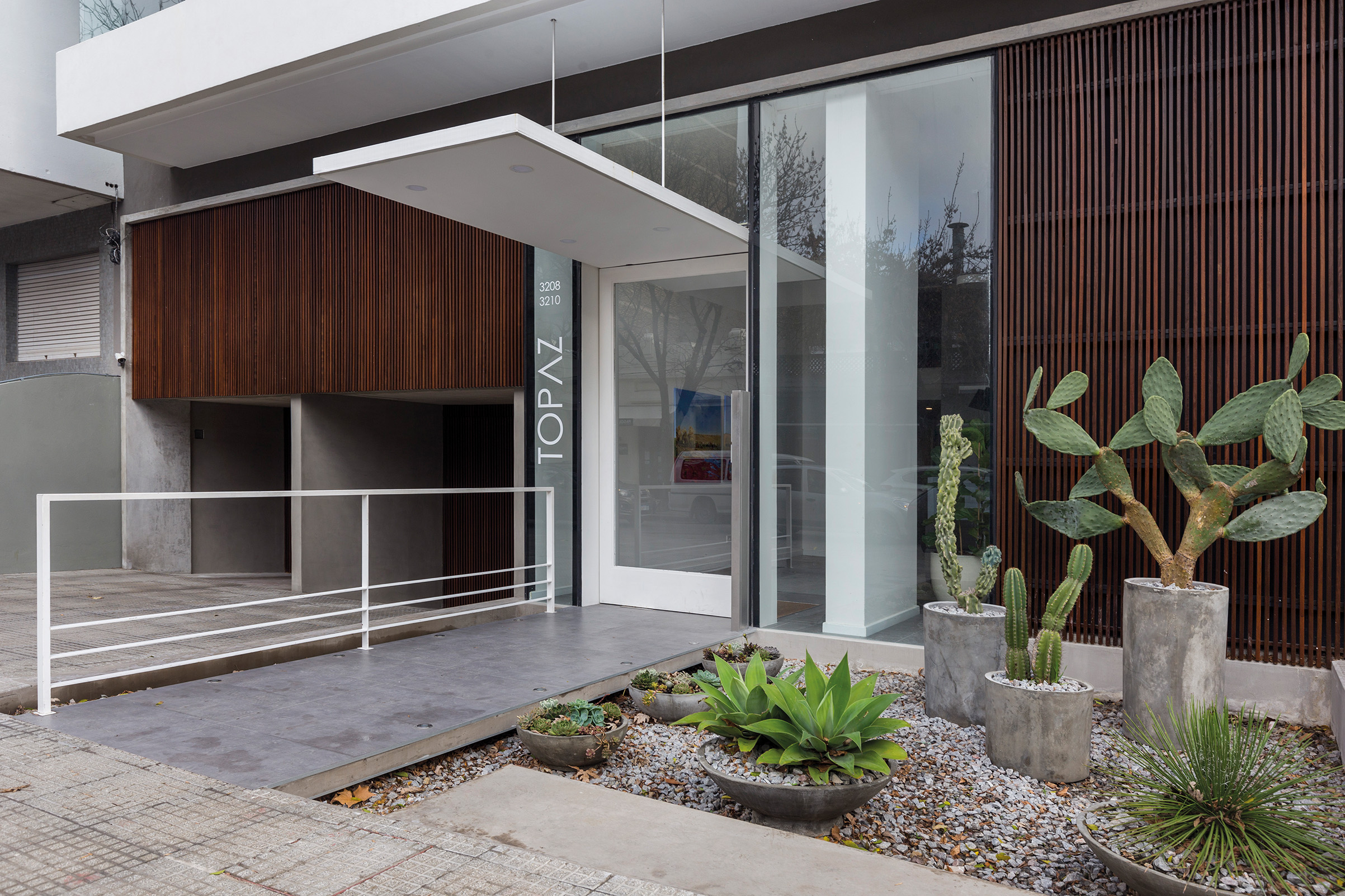 Topaz es un edificio de vivienda multi familiar que ocupa la esquina que forman la intersección de las calles 26 de Marzo y Manuel Vicente Pagola, a pocos metros de la rambla y de la Playa de los Pocitos. Es uno de los pocos edificios de nueva construcción que se levantan en el emblemático barrio de Pocitos, famoso por su amplia oferta residencial y por la calidad de sus espacios públicos.