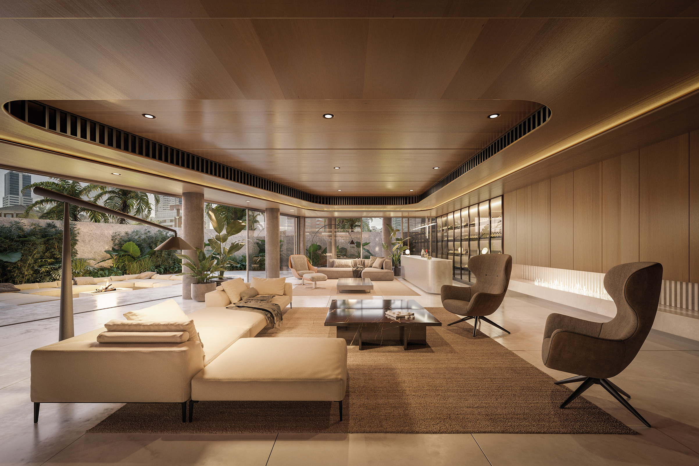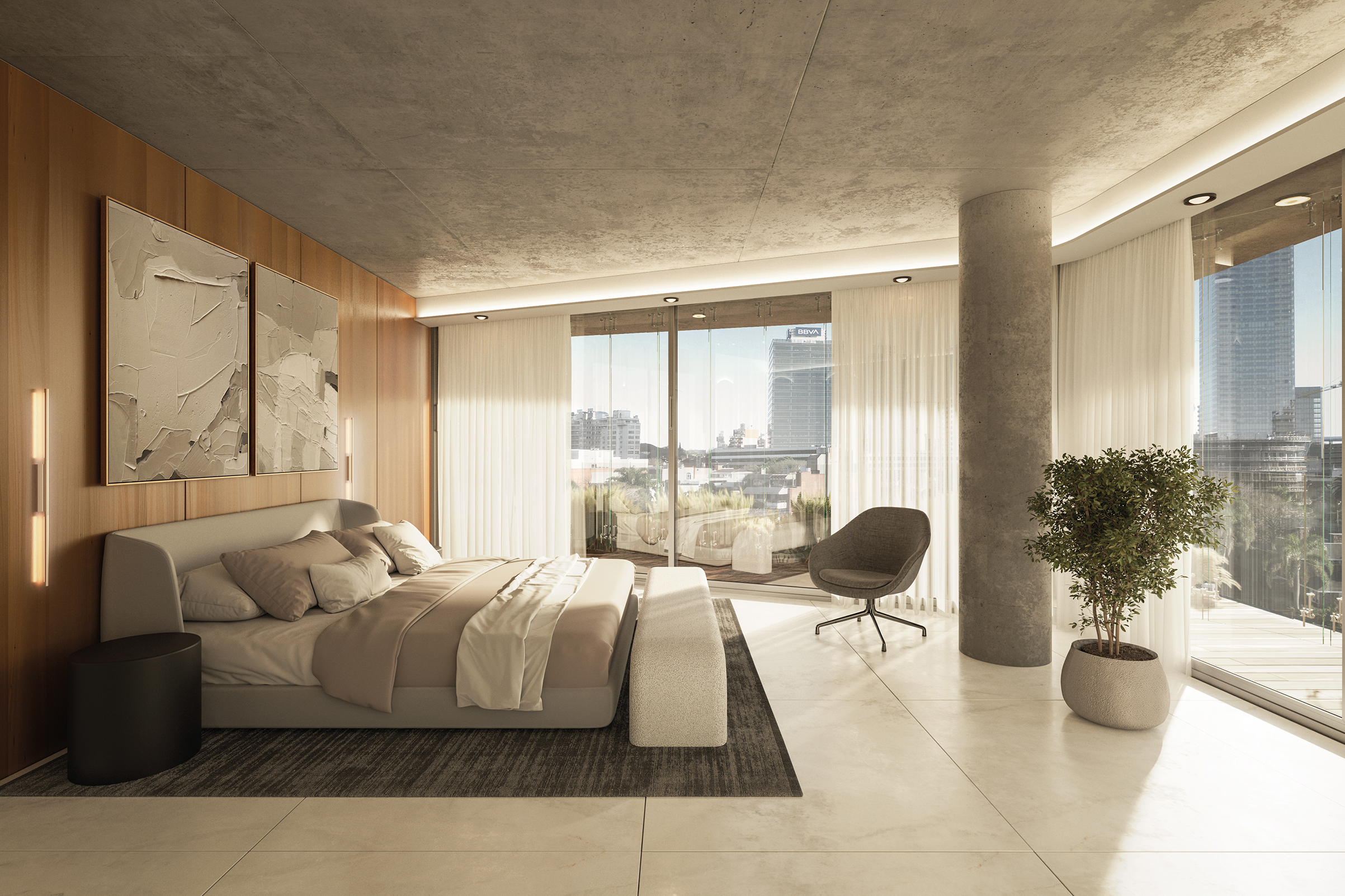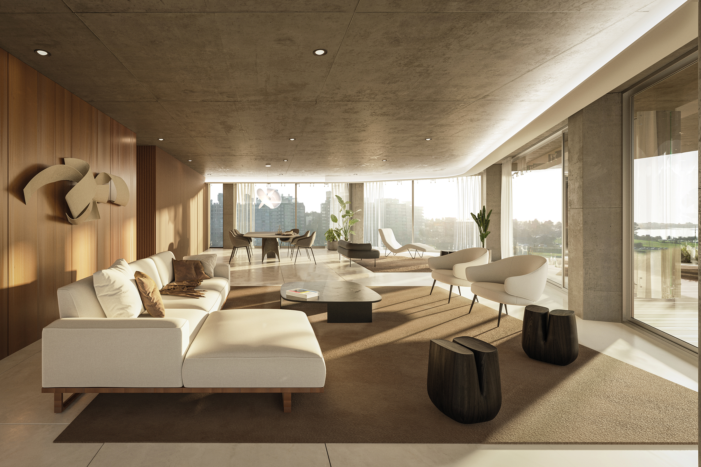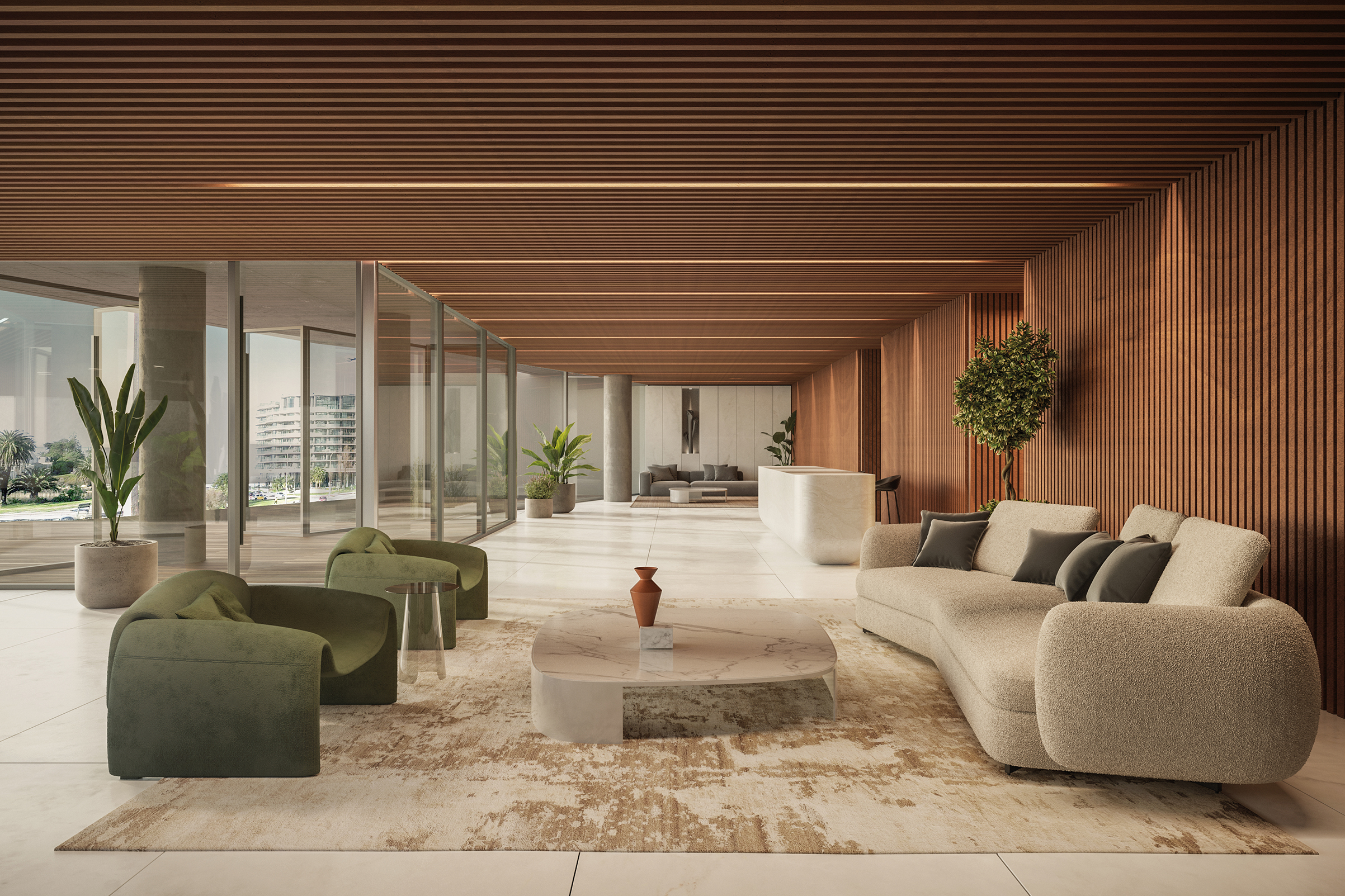 Desde esa conciencia, los arquitectos imaginaron una construcción que se abre hacia tres horizontes simultáneos: el Río de la Plata, la Plaza República de Armenia y la ciudad misma. Una tríada que define no solo su orientación física, sino también su identidad simbólica. Âme se concibe como una rótula entre esos tres mundos —urbano, cívico y natural—, un punto de inflexión donde la arquitectura deja de ser límite para convertirse en mediadora.