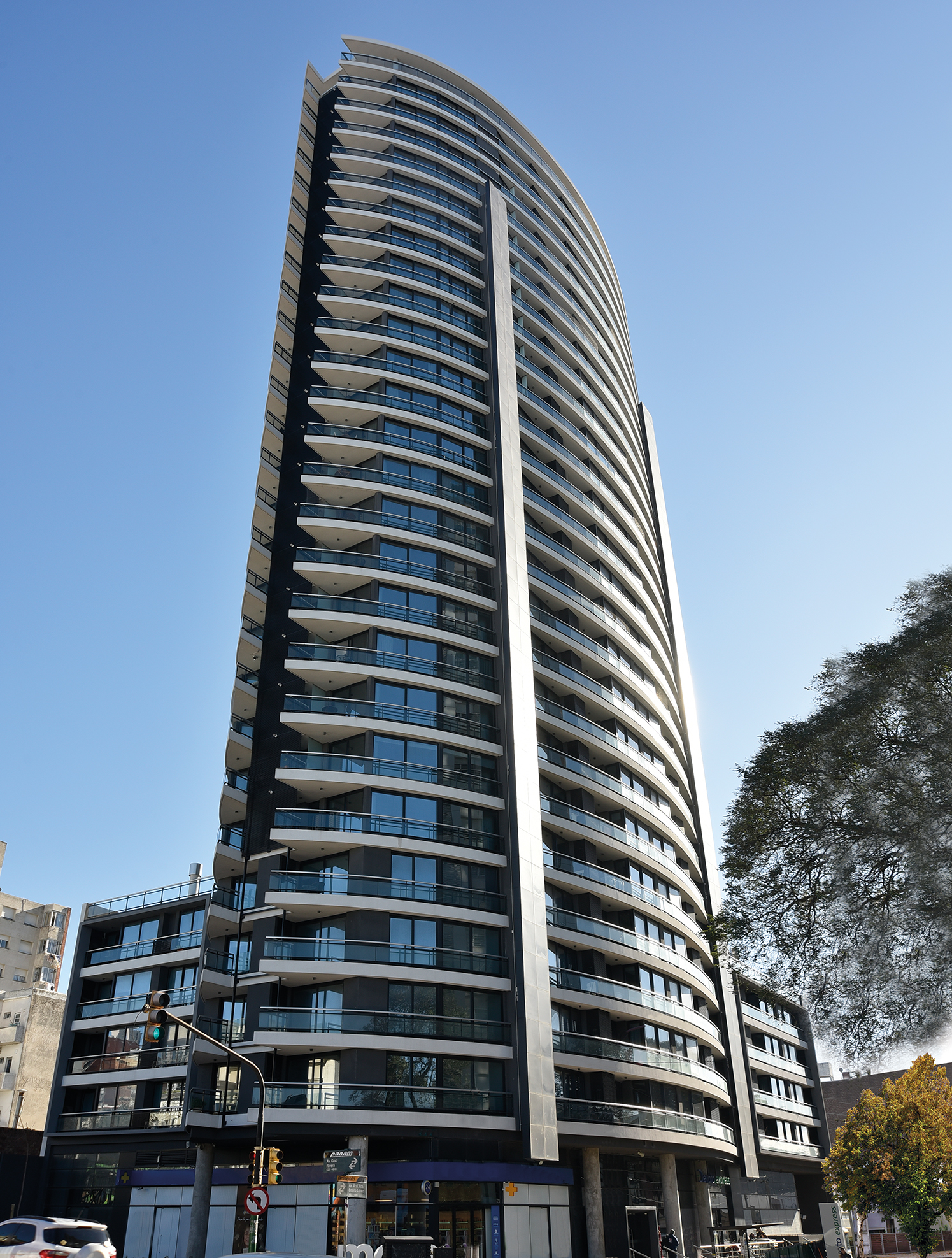 Hay edificios que no solo se alzan: se integran, se justifican, se comprometen con el lugar donde nacen. Esta torre no se impone al paisaje urbano, lo interpreta; no lo niega, lo acompaña. En una esquina estratégica de Montevideo —ese territorio en constante mutación donde la ciudad ensaya nuevos modos de habitarse—, la torre se yergue como un gesto de contemporaneidad, sin renunciar a la sensatez del contexto. El terreno que la aloja, cercano a la rambla y a importantes ejes viales metropolitanos, concentra como pocos la condición de nodo urbano. En este entorno fértil, la torre encuentra su razón de ser. Veintisiete niveles de residencias, tres subsuelos de estacionamiento y un último piso consagrado al placer: barbacoas, rooftop panorámico, micro cine, business center, terrazas, piscinas. A todo ello se suma un universo doméstico diseñado con esmero: jardines para mascotas, gimnasio, juegos para niños, salas de estar, patios. Y al entrar, un hall de acceso que no es mera transición, sino declaración de intenciones: texturas nobles, luminarias escogidas como joyas, mobiliario que evoca el confort de un hotel urbano, pero con el alma de un hogar. No hay gesto gratuito ni tecnología decorativa: la envolvente optimiza el uso de la energía; las circulaciones están calculadas con precisión quirúrgica; la implantación en un área ya servida evita el despilfarro de recursos. El edificio cuida el entorno porque forma parte de él. Formalmente, se trata de una pieza ovalada, compacta pero elegante, con un núcleo central que organiza las unidades en torno a su eje mayor. Esta disposición garantiza una ventilación cruzada eficaz y un aprovechamiento óptimo de la luz natural, a la vez que confiere a cada apartamento una relación equilibrada con su entorno: ni excesiva exposición ni confinamiento. Una arquitectura que respira con la ciudad.