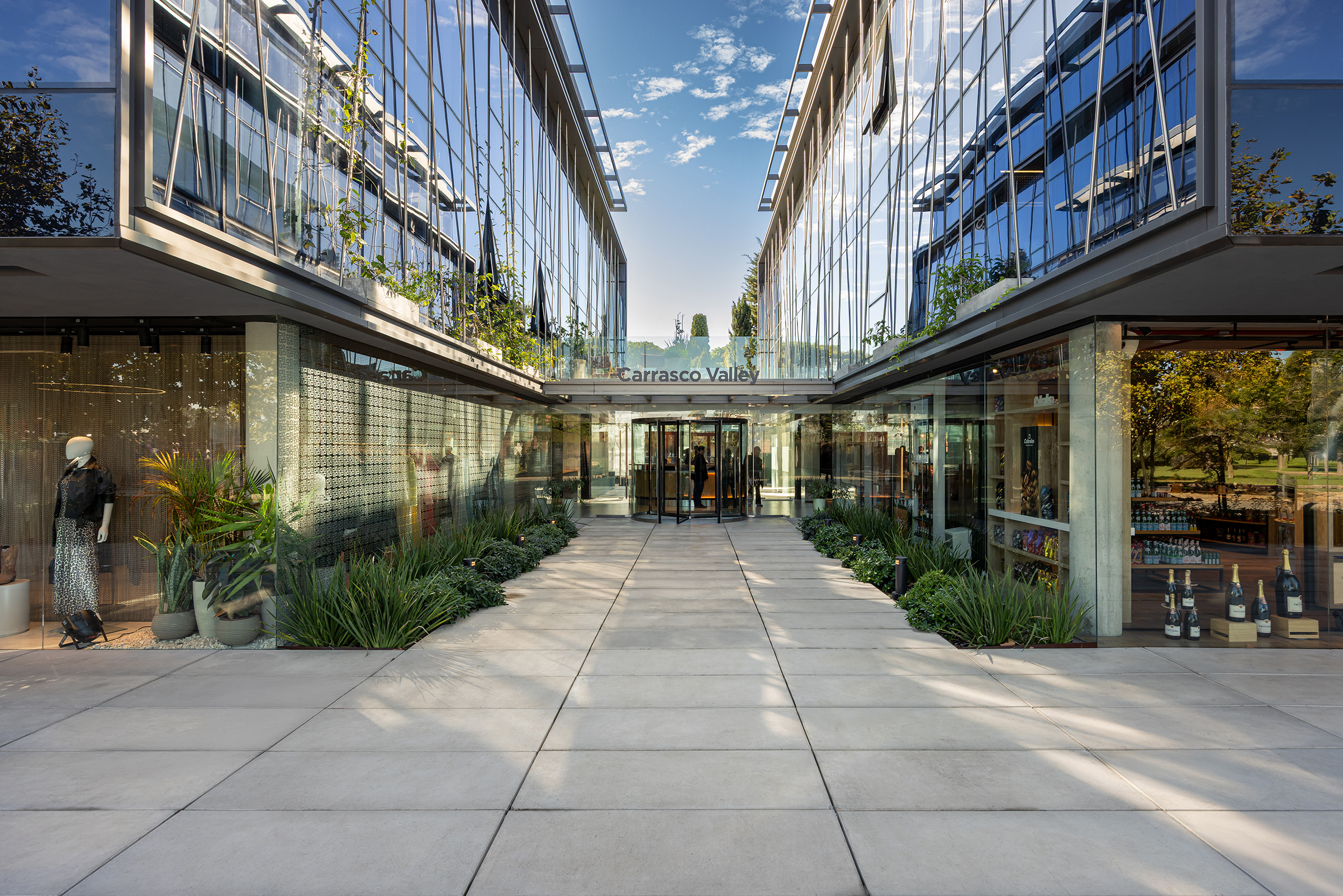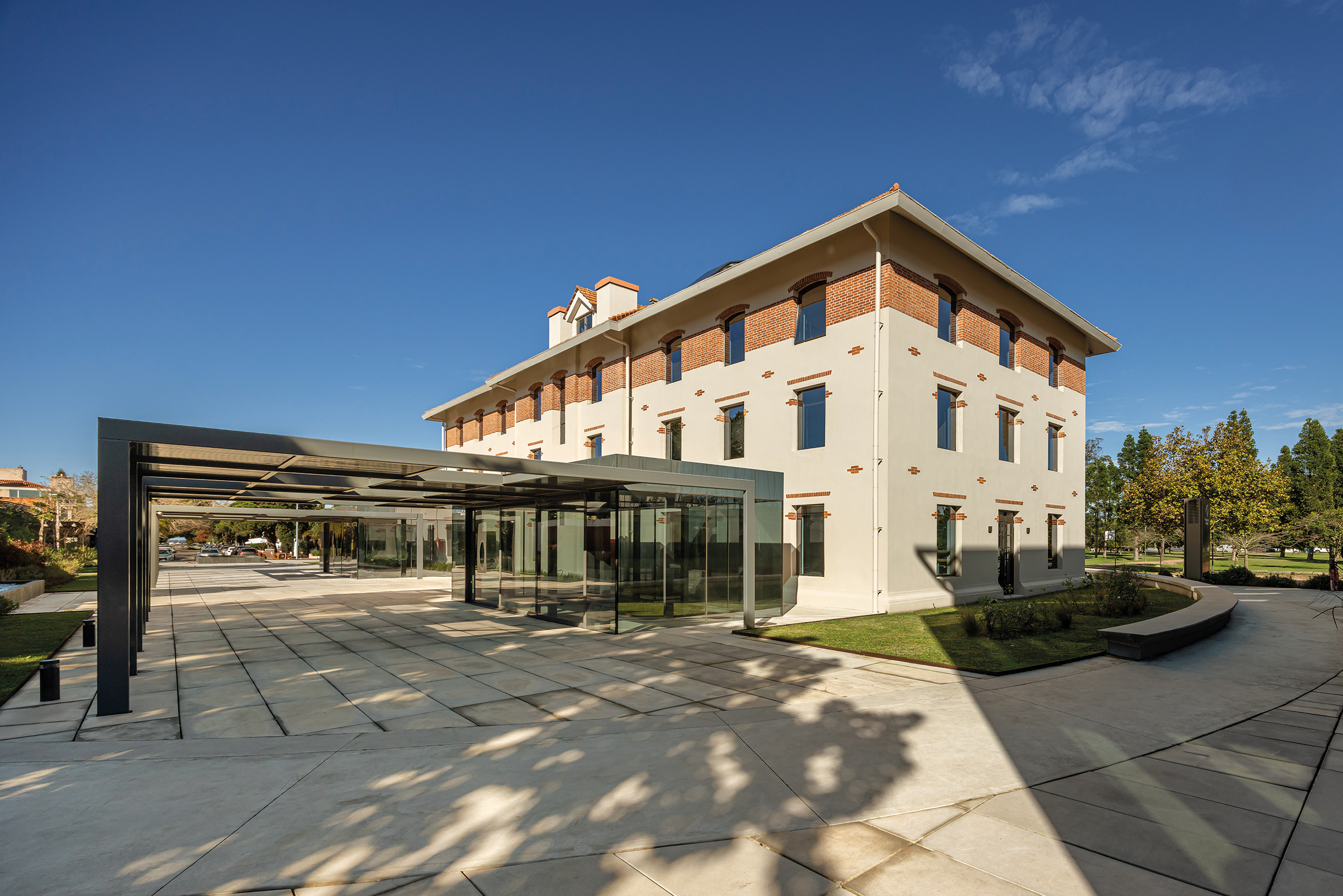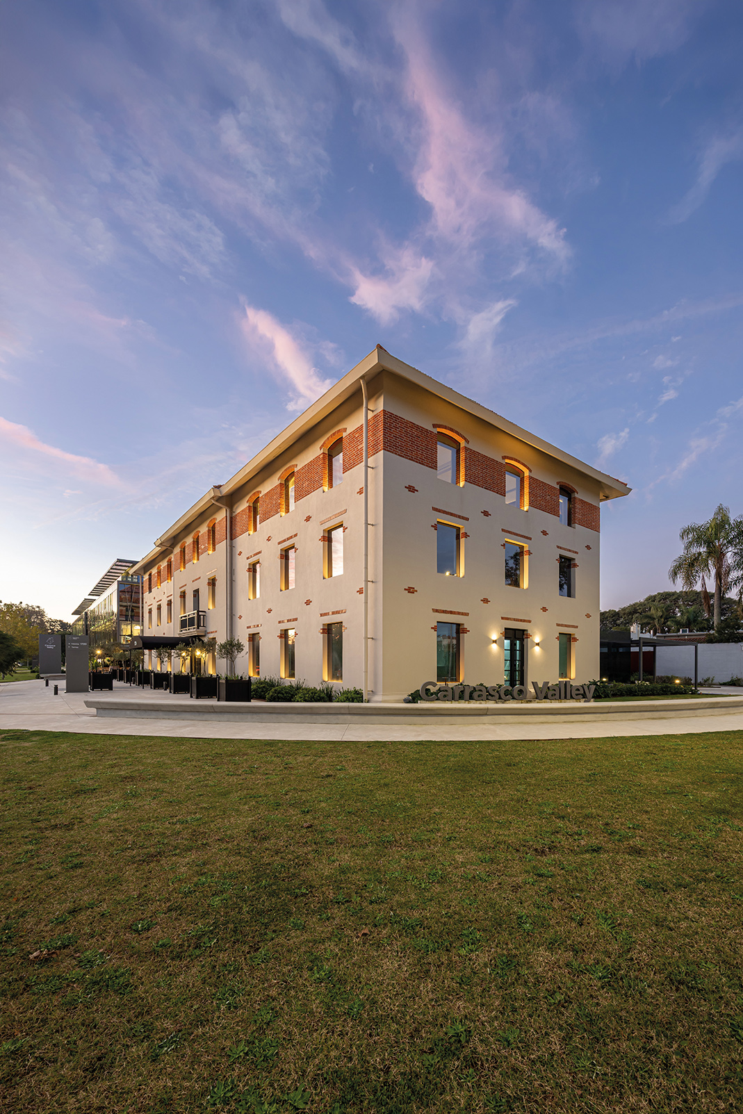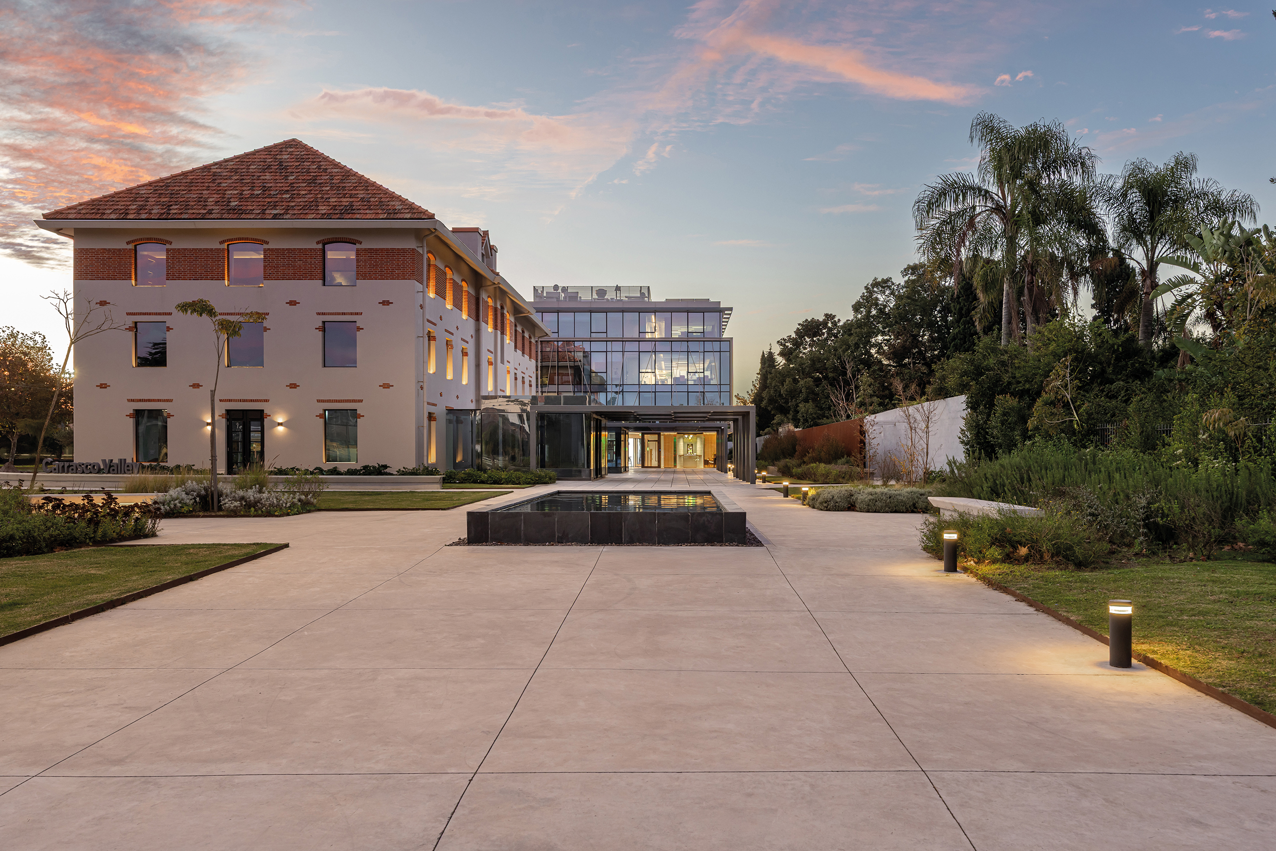 Dos nuevos edificios de piel acristalada y presencia sobria se ensamblan con la casona restaurada como quien encaja piezas de un rompecabezas delicado. Entre ellos, un paseo comercial abierto a la ciudad, una continuidad natural de la calle Costa Rica, hoy epicentro creciente de la gastronomía de autor y los cafés boutique. Todo respira, nada se impone: las transparencias, la segunda piel de control solar, las líneas limpias y la vegetación abundante se conjugan para celebrar esa utopía urbana tantas veces soñada: trabajar, pasear y vivir en un mismo lugar sin sacrificar calidad de vida. El conjunto ha sido concebido bajo los exigentes parámetros de la certificación LEED Gold, como una declaración de principios más que como un sello. Eficiencia energética, sostenibilidad, respeto por el entorno: no como discurso, sino como estructura. Y para que no falte el toque poético, el diseño del paisaje ha sido encomendado a Carlos Thays (el bisnieto), en una suerte de reencuentro silencioso con la obra fundacional de su tatarabuelo. Porque sí: el Parque Grauert, que hoy dialoga con Carrasco Valley como si fueran dos viejos amigos que se reencuentran después de años, fue originalmente bosquejado por el mismo linaje de paisajistas.