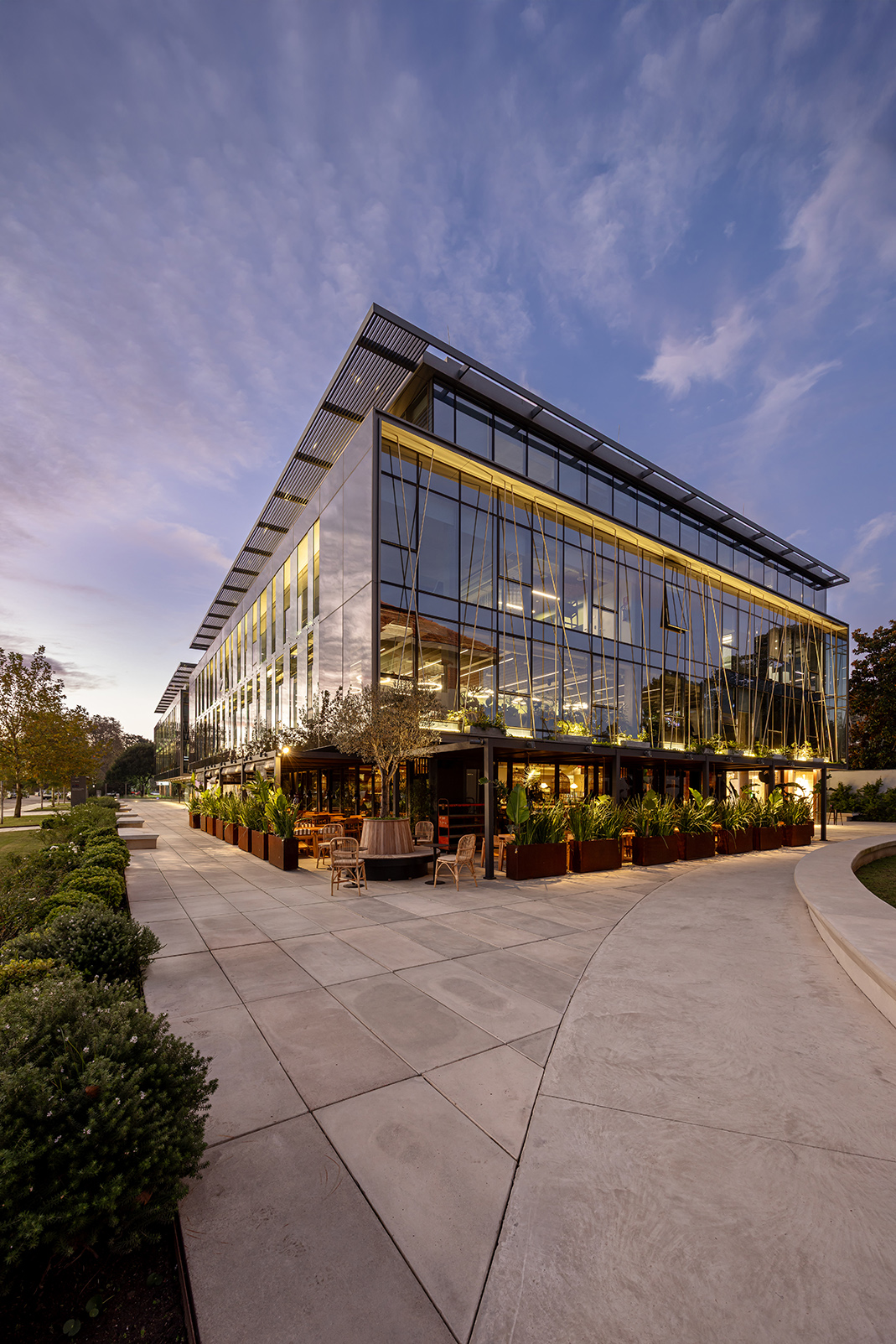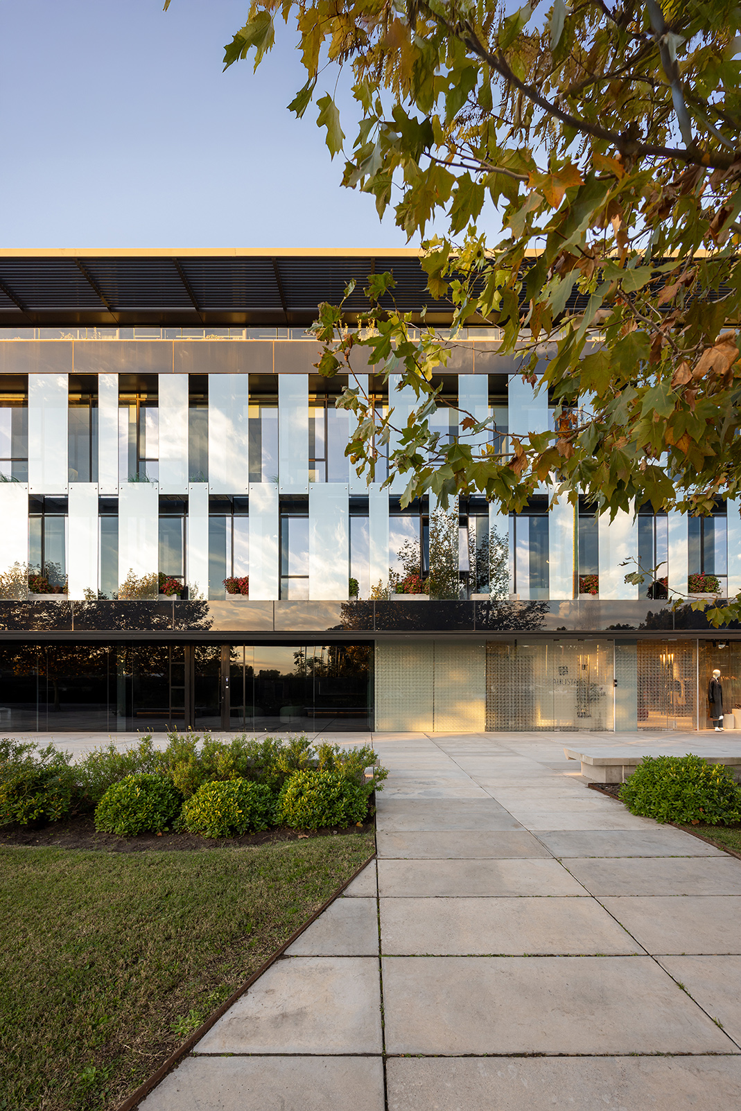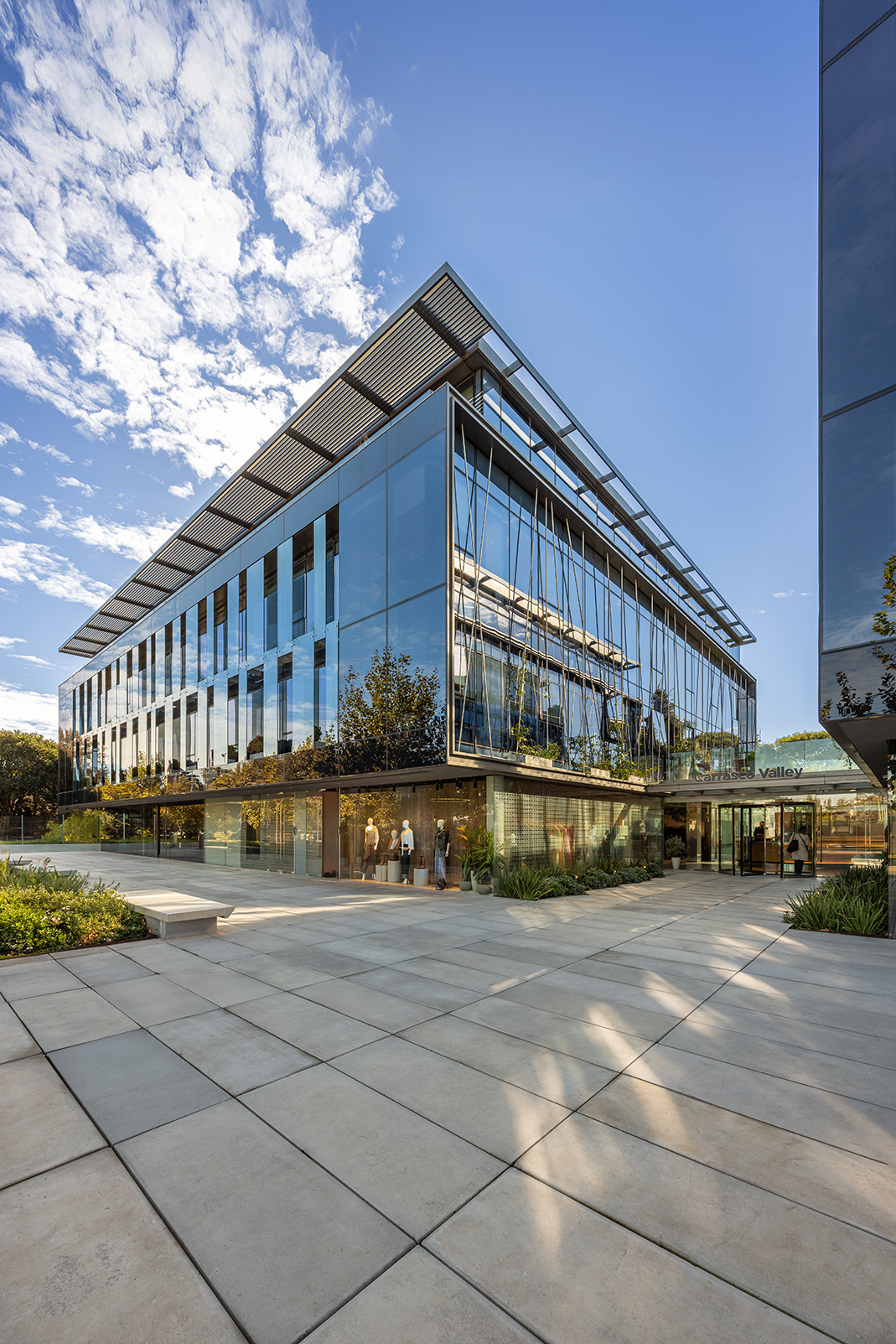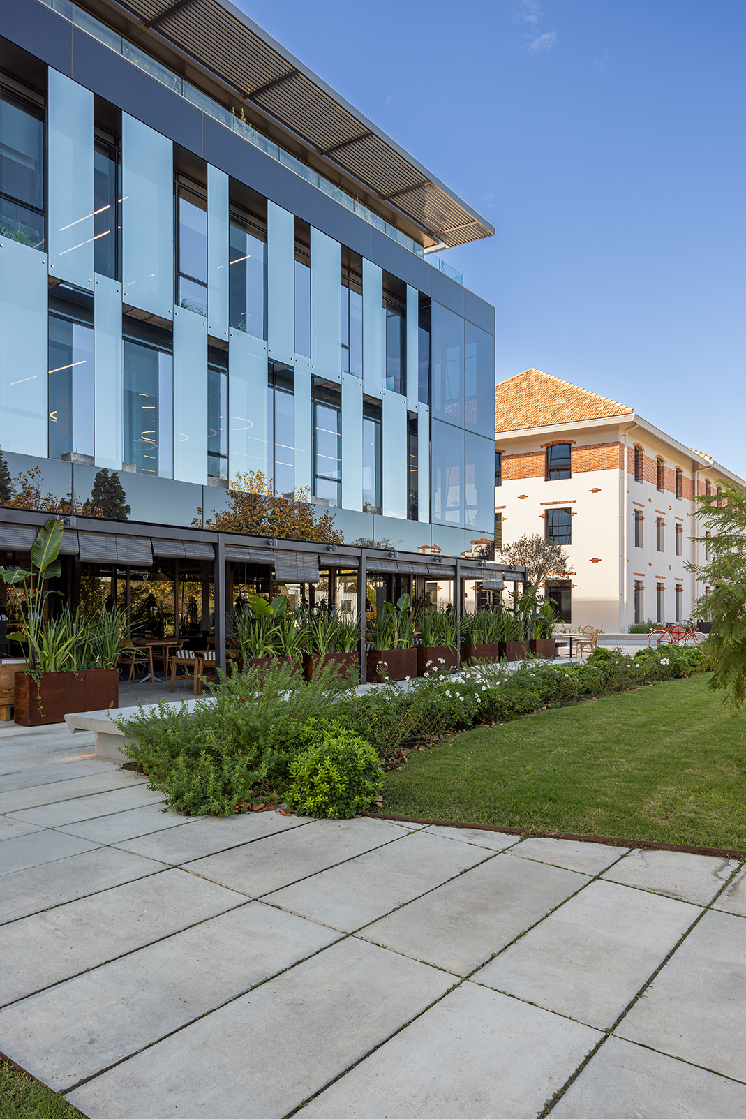 Dos nuevos edificios de piel acristalada y presencia sobria se ensamblan con la casona restaurada como quien encaja piezas de un rompecabezas delicado. Entre ellos, un paseo comercial abierto a la ciudad, una continuidad natural de la calle Costa Rica, hoy epicentro creciente de la gastronomía de autor y los cafés boutique. Todo respira, nada se impone: las transparencias, la segunda piel de control solar, las líneas limpias y la vegetación abundante se conjugan para celebrar esa utopía urbana tantas veces soñada: trabajar, pasear y vivir en un mismo lugar sin sacrificar calidad de vida. El conjunto ha sido concebido bajo los exigentes parámetros de la certificación LEED Gold, como una declaración de principios más que como un sello. Eficiencia energética, sostenibilidad, respeto por el entorno: no como discurso, sino como estructura. Y para que no falte el toque poético, el diseño del paisaje ha sido encomendado a Carlos Thays (el bisnieto), en una suerte de reencuentro silencioso con la obra fundacional de su tatarabuelo. Porque sí: el Parque Grauert, que hoy dialoga con Carrasco Valley como si fueran dos viejos amigos que se reencuentran después de años, fue originalmente bosquejado por el mismo linaje de paisajistas.