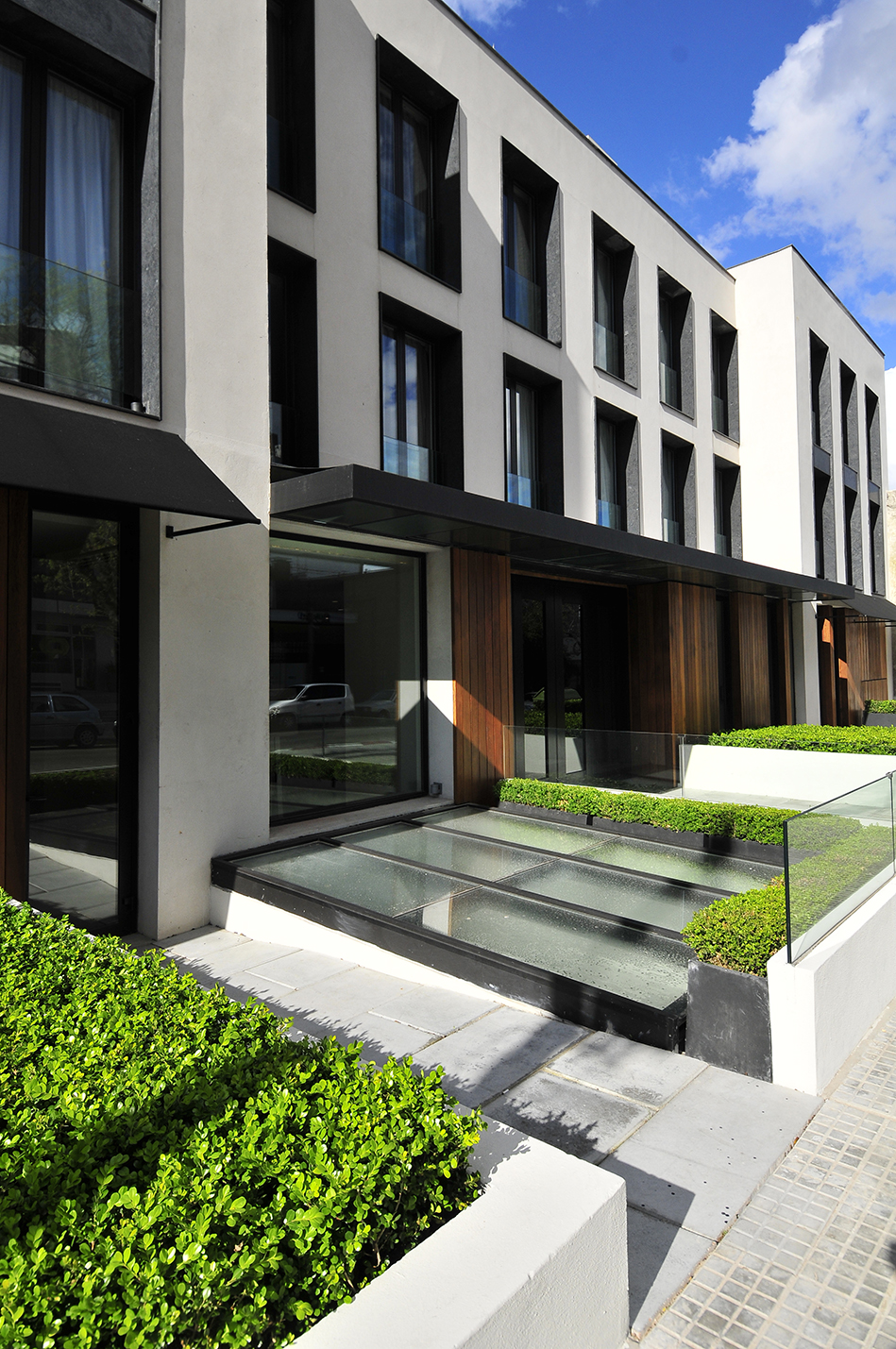 El edificio ocupa un predio privilegiado por sus dimensiones y por el contexto del exclusivo barrio de Punta Carretas. La edificación está ubicada sobre la calle García Cortinas, a escasos veinte metros del Club de Golf del Uruguay y a cien metros de Punta Carretas Shopping. El proyecto, a cargo del estudio Ferber Arquitectos Asociados, consta de un volumen de cuatro niveles. La construcción de sus fachadas principal y posterior se integra por planos de distintas profundidades que le otorgan un carácter horizontal, a través de ventanas verticales distribuidas regularmente, generando nexo y contraste entre los diferentes ámbitos de la composición.