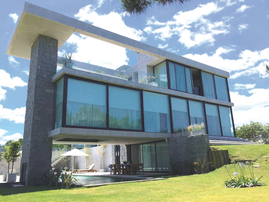 El proyecto arquitectónico lleva la impronta de su autor. Líneas puras, volúmenes transparentes que contrastan con el rigor de los muros que los sostienen. El volumen, que totaliza mil metros cuadrados, encontró en una L el mayor aprovechamiento del solar al momento de la implantación.