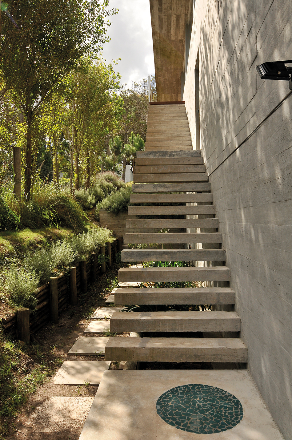 Pablo Gagliardo es un hombre joven y deportista. Arquitecto y soltero empedernido, dedicó tiempo a proyectar su segunda casa en El Chorro. “Mis padres siempre veranearon en Punta del Este y actualmente tienen un apartamento en la Playa Brava. Viajar hasta aquí en distintos momentos del año supone un punto de quiebre en la rutina que me oxigena y me permite continuar trabajando en los proyectos de mi estudio, pero con otro tiempo”, nos comenta, al tiempo que emprendemos el camino que nos propone la singular escalera que enfrentamos desde el ingreso mismo a la casa.