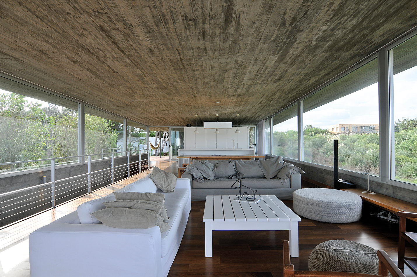 Pablo Gagliardo es arquitecto. Su estudio se dedica a proyectar y construir edificios y torres. Vive y trabaja en Rosario pero también tiene obra ejecutada en Buenos Aires. Veraneante regular de Punta del Este un par de años atrás decidió construir su casa más allá del ruido. Dedicó tiempo y mucho esmero a la elección del terreno. Finalmente optó por un solar de metraje regular pero con una ubicación excepcional, primera línea frente a la playa de El Chorro. La casa que proyectó puede ubicarse en la línea del brutalismo, hormigón armado y vidrio. Allí se levanta un templo que oficia de refugio.