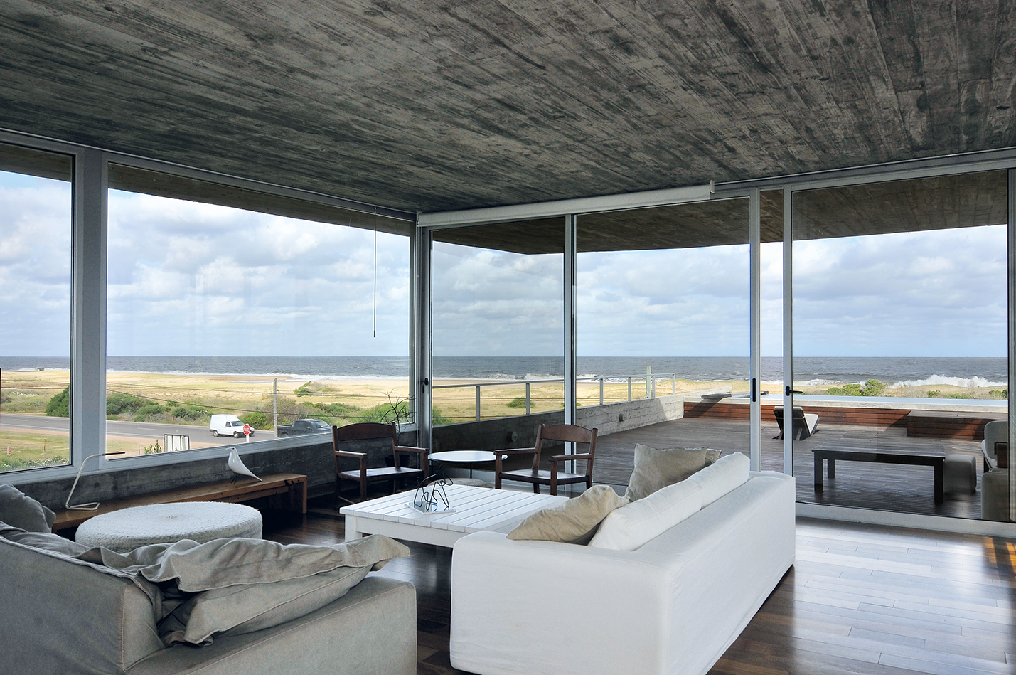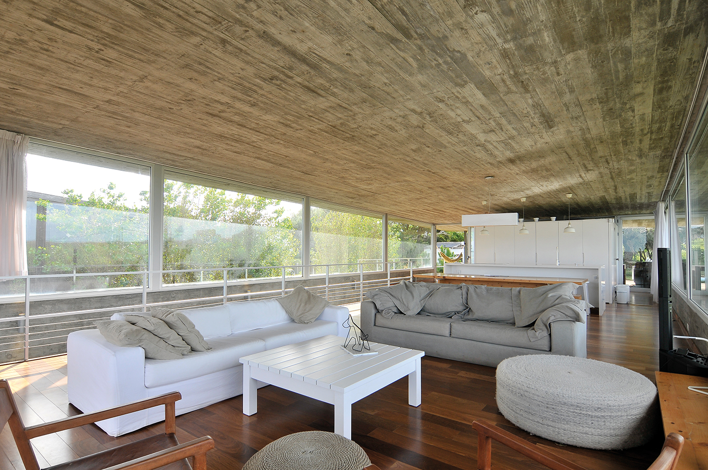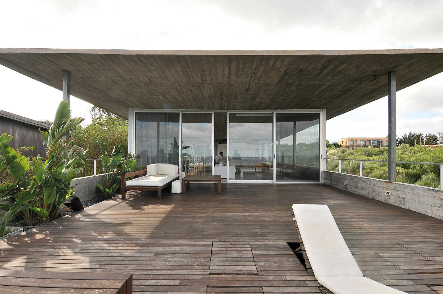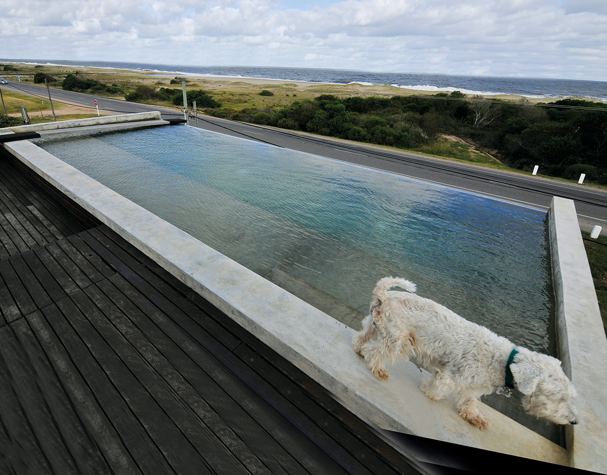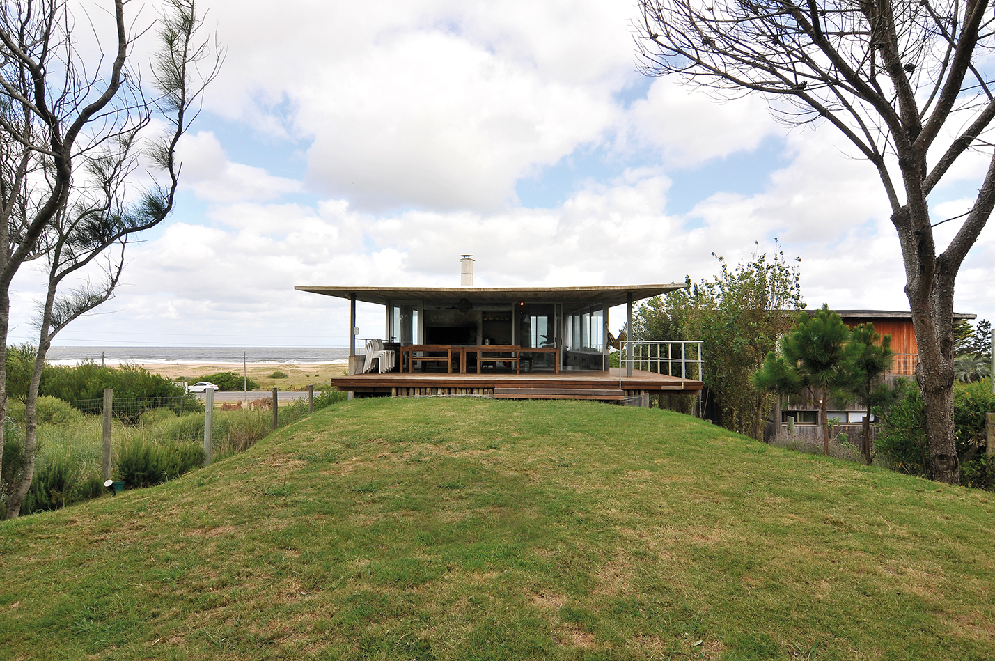 Pablo Gagliardo es arquitecto. Su estudio se dedica a proyectar y construir edificios y torres. Vive y trabaja en Rosario pero también tiene obra ejecutada en Buenos Aires. Veraneante regular de Punta del Este un par de años atrás decidió construir su casa más allá del ruido. Dedicó tiempo y mucho esmero a la elección del terreno. Finalmente optó por un solar de metraje regular pero con una ubicación excepcional, primera línea frente a la playa de El Chorro. La casa que proyectó puede ubicarse en la línea del brutalismo, hormigón armado y vidrio. Allí se levanta un templo que oficia de refugio.