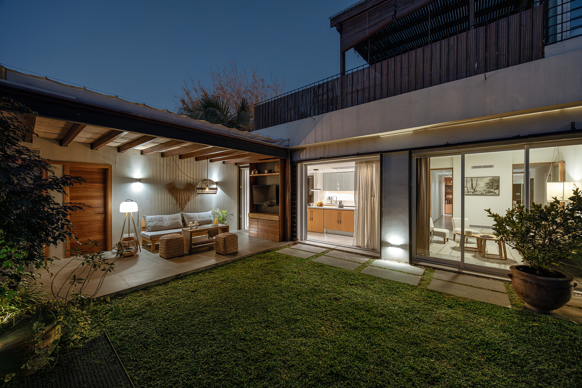 A pesar de la amplitud de sus habitaciones toda ella era compartimentada. Se imponía el deseo y la necesidad de fluir. Así, la antigua cocina con su patio de servicio, antes cautivos en el centro, fue trasladada al fondo. El gesto, sencillo en apariencia, transformó el corazón de la casa. Fluye el espacio y entra la luz pues el pequeño patio se convirtió en pieza central, casi en escultura viva. La nueva cocina-comedor, adyacente a un estar exterior, se separa (o integra) a este y al fondo mediante aberturas y rejas pocket, que desdibujan los límites para concretar una suerte de barbacoa inesperada.
