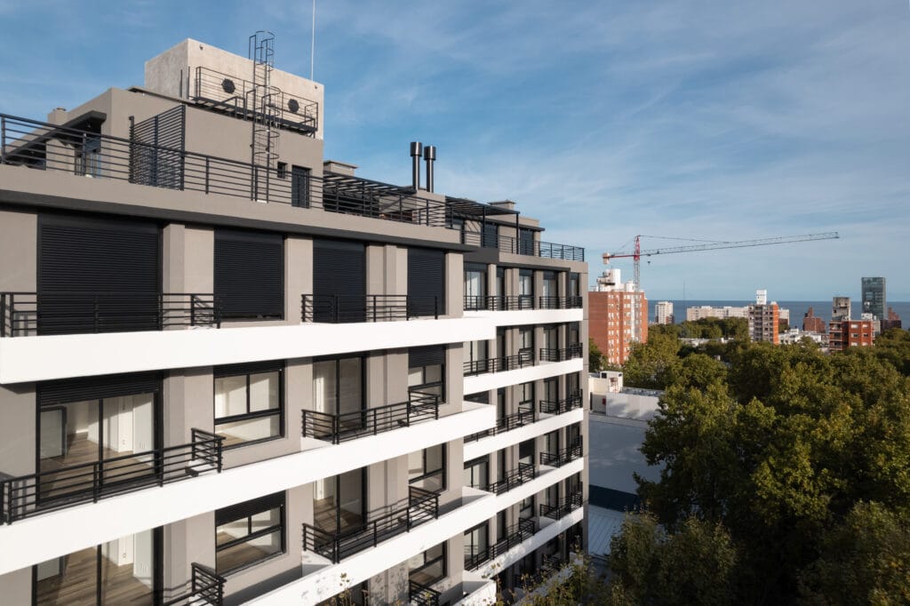 La revitalización de las zonas centrales de la ciudad de Montevideo encuentra rápidas respuestas en los ejercicios de buen diseño que se vienen desplegando en los últimos años. Es el caso de los aportes que el Estudio Flores Gallinal concreta con sus intervenciones. ¡Ubicado en la zona de Cordón Sur se implanta en un terreno esquina de generosas proporciones Edificio Flip! Se presenta como un gran bloque que se apodera de la trama a través del gesto arquitectónico – impronta de los proyectistas- que entrega vitalidad a la zona y acompasa con un estilo armónico en la silueta de la estructura que entrega contemporaneidad al barrio citadino. El proyecto obtiene el máximo partido a su ubicación y se abre hacia ambos frentes para aprovechar el sol y así lograr mayor confort y ahorro energético. El edificio se levanta diez pisos con gestos arquitectónicos contemporáneos que maximiza las vistas abiertas y convive armónicamente con su entorno. El volumen contiene cincuenta y dos apartamentos concebidos con excelentes terminaciones. Los proyectistas lograron espacios flexibles que se relacionan con el estilo de vida de quienes deseen habitar los apartamentos, con grandes ventanales que ofrecen la mayor cantidad de luz y ventilación natural y terrazas que aumentan la sensación de amplitud y hacen que el espacio fluya hacia el exterior. Los apartamentos se complementan con el parrillero parcialmente techado ubicado en el piso diez.