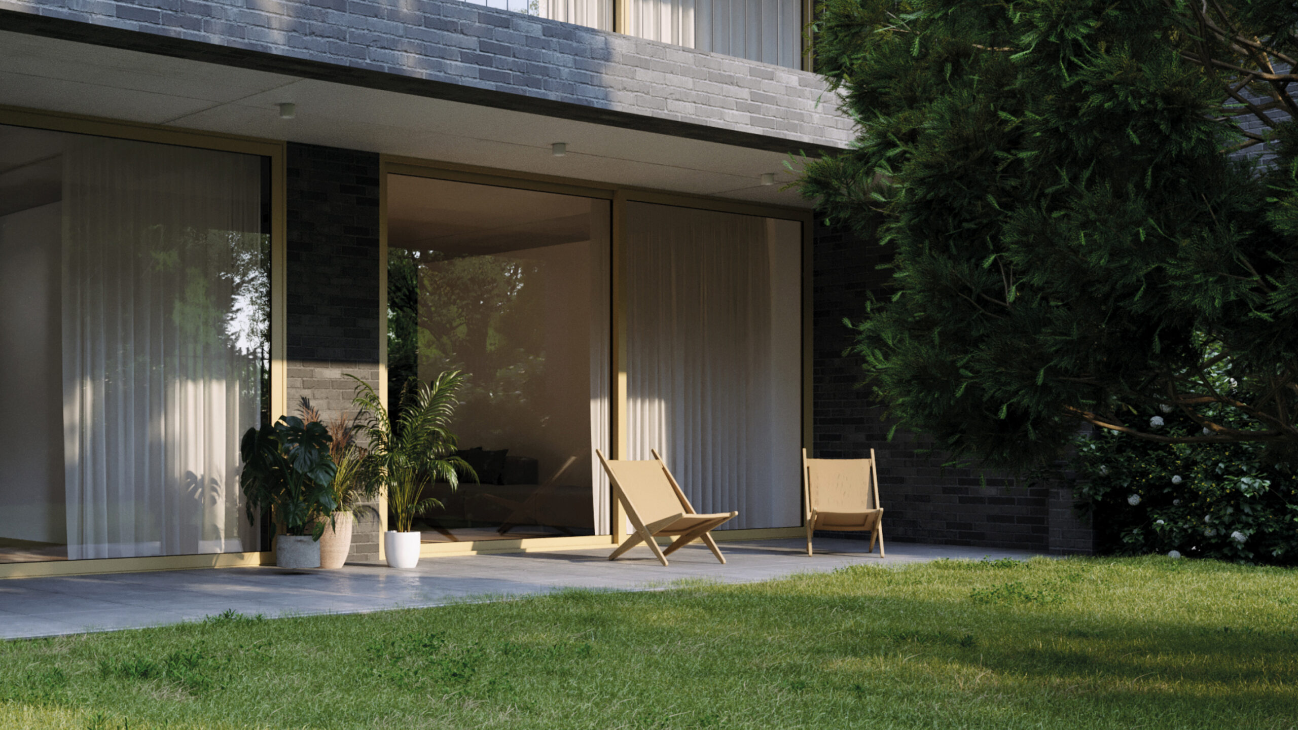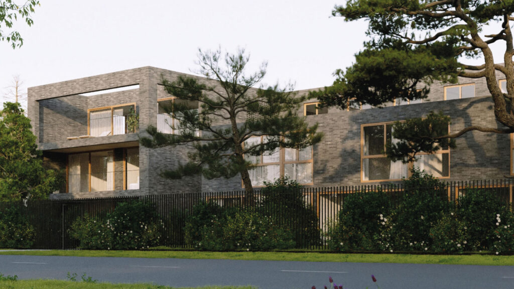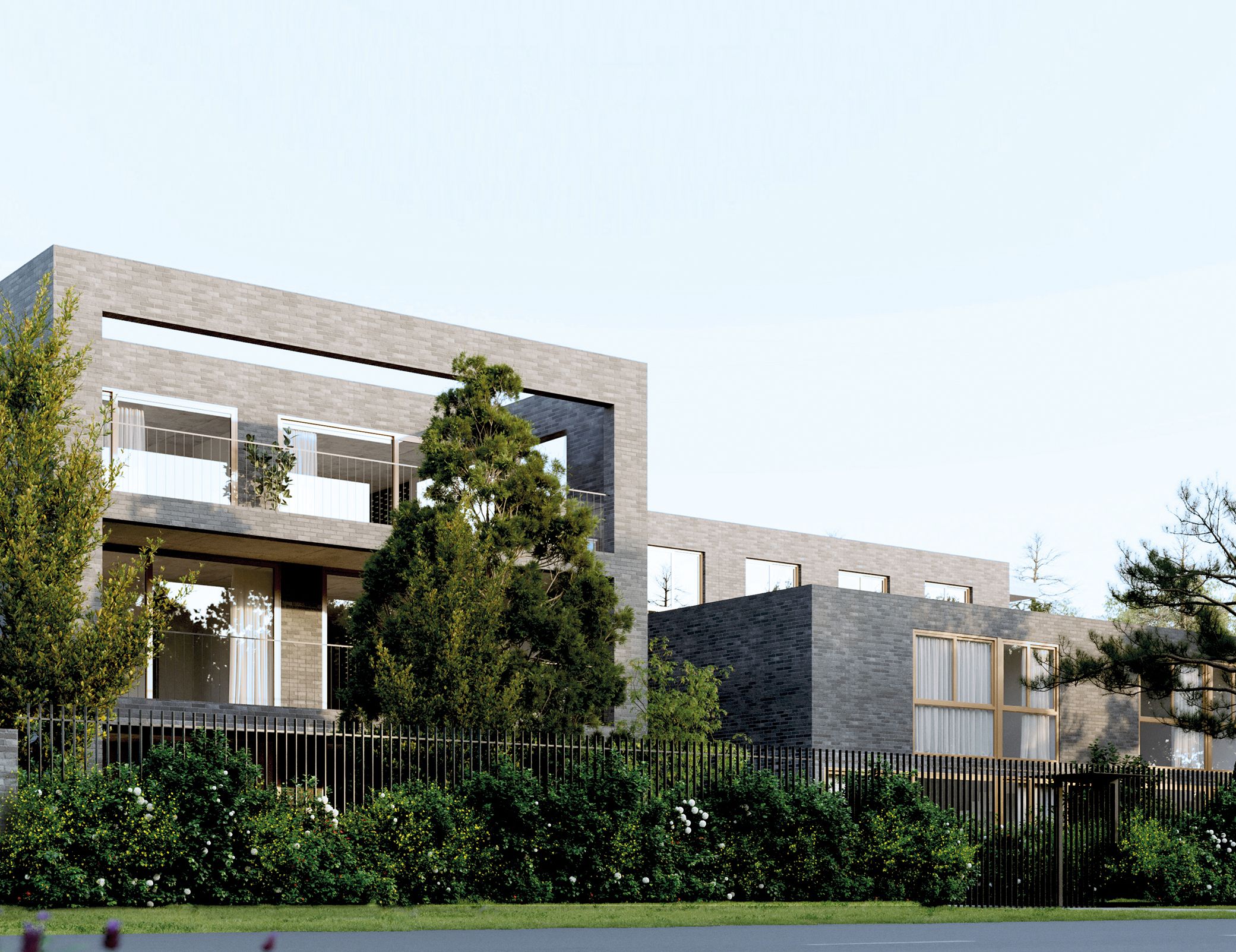 El proyecto se levanta en un territorio de casas bajas y jardines generosos, donde el aire aún conserva algo de la calma suburbana. Allí, donde la altura suele verse con recelo, los arquitectos ensayan un modelo diferente: no una torre que interrumpe, sino una secuencia que se integra. La altura, en Fusione, no se mide en pisos sino en transiciones. Cada nivel es una variación sobre un mismo tema: cómo vivir entre el verde y el umbral.