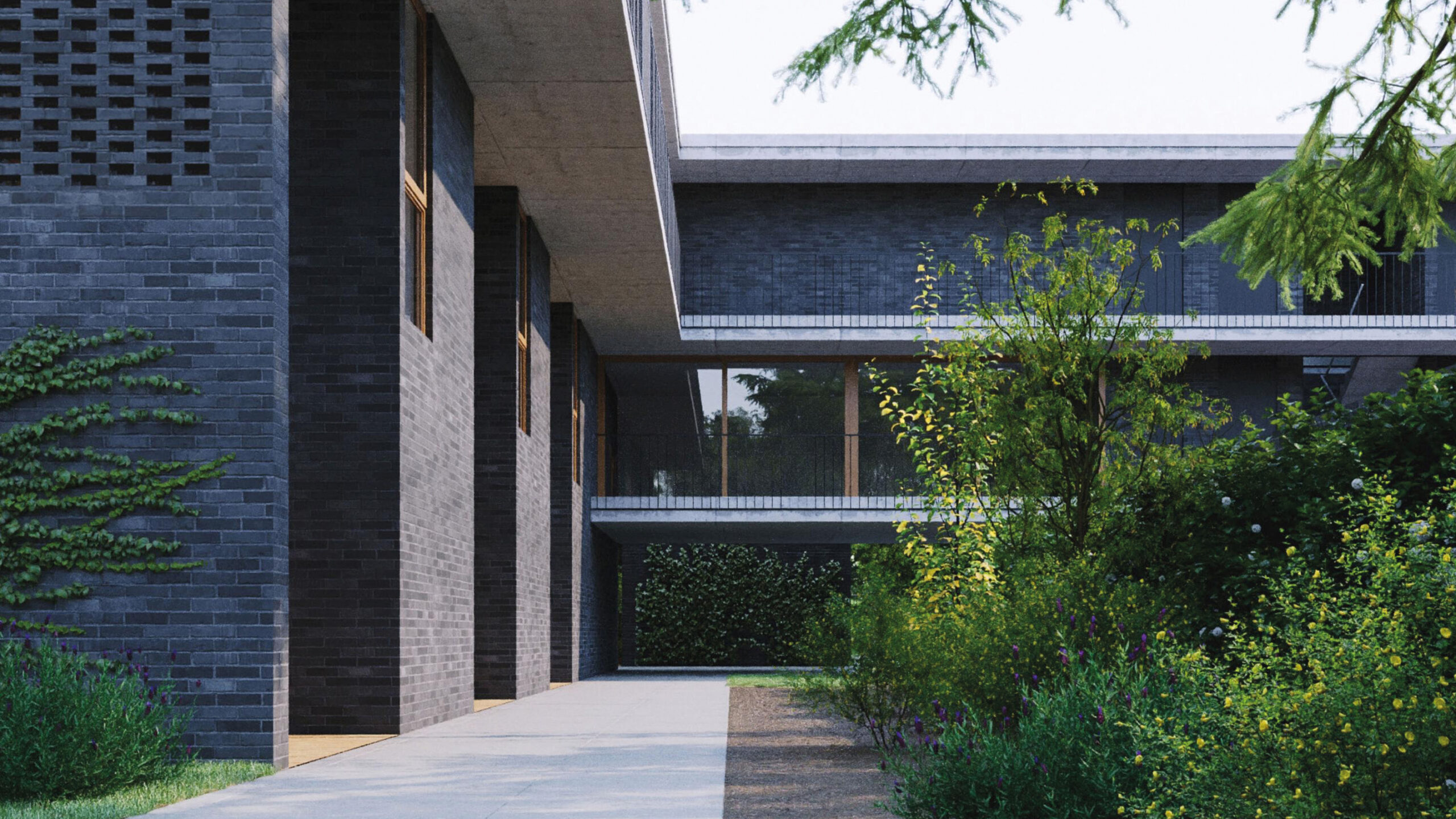 El corazón del proyecto es una reinterpretación de la “calle corredor”, esa vieja invención urbana que unía lo público y lo íntimo, lo común y lo propio. Aquí, se convierte en un vacío central cubierto que respira, una plaza interior donde convergen los accesos, las circulaciones y, sobre todo, las miradas. No es un pasillo ni un patio, sino un lugar de encuentro: un espacio que propone comunidad sin imponerla. Desde allí, los vacíos se abren hacia el paisaje, y el edificio se disuelve en una red de relaciones visuales, de sombras y reflejos.