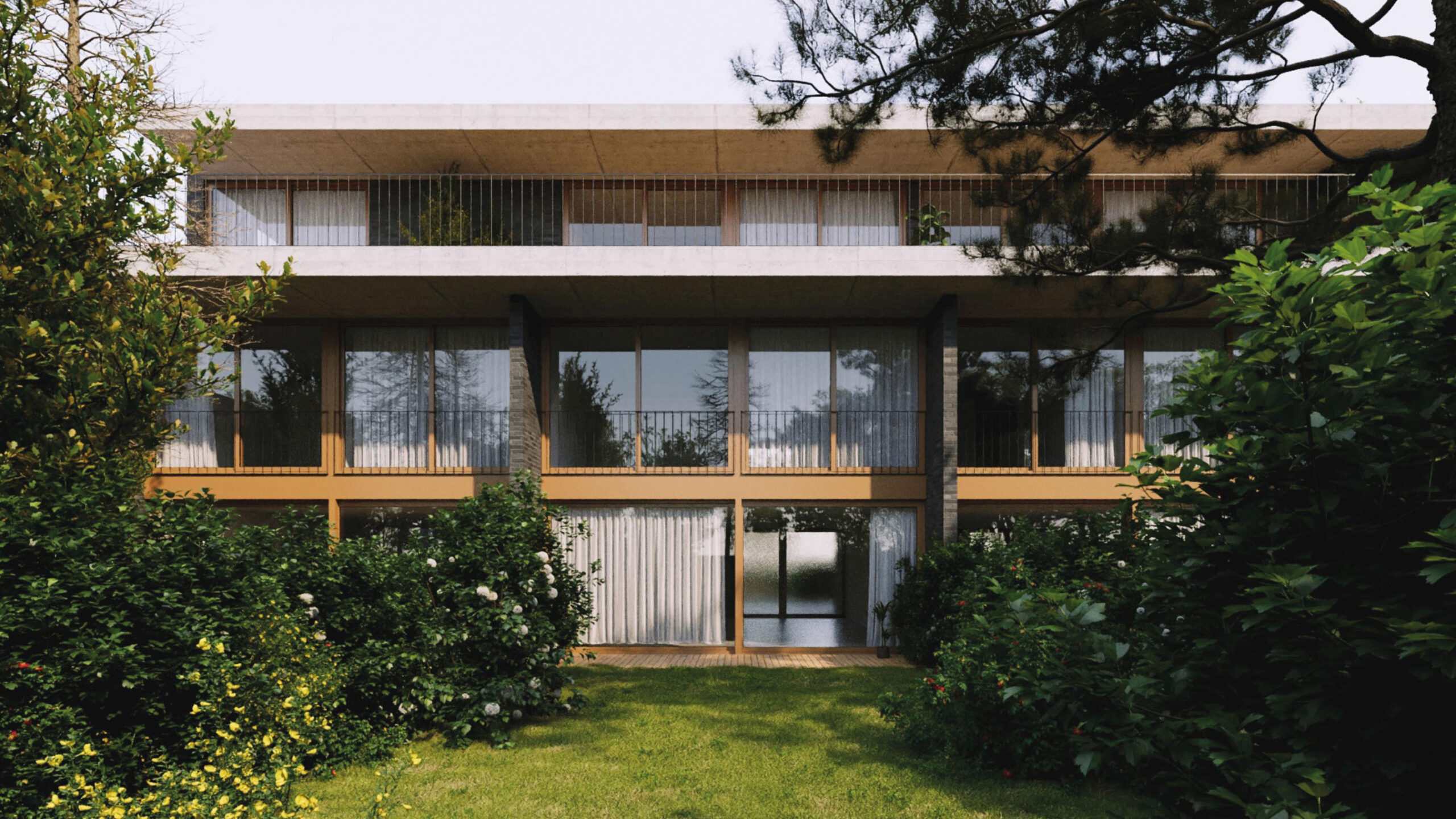 El proyecto se levanta en un territorio de casas bajas y jardines generosos, donde el aire aún conserva algo de la calma suburbana. Allí, donde la altura suele verse con recelo, los arquitectos ensayan un modelo diferente: no una torre que interrumpe, sino una secuencia que se integra. La altura, en Fusione, no se mide en pisos sino en transiciones. Cada nivel es una variación sobre un mismo tema: cómo vivir entre el verde y el umbral.