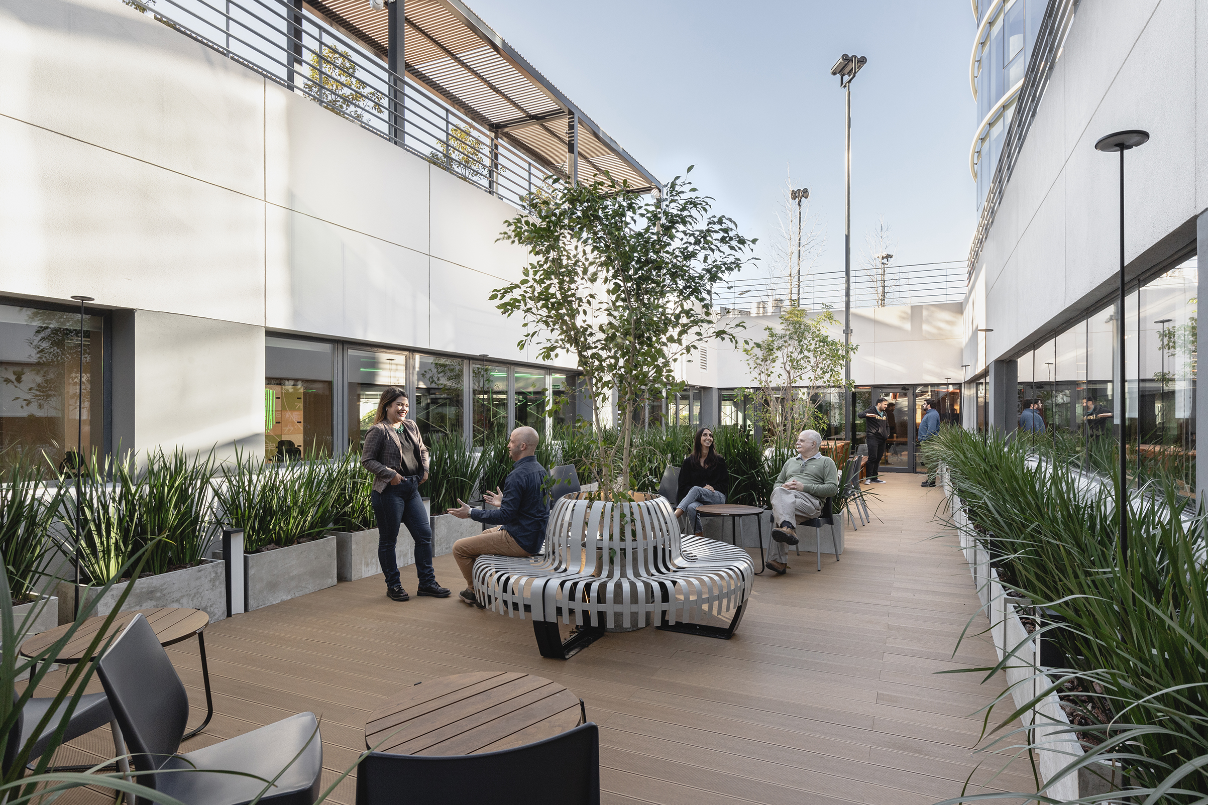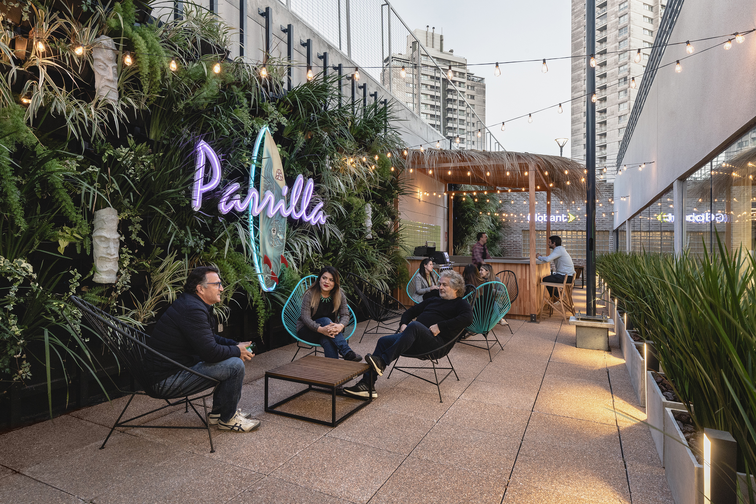El proyecto genera espacios con innumerables experiencias, aquí el reto provocó sobrevolar la imaginación para estar a la altura de las circunstancias y traducir al lenguaje propuesto a nuestro mercado los conceptos requeridos en cada uno de estos “mundos”. Participaron las empresas locales: Tecnomadera, Bertoni, Mobilart, Fumaya y Darko. Dos grandes patios estimulan la comunicación con el exterior y se ofrecen como ambientes, tanto de trabajo como de recreación. En uno de ellos se puede contemplar una gran barbacoa.