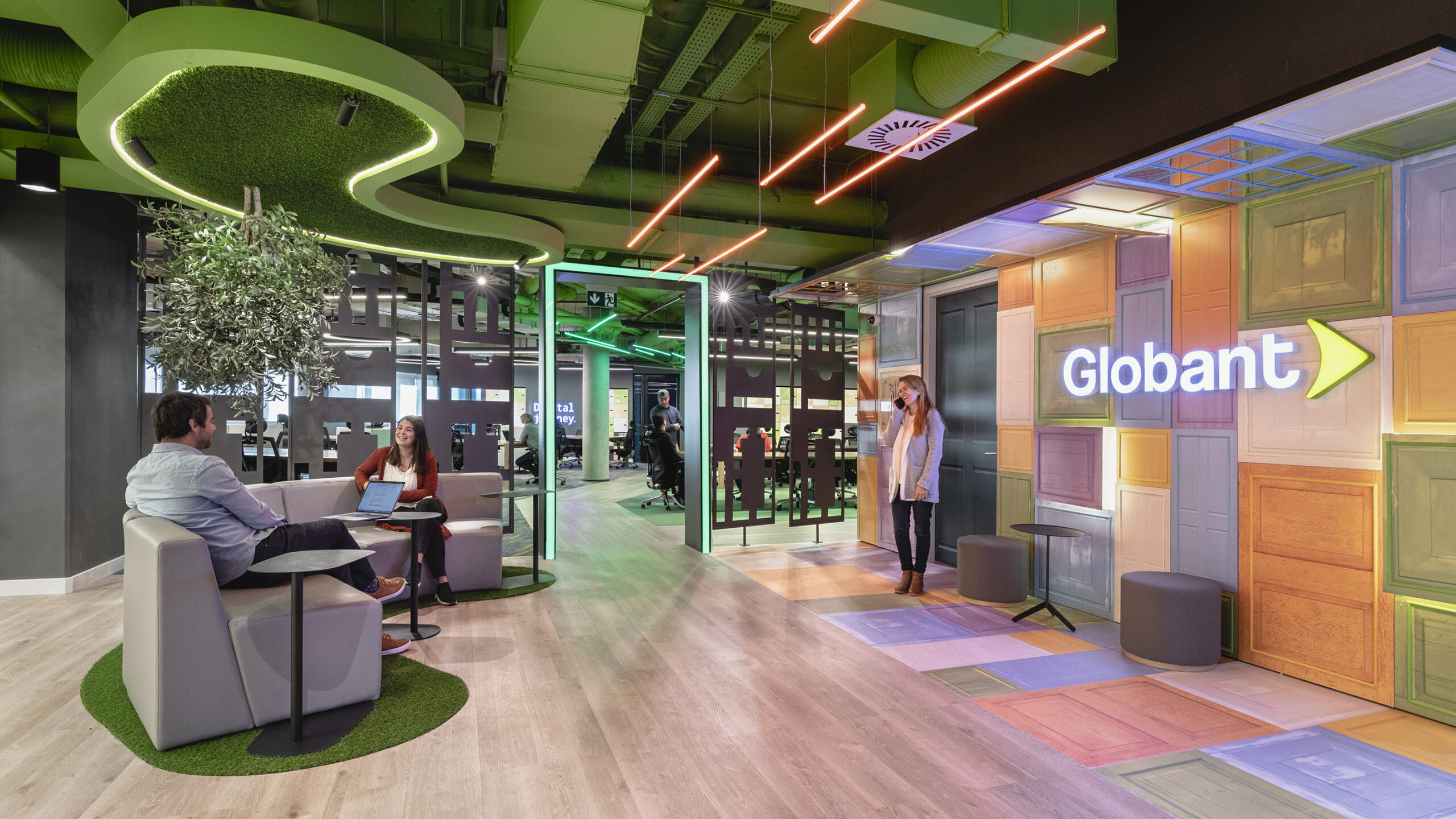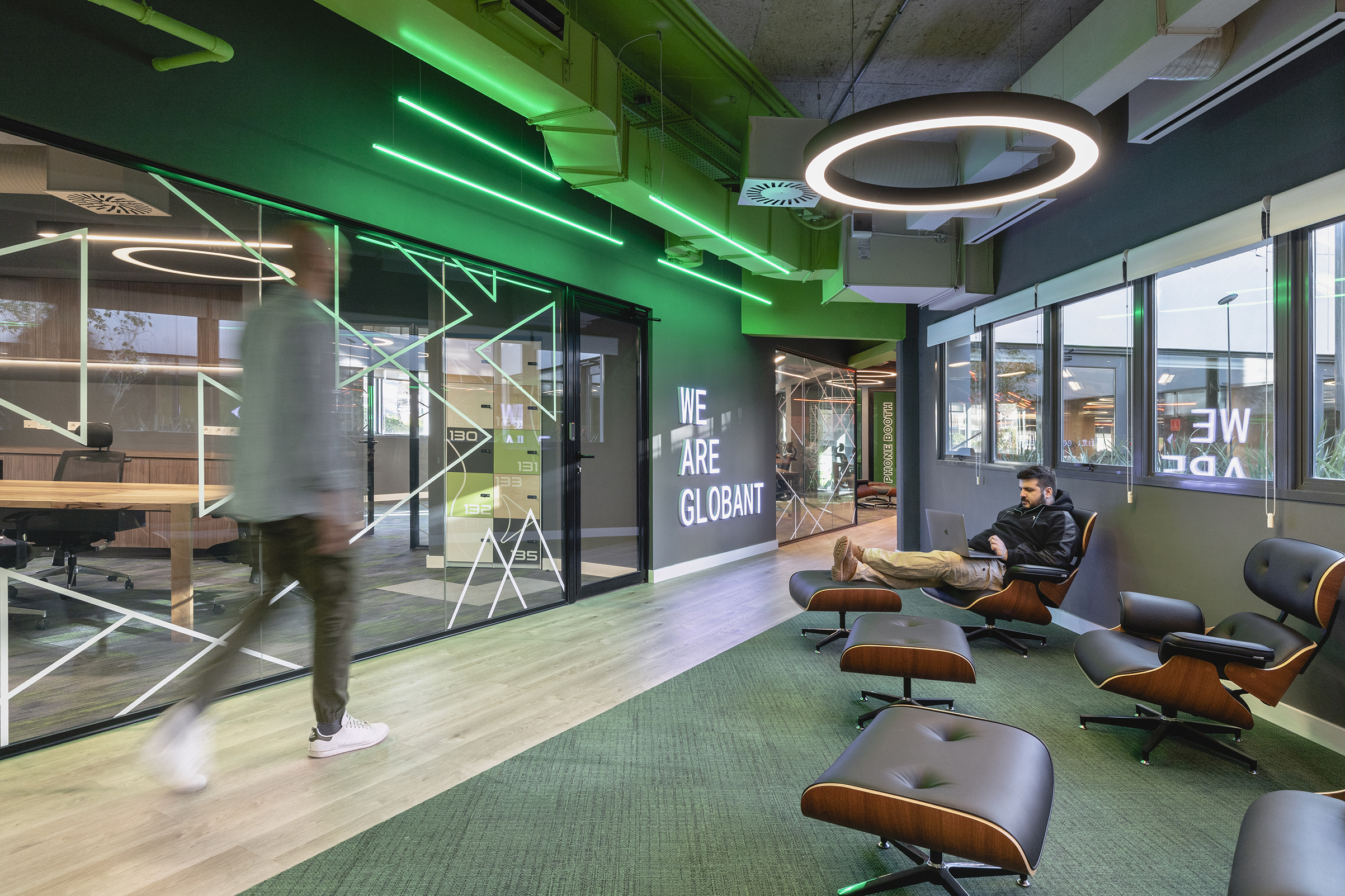 Globant es una empresa argentina dedicada a la informática y desarrollo de software con sede central en Buenos Aires. Su crecimiento ha sido imponente desde el año 2003, año de su fundación, con presencia en Uruguay desde 2010, la empresa decidió mudar sus oficinas en Montevideo al WTC Free Zone Torre II. La contundente obra fue proyectada por el Estudio colombiano AEI Spaces, gestionada por WTC y gerenciada por la empresa de servicios inmobiliarios Cushman & Wakefield a través de los arquitectos uruguayos Facundo De Souza y Fernando Varela. Ejecutada por Bauten, empresa constructora con vasta experiencia en proyectos corporativos. Con una superficie de 3000mt2 y 400m2 destinados a esparcimiento, Globant se instaló en la unión que propone el basamento de la Torre I y la nueva Torre elíptica, un lugar muy especial con un entorno inigualable.
