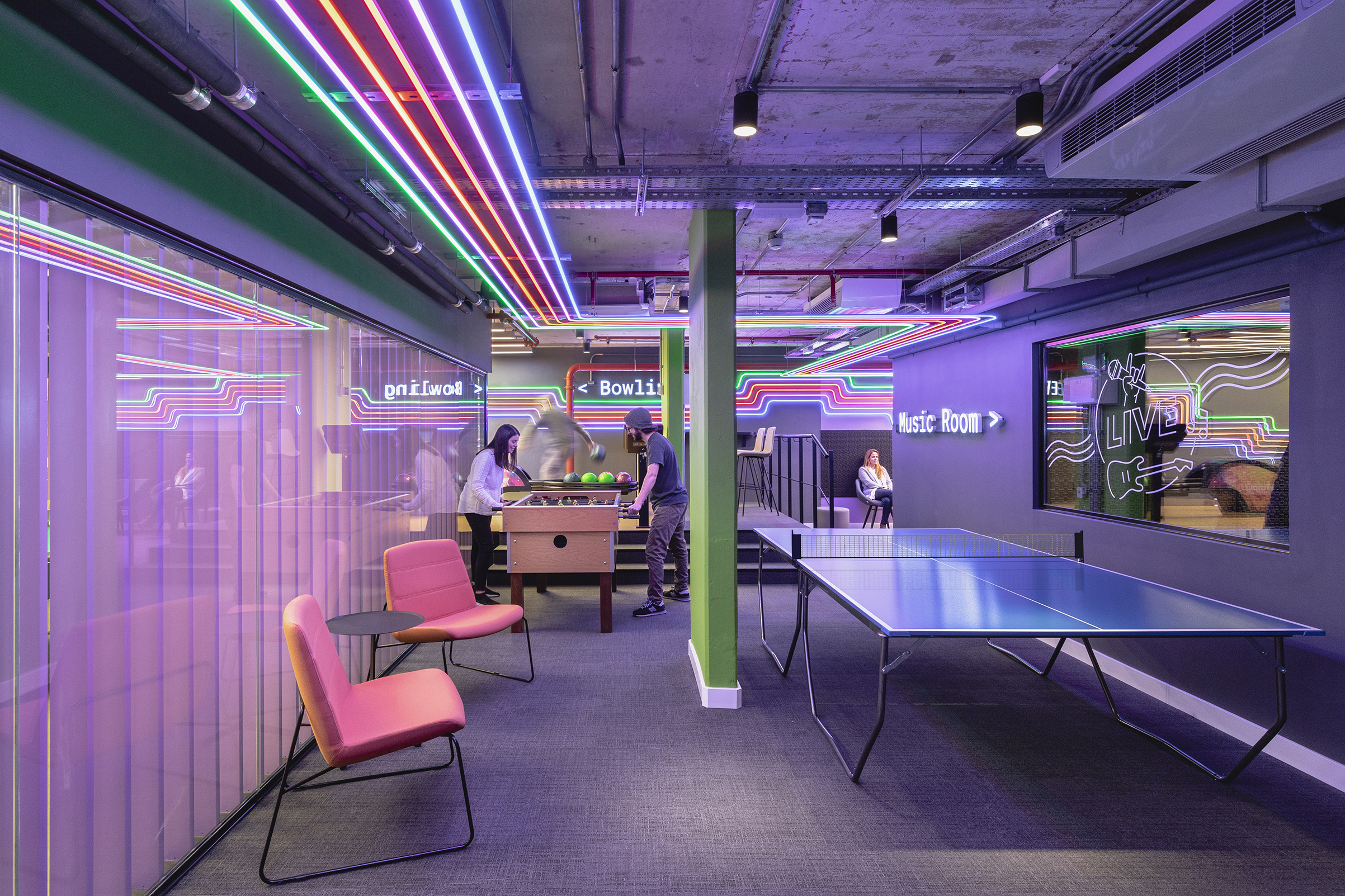 En cuanto al diseño se priorizó mucho el espacio informal y colaborativo, con el objetivo de generar espacios libres, se desarrollaron diez espacios conceptualmente distintos enmarcados en áreas temáticas identificadas como “mundos”.
